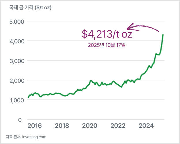 금값이 사상 최고치를 경신하며 역대 최고 수준을 기록하고 있습니다. 2025년 현재, 금은 단순한 귀금속을 넘어 경제 불확실성 속에서도 가장 신뢰받는 자산으로 자리매김했습니다. 중앙은행들은 금 보유량을 꾸준히 늘리고 있으며, 개인 투자자들 역시 포트폴리오의 안전장치로 금을 선택하고 있습니다.