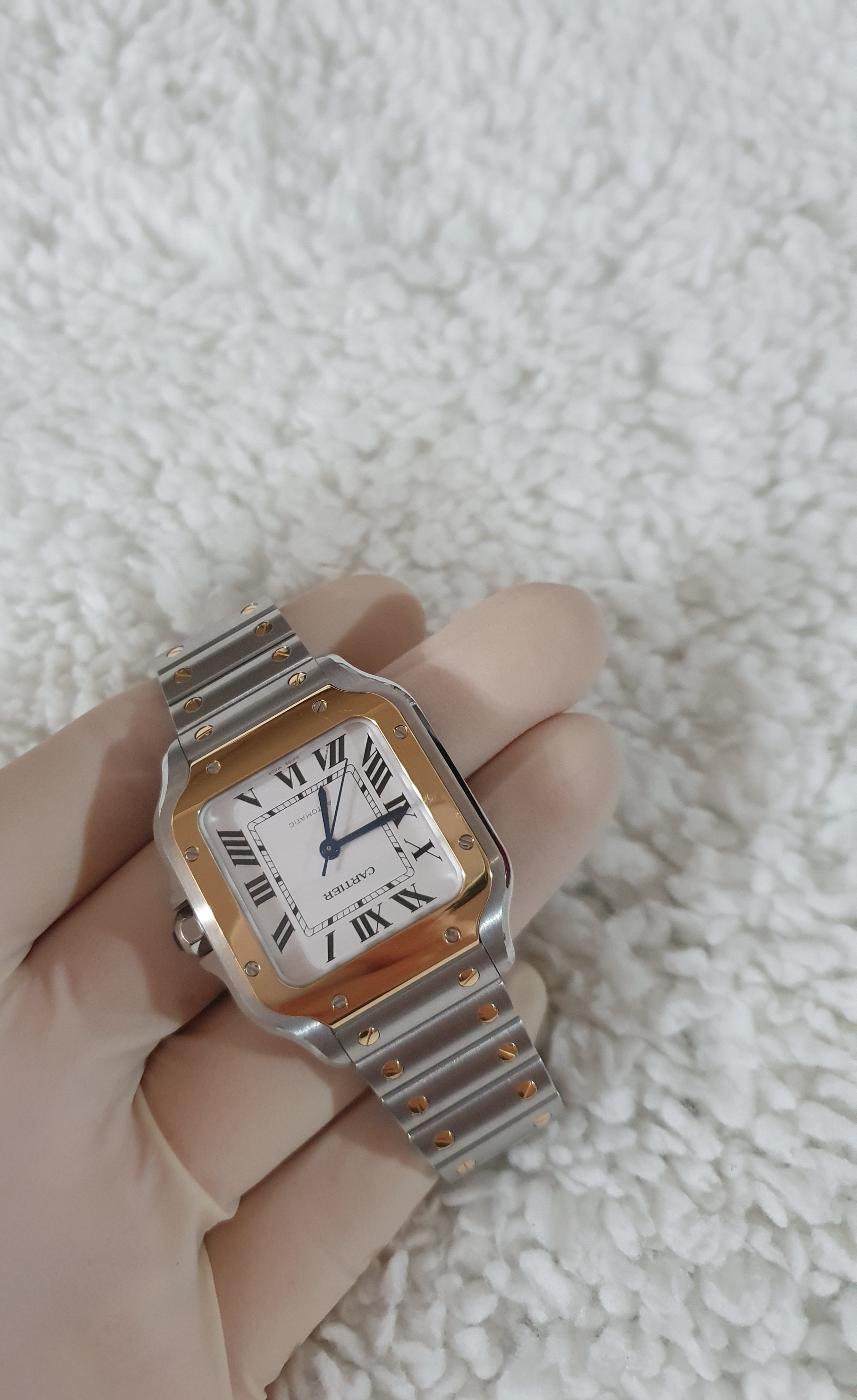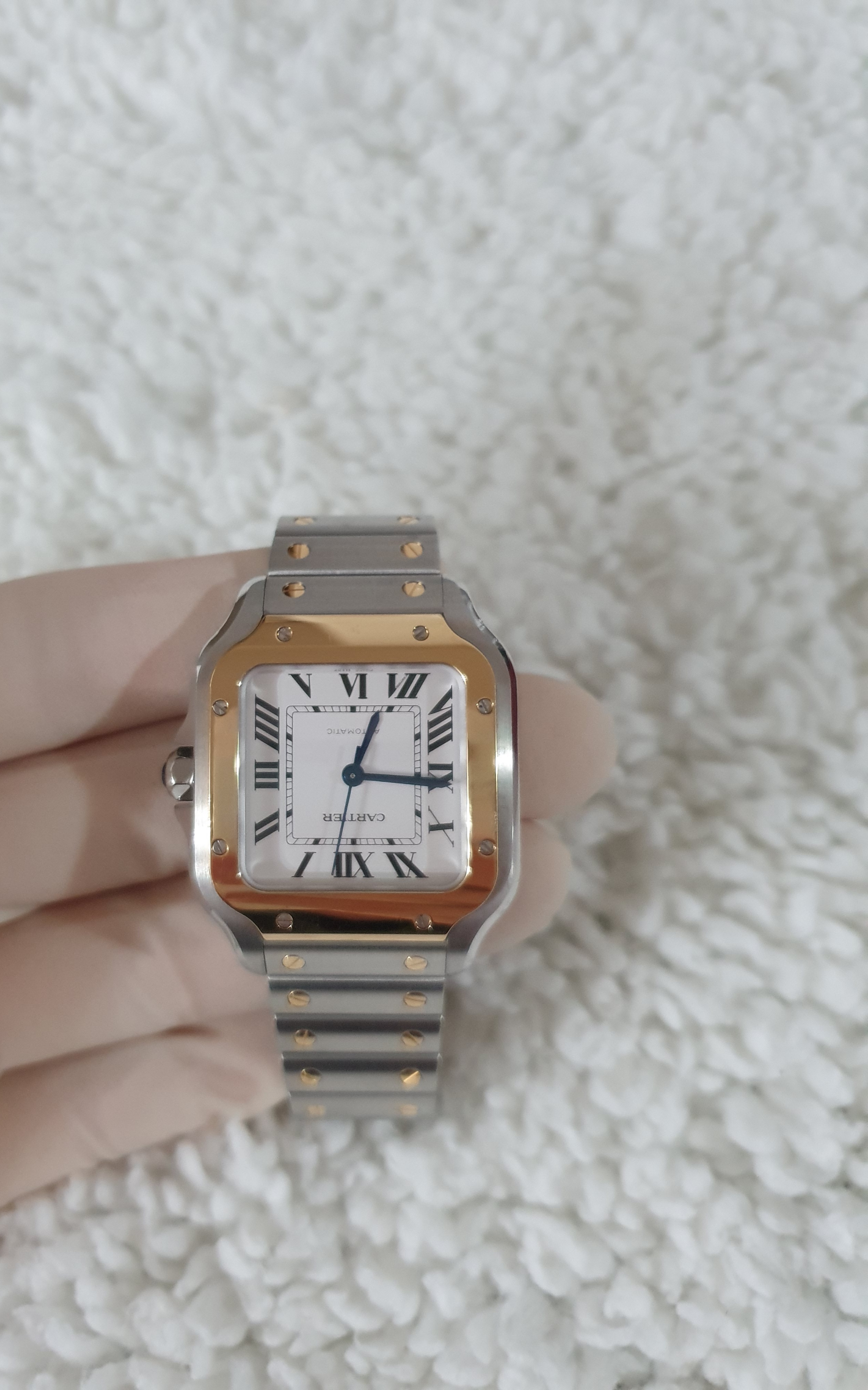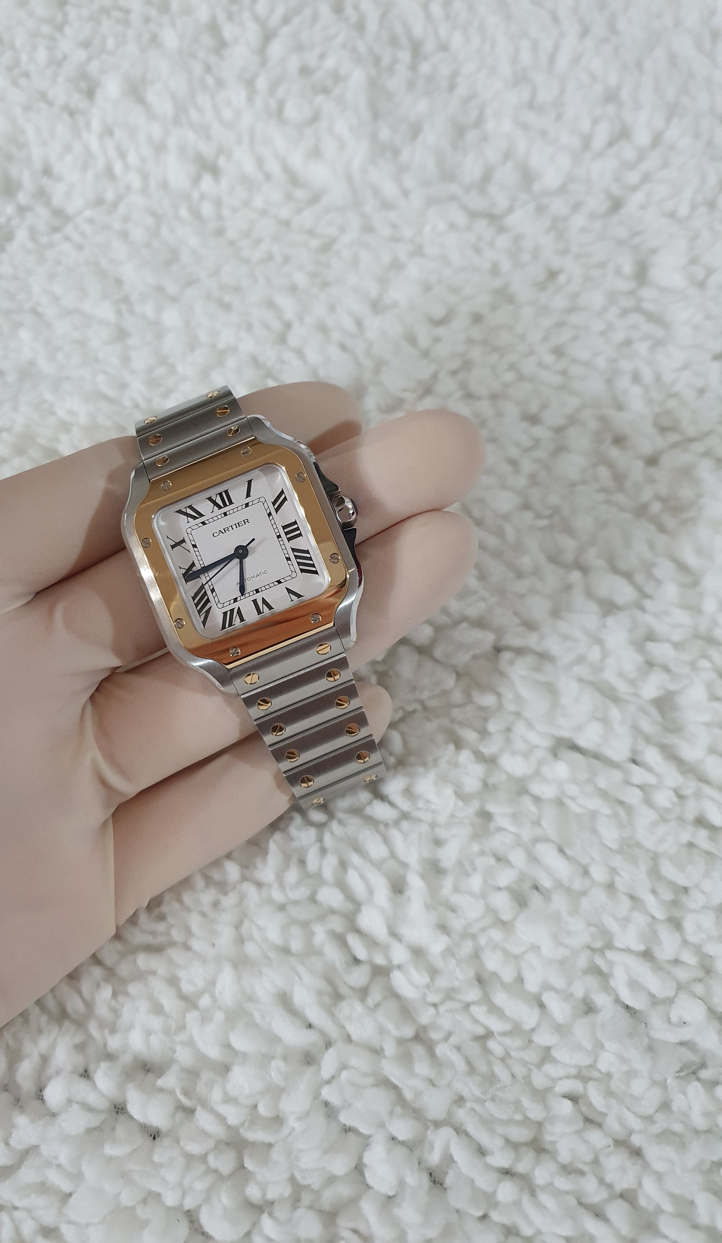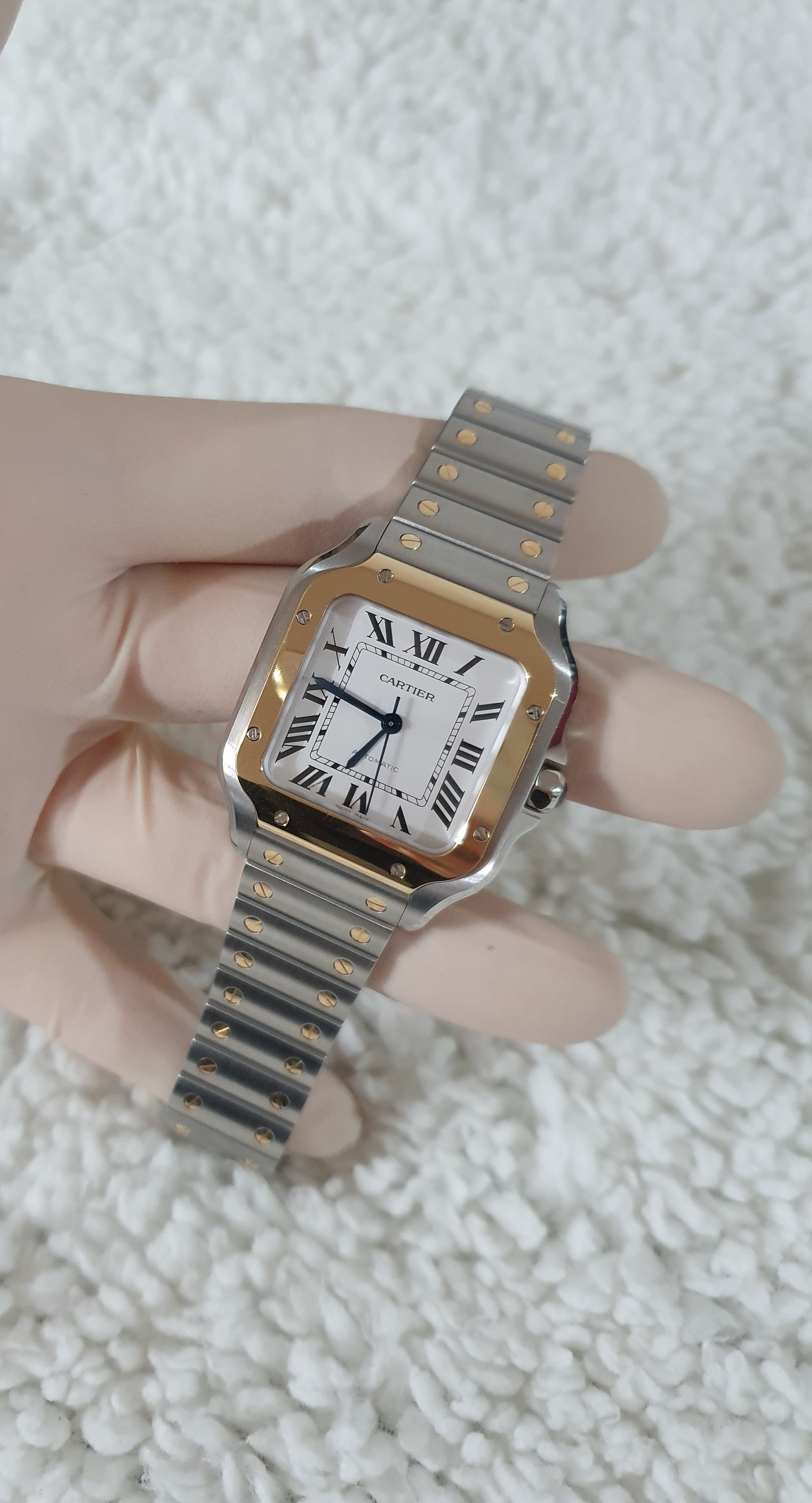 This is the Cartier Santos Medium Combi model.