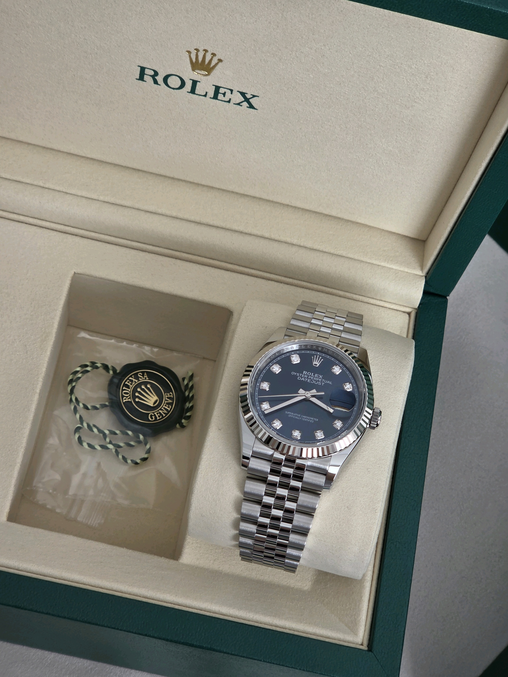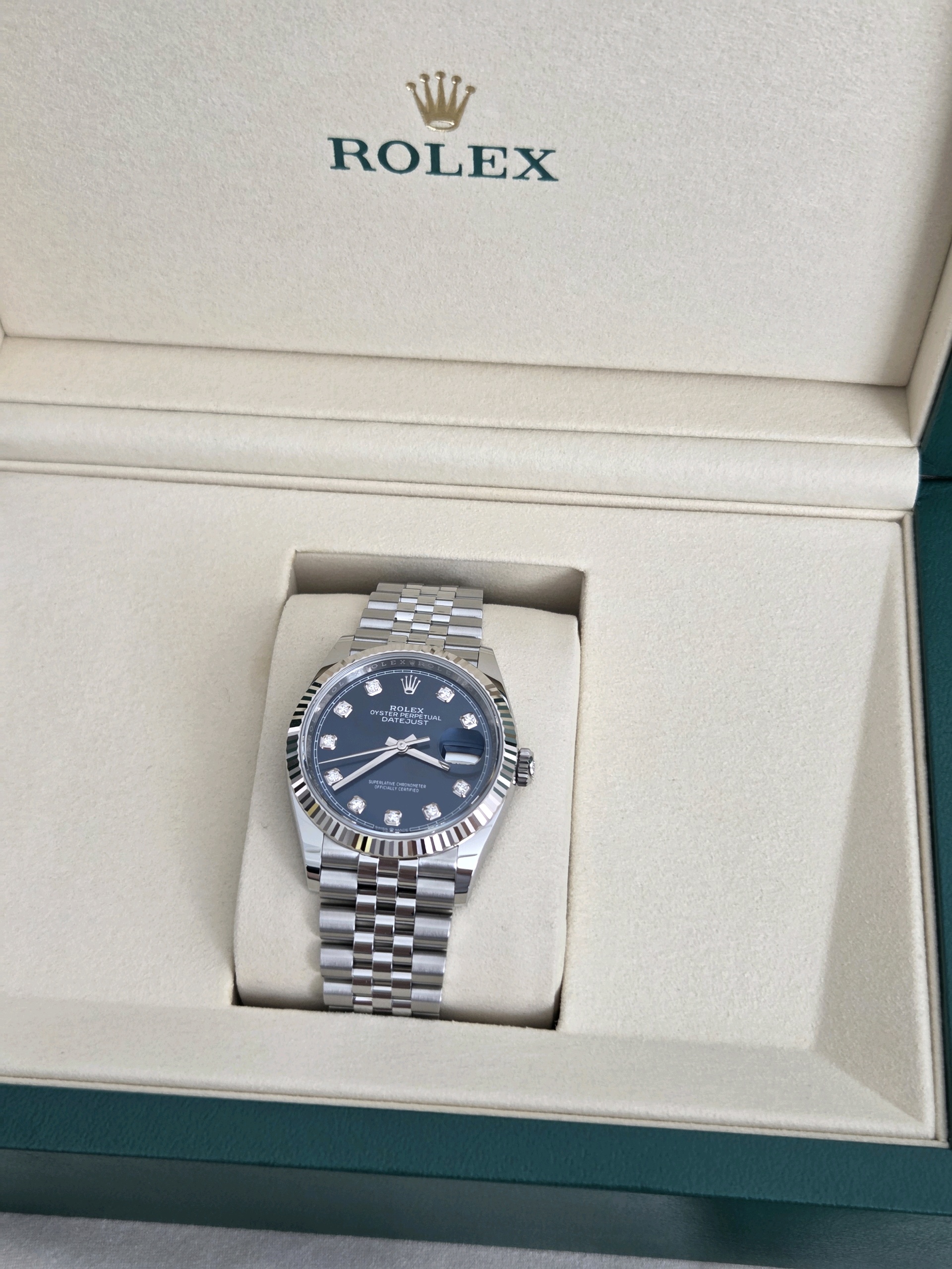 datejust36,126234,m126234-0037,브라이트 블루,다이아몬드,스테인레스 스틸 + 화이트 골드,스테인레스 스틸,쥬빌리 브레이슬릿,사파이어 크리스탈,36mm,데이트저스트,데이저스트,데이트,화이트골드,화골,롤레조,콤비,청판,데잇저스트,데잇,예물시계 추천,다이아,다이아몬드 세팅,쥬빌리,어버이날 선물,40대 추천,단종,Rolex,스테인리스 스틸,화이트 골드,Switzerland,Stainless steel,Folding clasp,Date / diamond-set indices,Hour + minute + seconds,Datejust 36,데이저스트 36,Datejust,롤렉스,남성,예물,웨딩,.블루,보석 세팅,폴딩 클라스프,약 20mm,원형,클래식,남녀공용