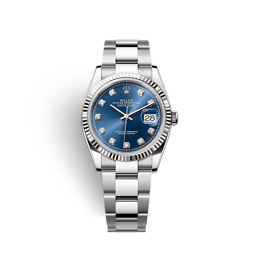 36mm, 브라이트 블루/다이아몬드, 오이스터