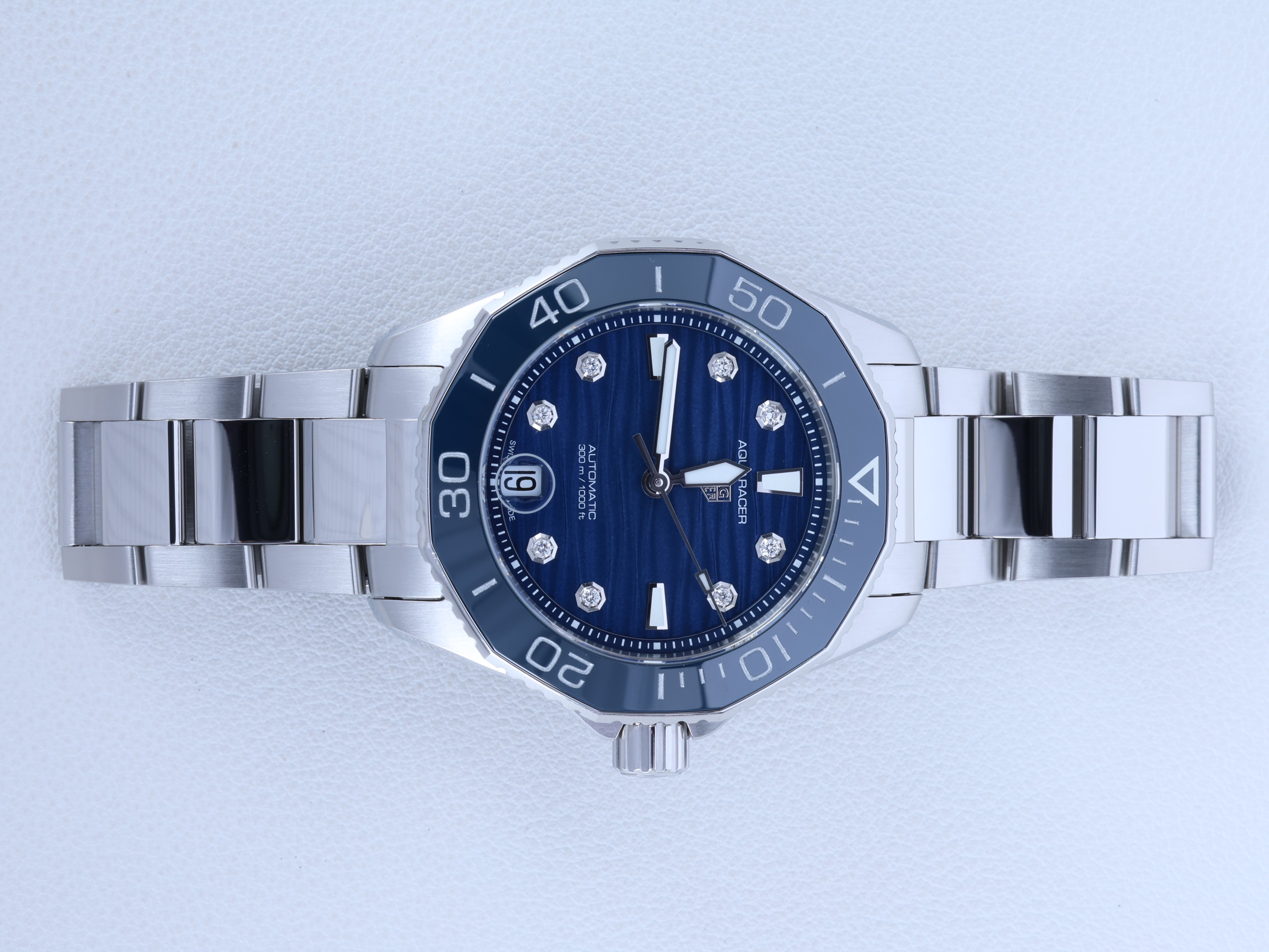 태그호이어 아쿠아레이서 프로페셔널 300 데이트 블루 청판 스틸 다이아몬드 세팅 다이버 남녀공용 셀프 와인딩 데이트,WBP231B.BA0618,블루,다이아몬드 세팅,스테인리스 스틸,브레이슬릿,36mm,회전 베젤,셀프 와인딩,Calibre 5 Automatic,Switzerland,Stainless steel,Folding clasp,Date / applied baton & diamond-set indices,Aquaracer Professional 300 Date,아쿠아레이서 프로페셔널 300 데이트,Aquaracer,TAG Heuer,태그 호이어
