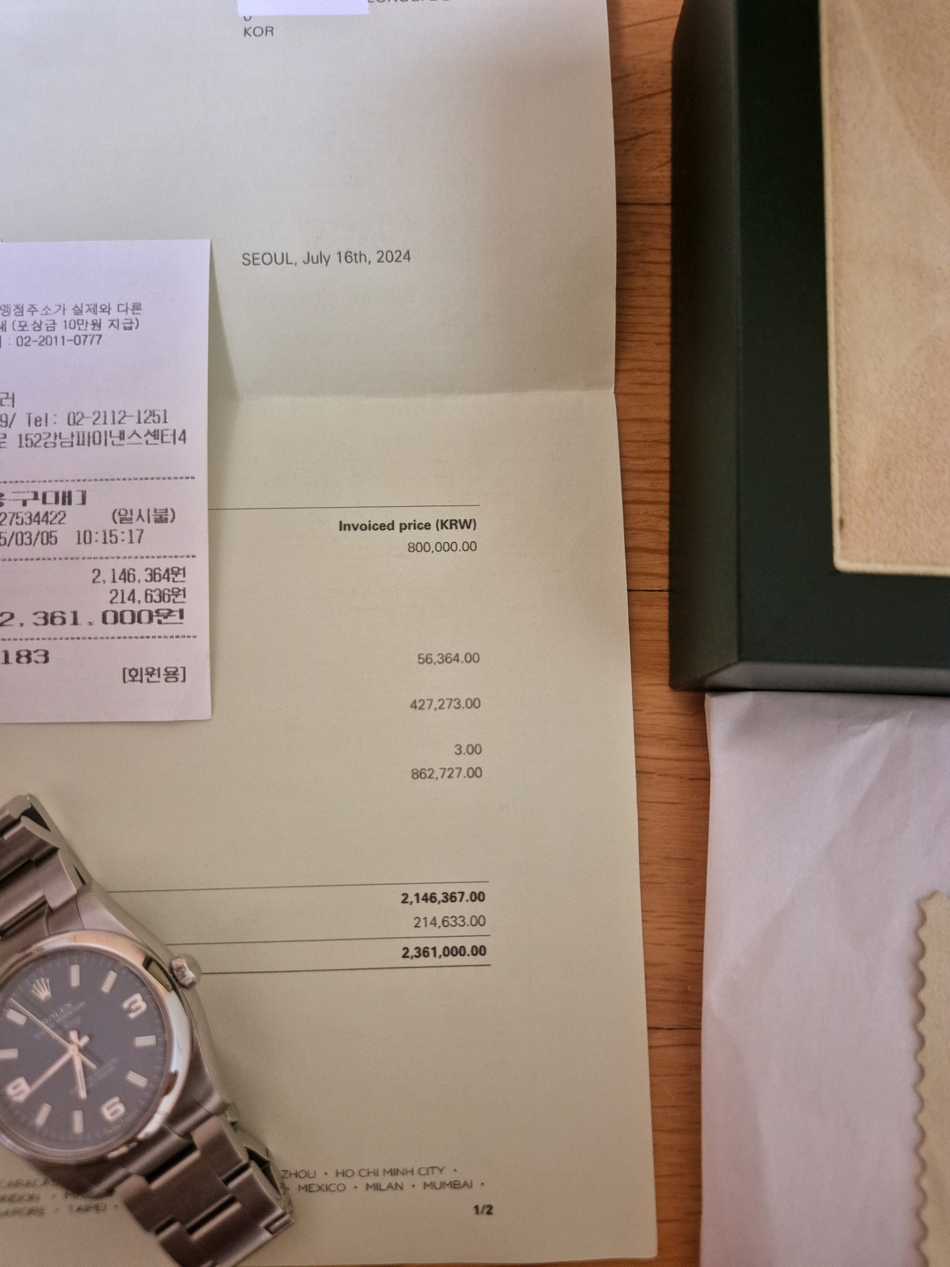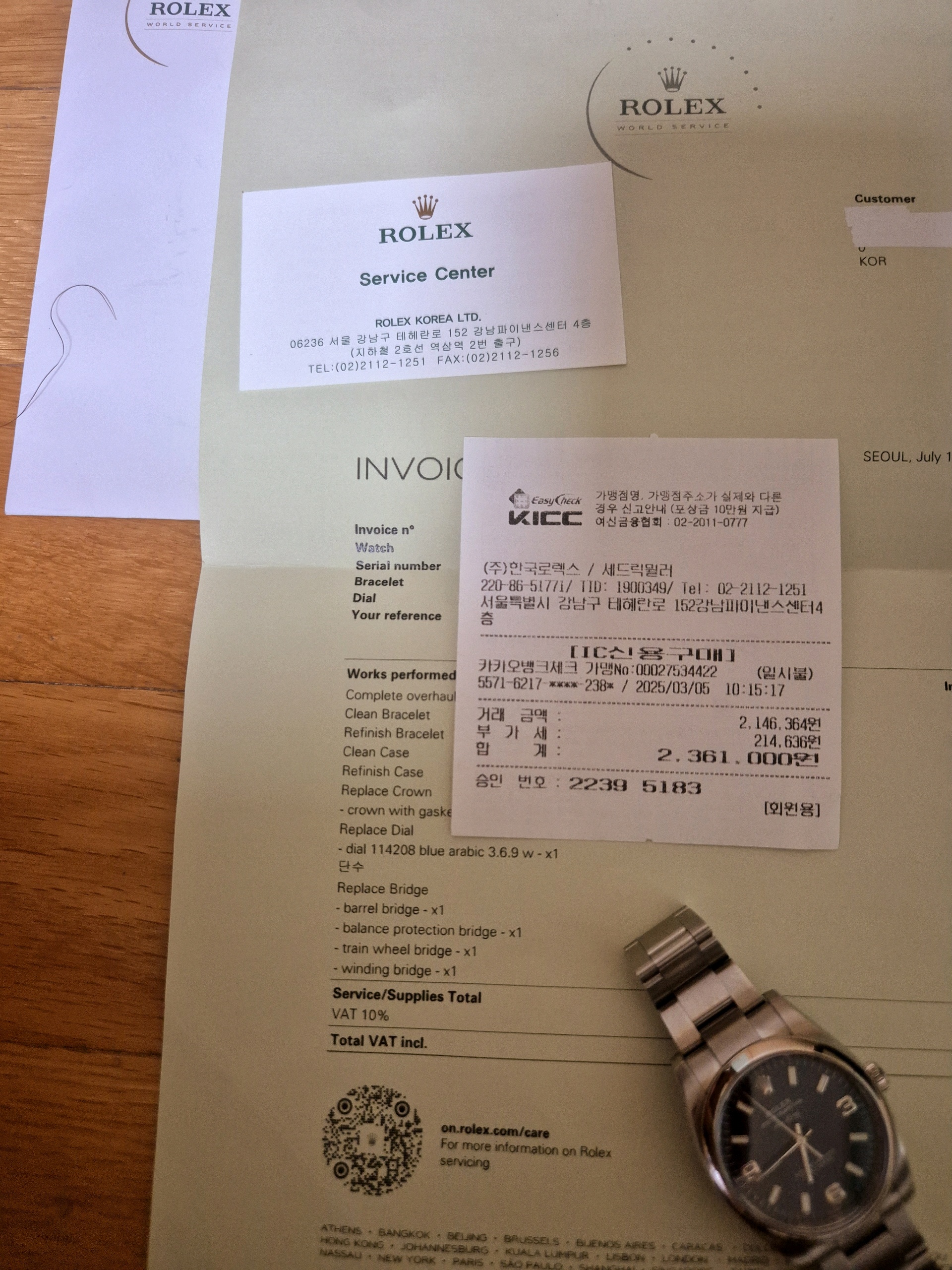 24年7月ロレックス公式csセンターで修理受付後