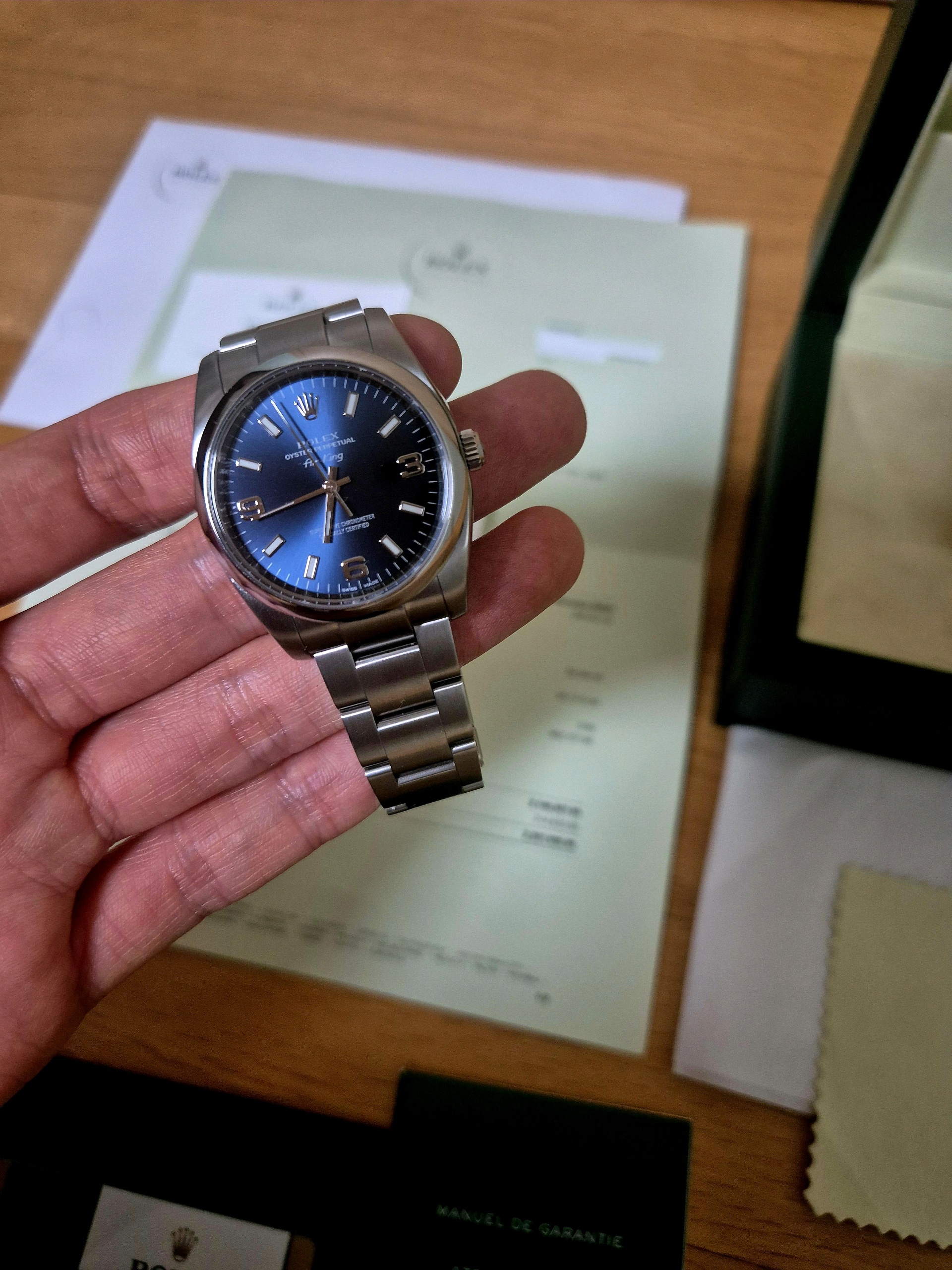 34mm、ブルー/3-6-9アラビック、オイスター