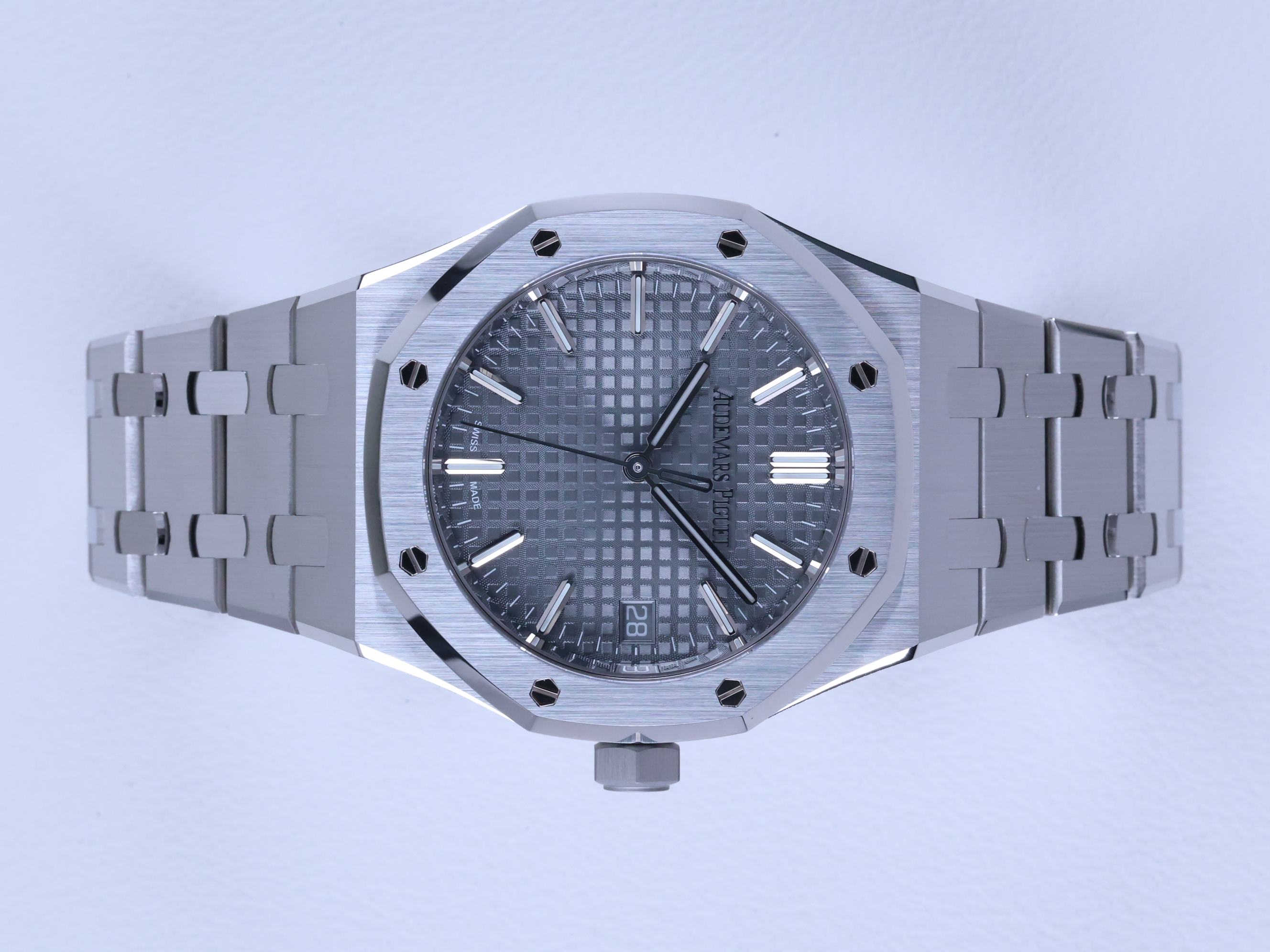 RoyalOak,15550,15550ST.OO.1356ST.07,로열오크,로얄오크,AP,오데마,피게,팔각베젤,옥타곤,제랄드젠타,제럴드젠타,50주년,그레이,스테인레스스틸,사파이어크리스탈,37mm,AudemarsPiguet,스테인레스 스틸,사파이어 크리스탈,Royal Oak,Audemars Piguet,오데마 피게,로열 오크,스테인리스 스틸,셀프와인딩,Stainless steel,Butterfly clasp,Date / applied baton indices,AP 오데마피게 오데마 피게 로열 로얄 오크 로열오크 로얄오크 37mm 그레이 그래이 37mm,셀프 와인딩,.그레이,바,패턴,폴딩 클라스프,데이트,투명 케이스백,스포츠,Royal Oak Selfwinding,Butterfly folding clasp,Royal Oak