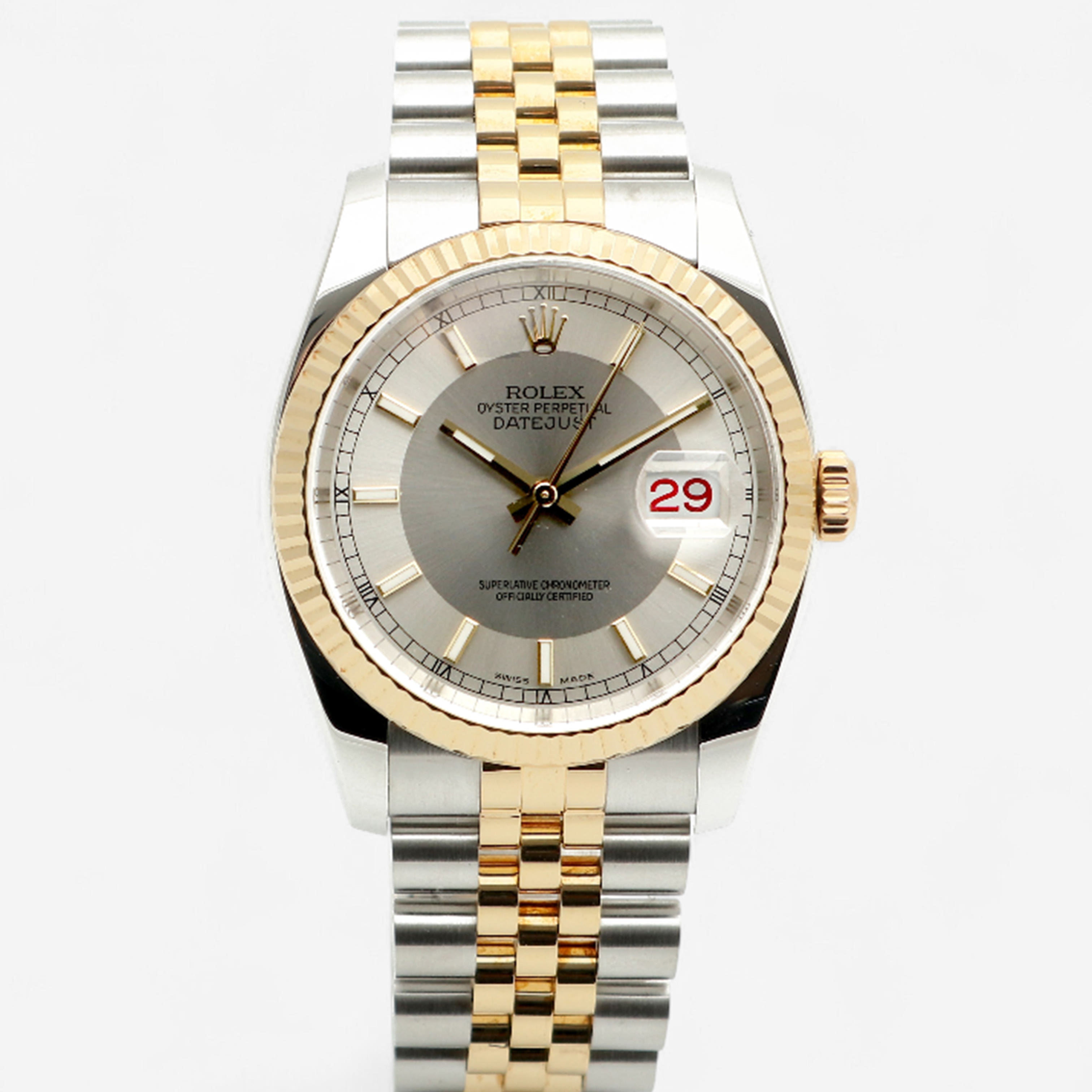 Datejust 36,데이트저스트 36,Datejust,Rolex,롤렉스,Rolex Datejust 36 116233-WHTUX,롤렉스 데이트저스트 36 턱시도,롤렉스 데이트저스트 털시도,롤렉스 데이트저스트 36 116233 턱시도,롤렉스 데이트저스트 36 턱시도 실버,롤렉스 데이트저스트 36 실버 턱시도,롤렉스 데이트저스트 턱시도 옐로우 골드,롤렉스 데이트저스트 턱시도 옐골,실버,쥬빌리 브레이슬릿,사파이어 크리스탈,36mm,옐로우 골드,플루티드,Cal. 3135,Stainless steel,Hidden folding clasp,Date / baton indices,Yellow gold,실버, 스틸
