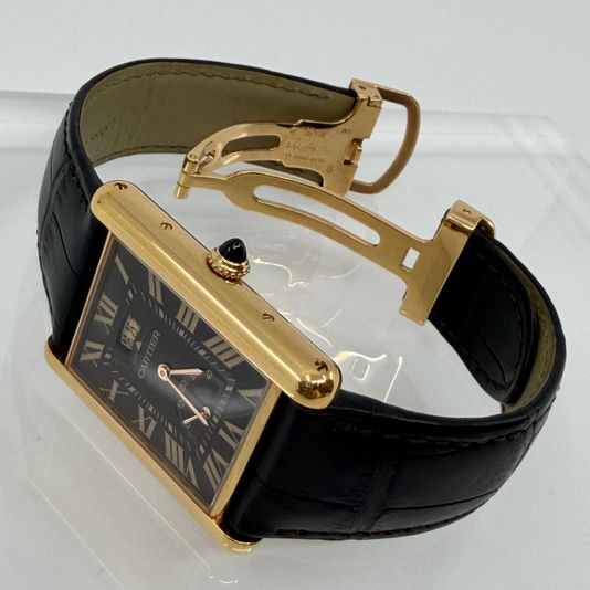 W1560002,까르띠에 카르티에 탱크 루이 XL 엑스라지 엑스트라 라지 로즈골드 로골 커피 브라운 캘린더 파워리저브 커피 브라운 로즈골드 로골,커피,로즈 골드,가죽,스트랩,핸드 와인딩,Cal. 9753 MC,Switzerland,Rose gold + sapphire,Deployant folding buckle,Date,power reserve / roman numeral indices,Tank Louis XL Calendar aperture and power reserve,탱크 루이 캘린더 & 파워 리저브,Tank,Cartier,까르띠에,로만,Date, power reserve / roman numeral indices