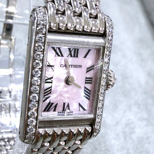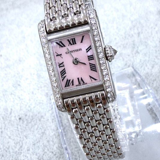 까르띠에 카르티에 미니 탱크 미니,WB2031U3,핑크,화이트 골드,다이아몬드 세팅,쿼츠,Switzerland,White gold,Folding clasp,Roman numeral indices,Tank Mini,탱크 미니,Tank,Cartier,까르띠에