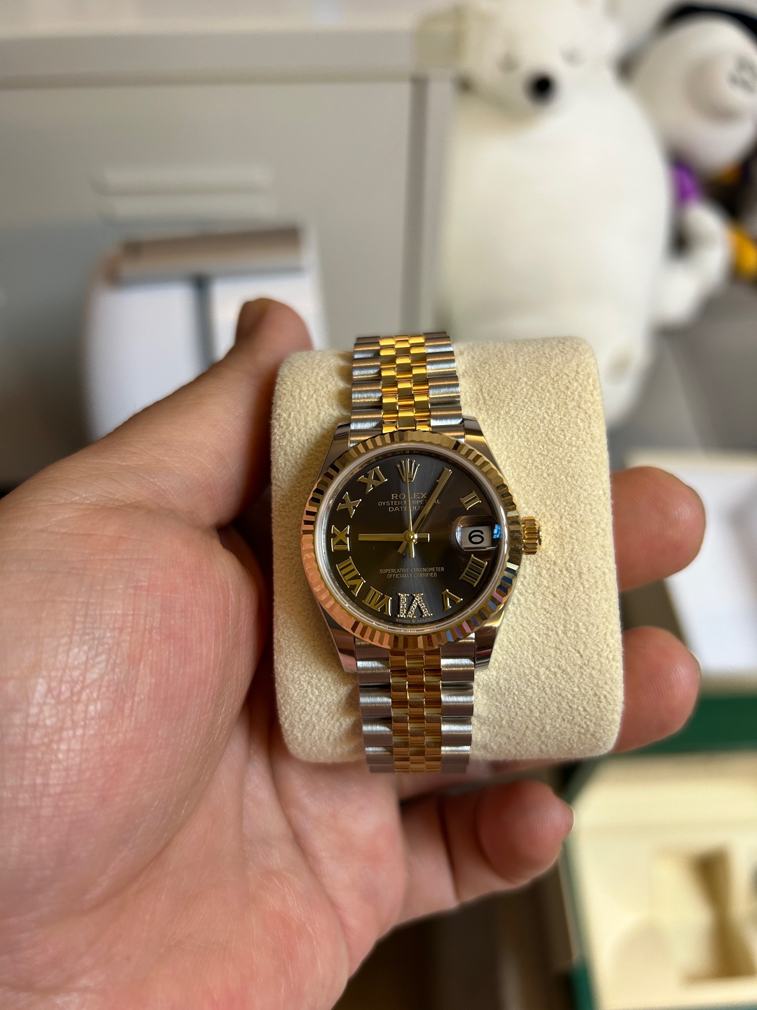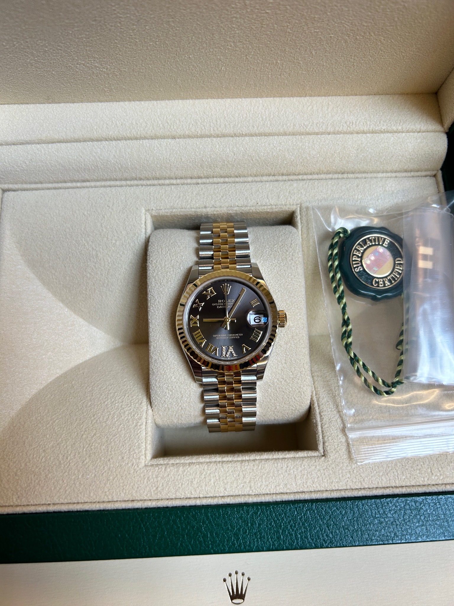 datejust31,278273,m278273-0018,다크 그레이,로만 vi다이아몬드,스테인레스 스틸 + 옐로우 골드,쥬빌리 브레이슬릿,사파이어 크리스탈,31mm,데이트저스트,데이저스트,데이트,옐로우골드,옐골,롤레조,콤비,데잇저스트,데잇,여자시계,여자시계추천,예물시계 추천,다이아,다이아몬드,다이아몬드 세팅,쥬빌리,어버이날 선물,40대 추천,단종,Rolex,로만 VI다이아몬드,스테인리스 스틸,옐로우 골드,스테인리스 스틸 + 옐로우 골드,플루티드,Cal.2236,Switzerland,Yellow gold,Hidden folding clasp,Date / 6-diamond-set,roman numeral indices,Hour + minute + seconds,Datejust 31,데이저스트 31,Datejust,롤렉스,Date / 6 o'clock diamond-set,로만, VI 다이아몬드 세팅,스테인리스 스틸, 옐로우 골드,Date / 6 o'clock diamond-set, roman numeral indices,여성,예물,웨딩