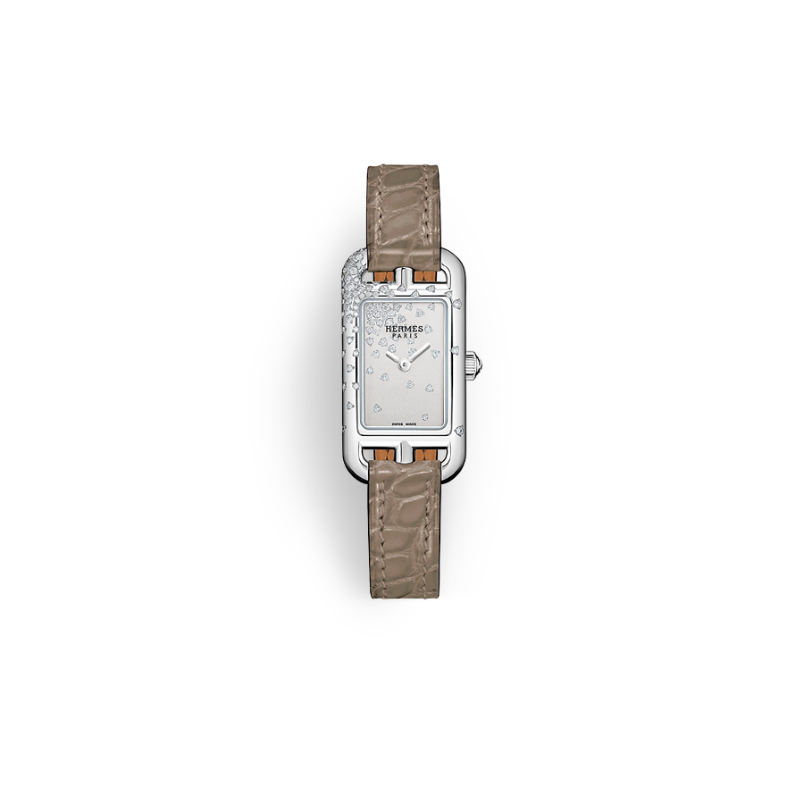 Nantucket,난투켓,Hermes,에르메스,Nantucket NA2.171,Hermes Nantucket White Mother of Pearl MOP Diamonds Bezel Diamonds NA2.171 W404985WW00,에르메스 난투켓 난터켓 로즈 골드 자개 MOP 다이아 다이아몬드 베젤 다이아 다이아몬드 NA2.171 W404985WW00,쿼츠,사파이어 크리스탈,Rose gold,Hook clasp (jewelry clasp),3-9 o'clock diamond-set hour markers,6-12 arabic numerals,3-9 o'clock diamond-set hour markers, 6-12 arabic numerals