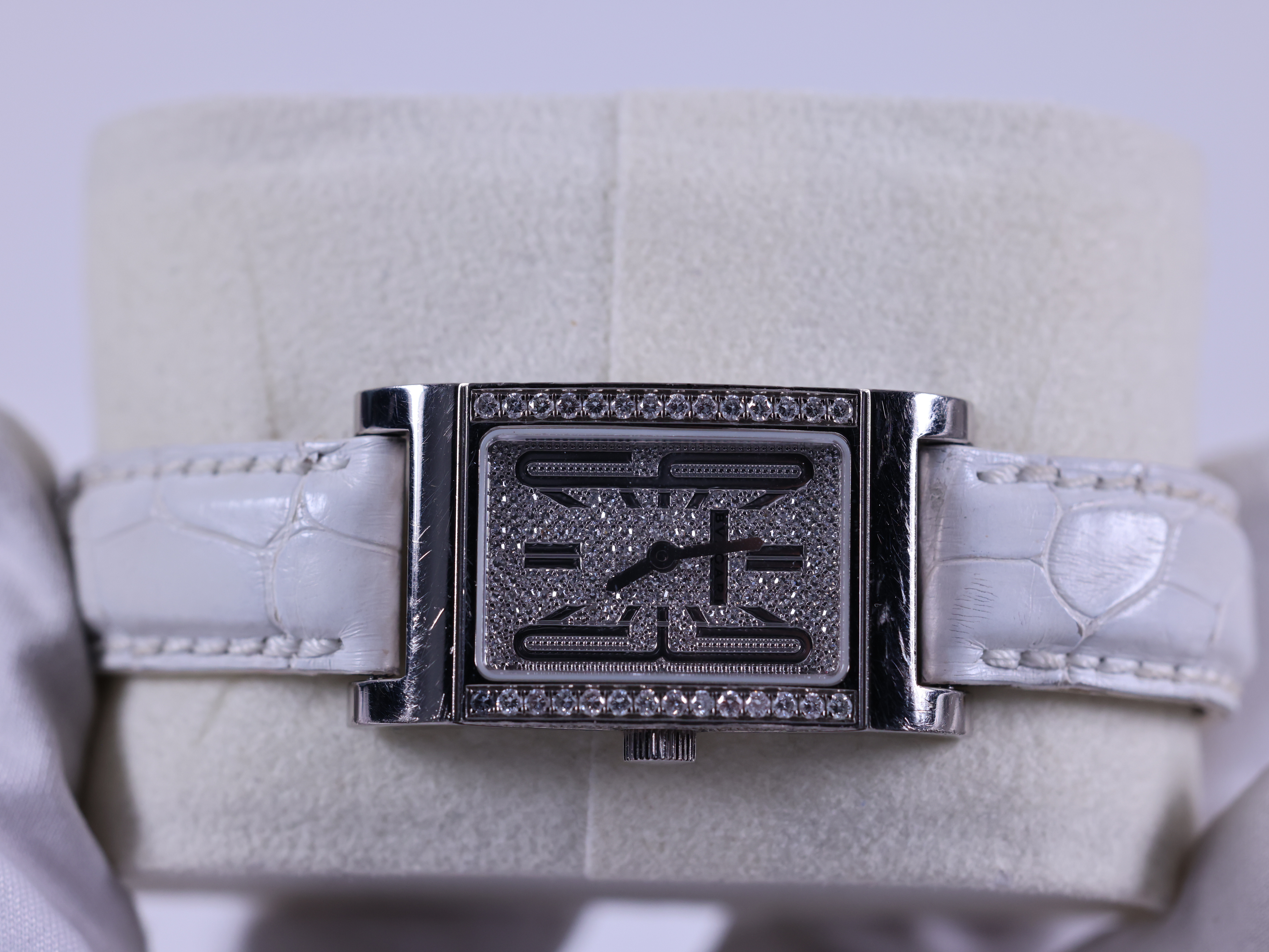 RTW39DGD2L,Rettangolo,불가리 레탕골로 렉탕골로 화이트 골드 파베 다이아 다이아몬드 파베,Bvlgari,불가리,다이아몬드 파베,화이트 골드,다이아몬드 세팅,쿼츠,White gold,Pin buckle,Date / applied arabic numerals at 3 & 9,레탕골로,렉탕골로
