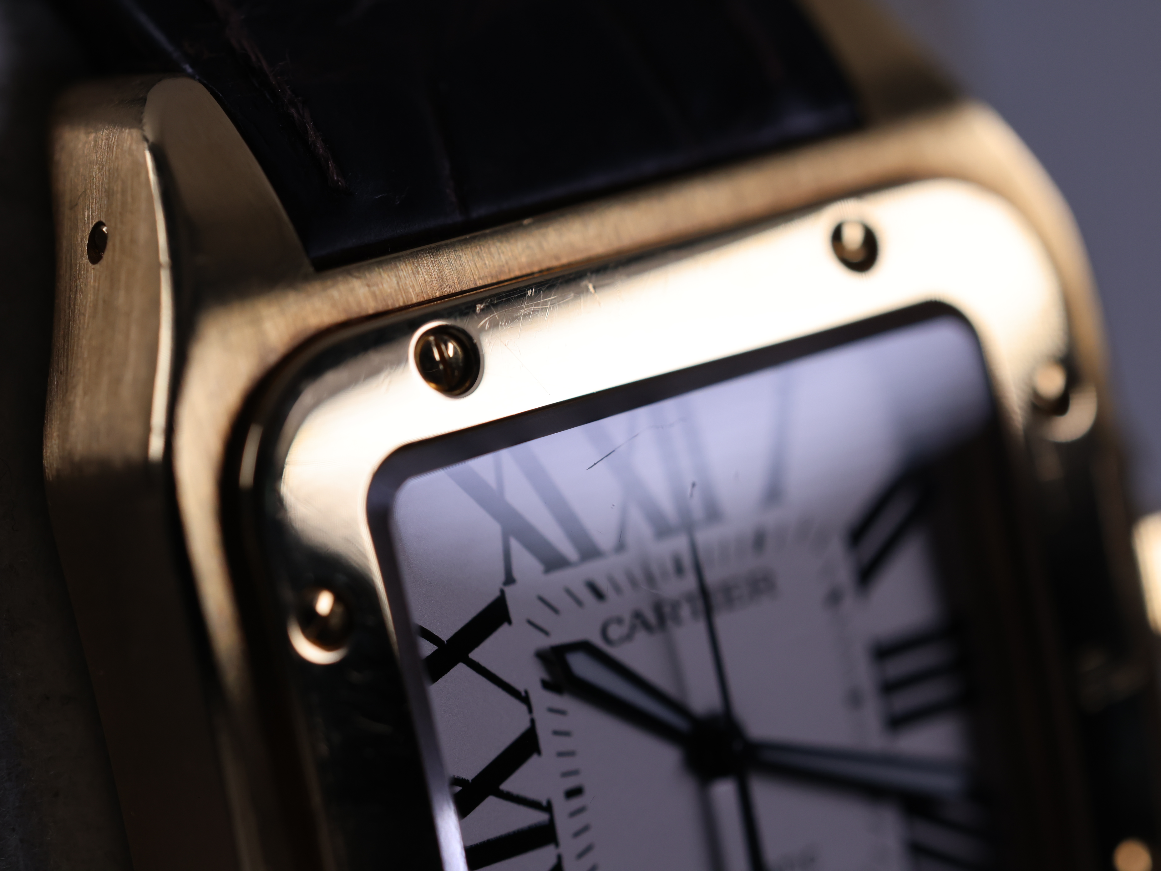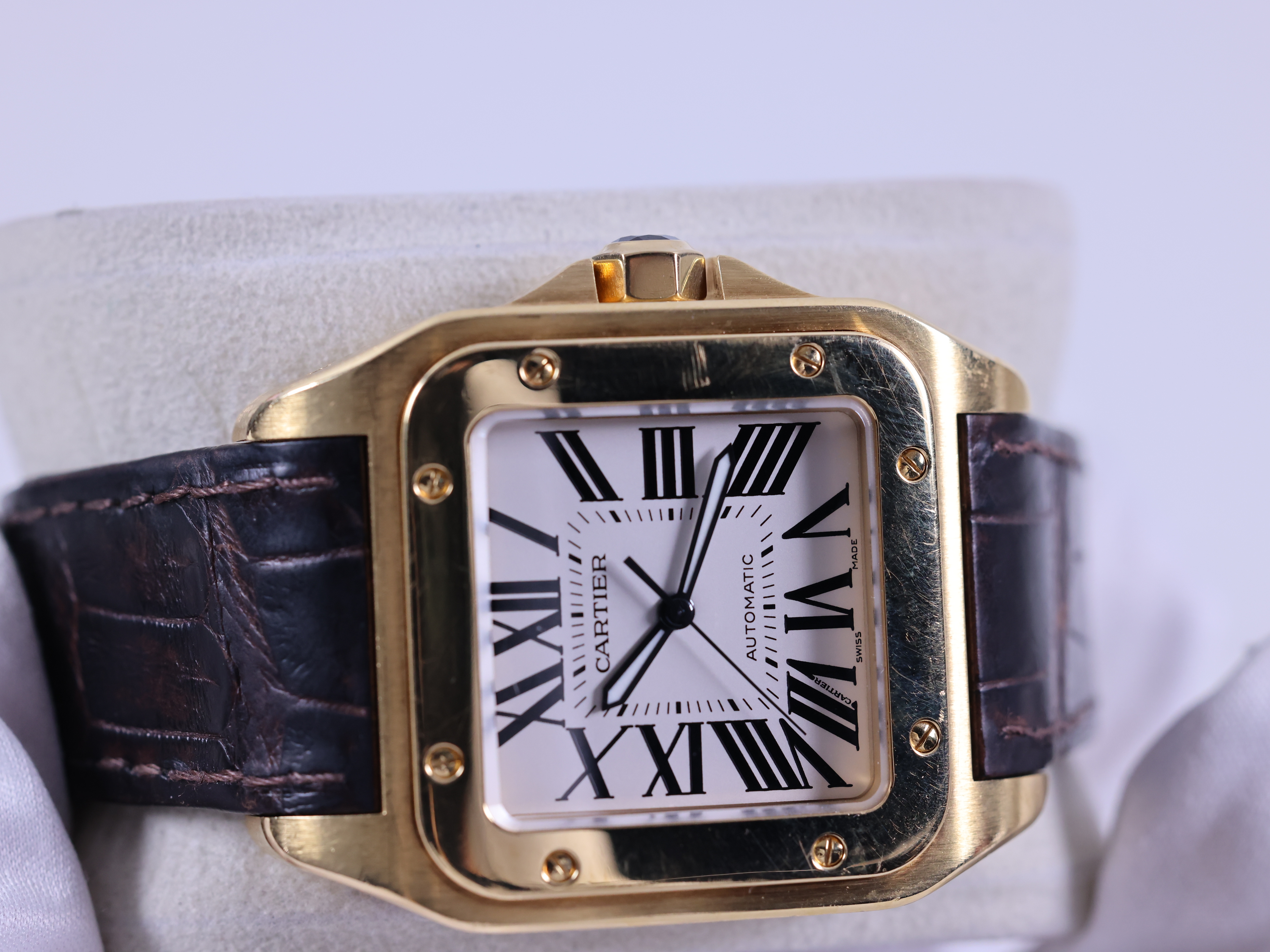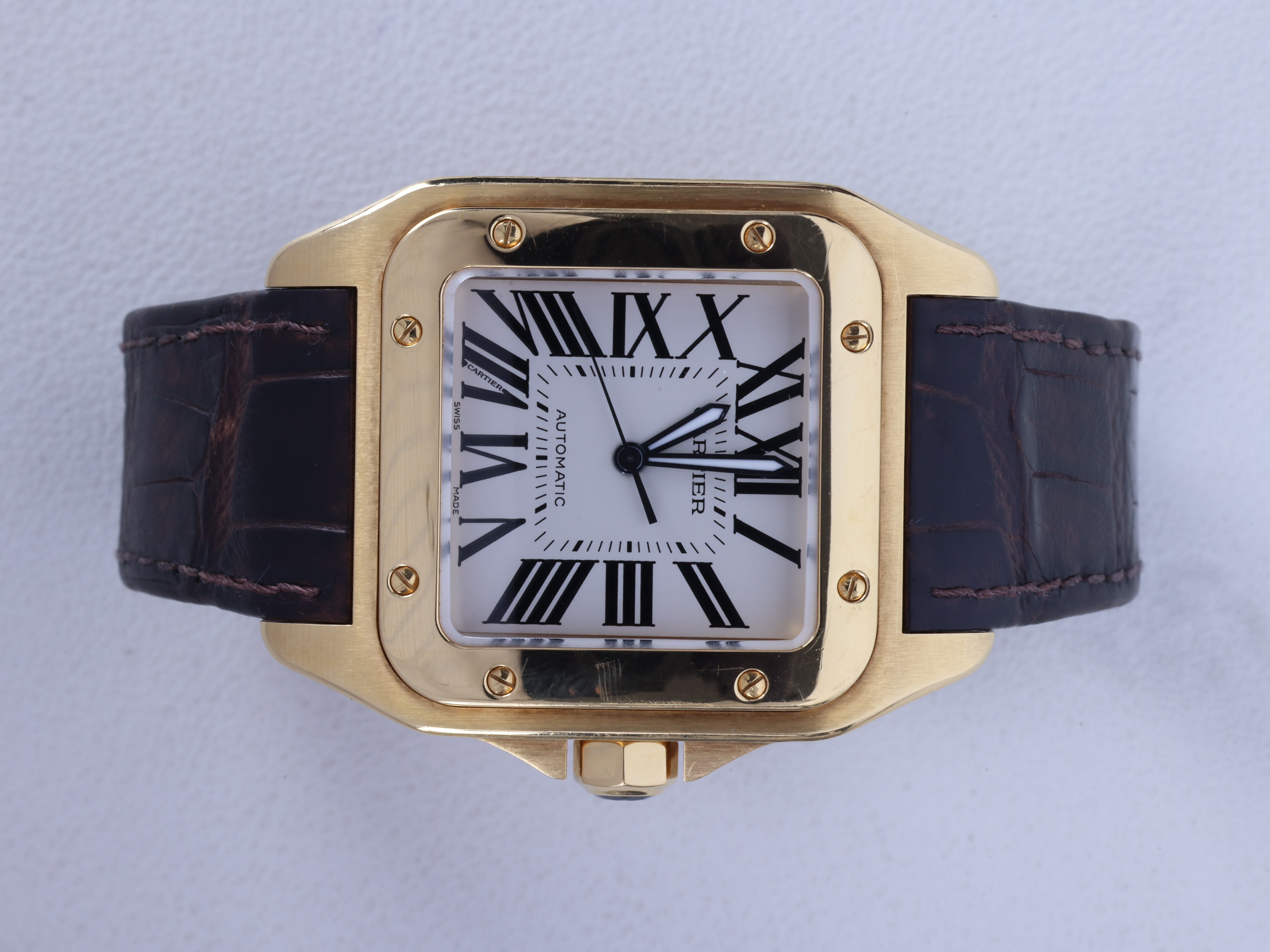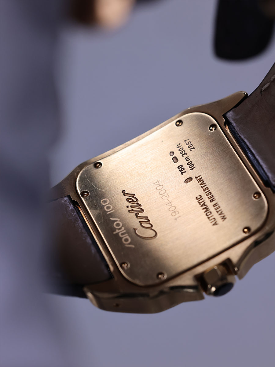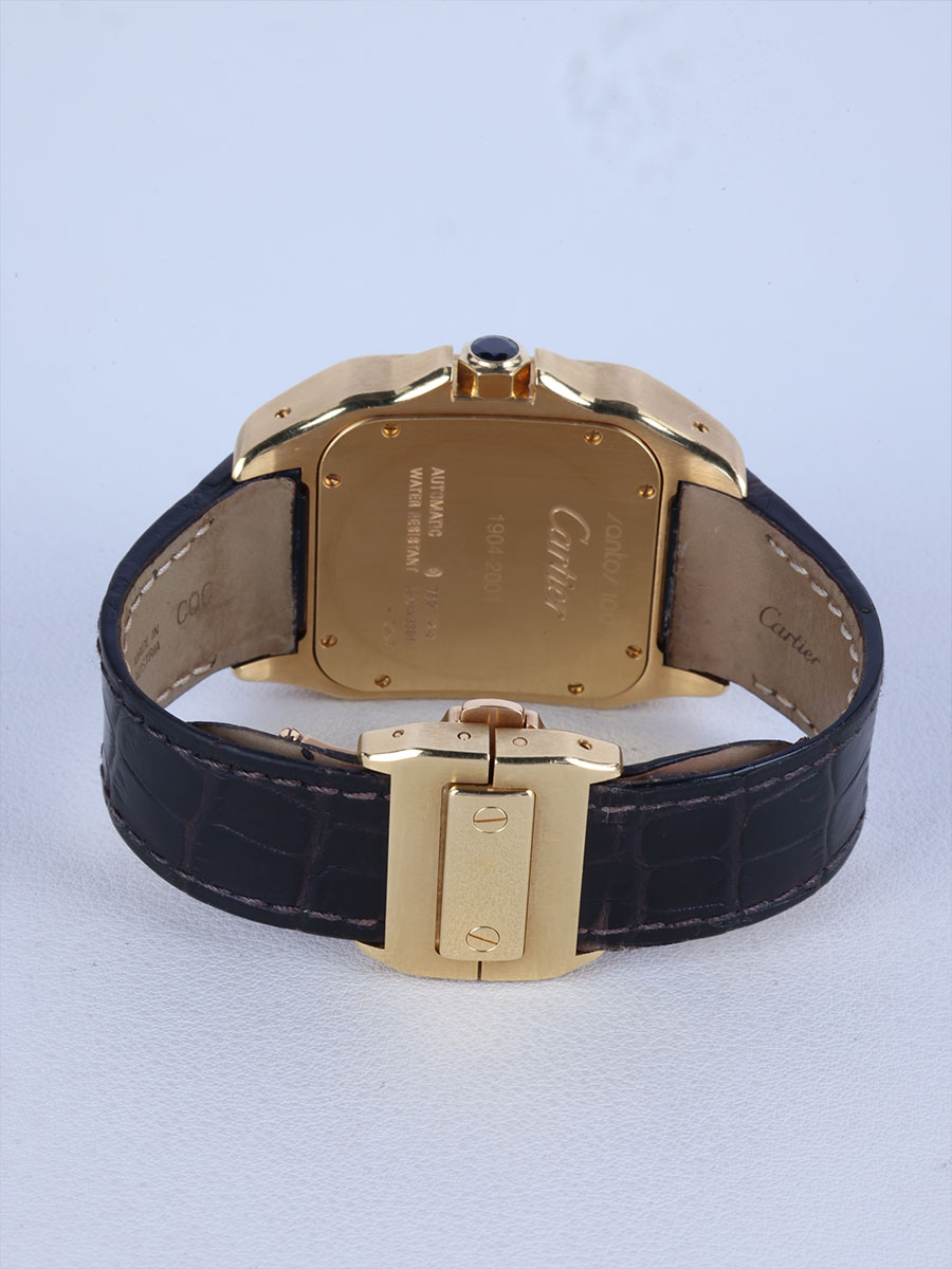 W20078Y1,옐로우 골드,셀프 와인딩,Yellow gold + sapphire,Deployant folding clasp,Roman numeral indices,Santos 100,산토스 100,Santos de Cartier,Cartier,까르띠에 카르띠에 카르티에 산토스 싼토스 100 W20078Y1 옐로우 골드 옐골 금통,까르띠에