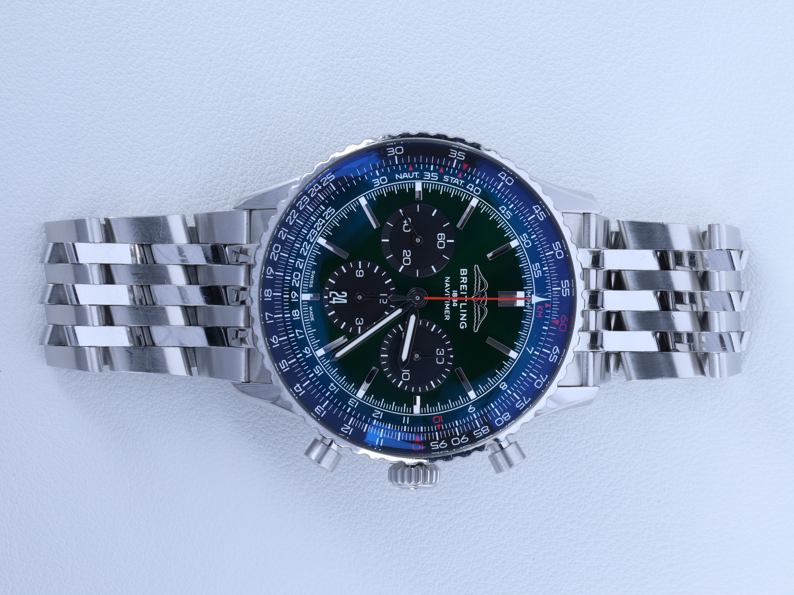 AB0137241L1A1,브랄 브라이틀링 내비타이머 B01 크로노그래프 크로노 46 스틸 그린 스틸 빅사이즈 AB0137241L1A1,Breitling Navitimer B01 Chronograph chrono 46 steel green steel AB0137241L1A1,Navitimer B01 Chronograph 46,내비타이머 B01 크로노그래프 46,Navitimer,Breitling,브라이틀링,46mm,셀프 와인딩,Stainless steel,Folding clasp,Date,chronograph subdials,small seconds / applied baton indices,inner slide rule scale,Date, chronograph subdials, small seconds / applied baton indices, inner slide rule scale