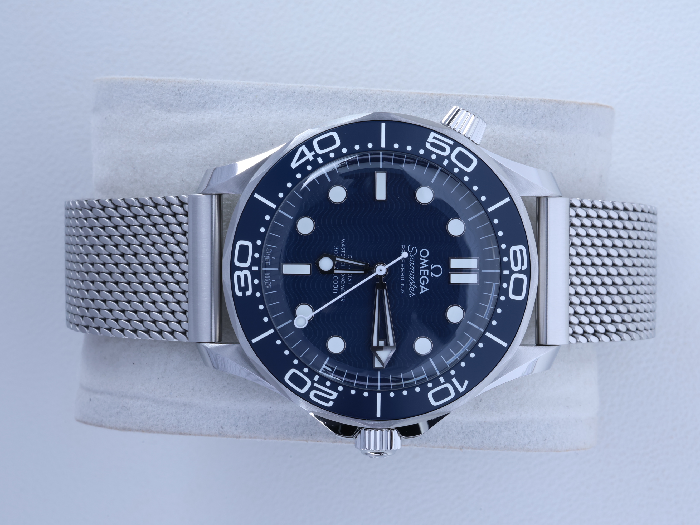 Diver300M,210.30.42.20.03.002,씨마스터,씨마,다이버,다이버300,300,오메가,제임스 본드,James Bond,시스루백,물결,Omega블루,스테인레스스틸,사파이어크리스탈,42mm,14.3mm,약156g,300m,세라믹,역회전방지베젤,셀프와인딩,Cal.8806,25,200진동,약55시간,SeaMaster,블루,스테인레스 스틸,메쉬형,메쉬,폴딩 클래스프,사파이어 크리스탈,Diver 300M,Seamaster,Omega,다이버 300M,오메가 SMP,오메가 씨마스터 프로페셔널,Seamaster Diver 300M 007 60th Anniversary,스테인리스 스틸,Switzerland,Stainless steel,Folding clasp,Applied hour markers,Hour + minute + seconds,.블루,도트,패턴,폴딩 클라스프,투명 케이스백,20 mm,원형,남성용,Applied dotted & baton indices