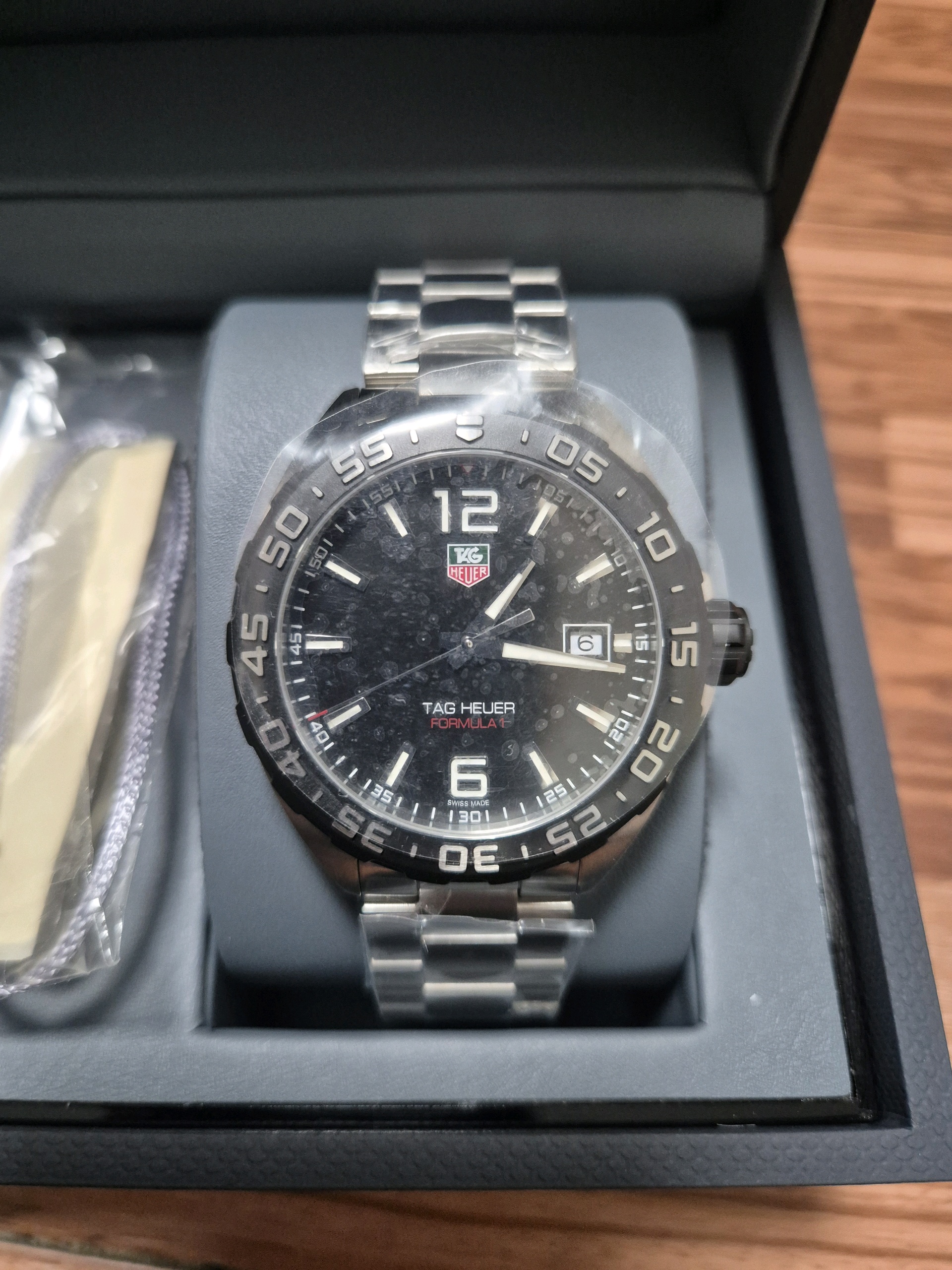 포뮬러 1 데이트 블랙 검판 스틸 바 아라빅 레이싱 남성용 쿼츠 데이트,WAZ1110.BA0875,블랙,스틸,브레이슬릿,41mm,회전 베젤,쿼츠,Switzerland,Formula 1 Date,포뮬러 1 데이트,Formula 1,TAG Heuer,태그 호이어,스테인리스 스틸,Stainless steel,Folding clasp,Date / applied arabic numerals & trapezoidal indices