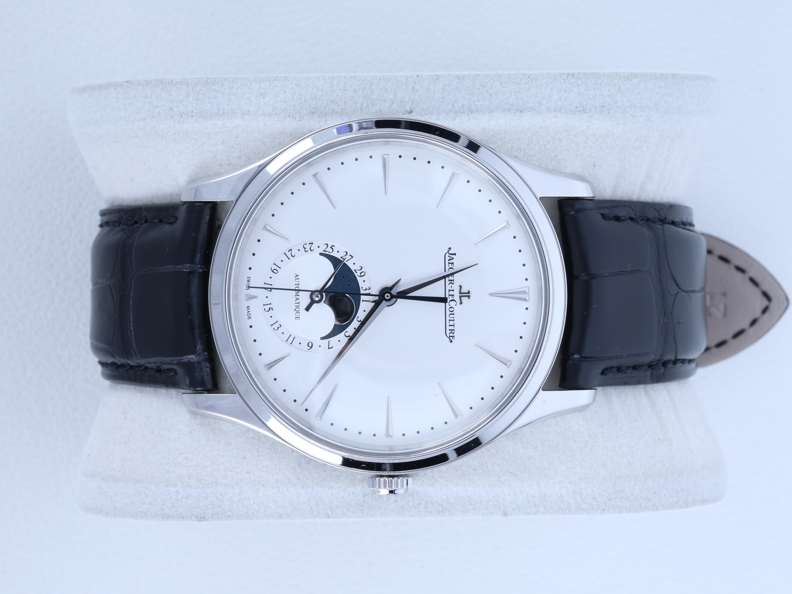 JLC Q1368430,예거 르쿨트르 Q1368430,예거 르쿨트르 마스터 울트라 씬 Q1368430,예거 르쿨트르 마울씬 Q1368430,Jaeger LeCoultre Master Ultra Thin,예거 르쿨트르 마스터 울트라 씬,예거 마스터 울트라 씬,예거 마울씬,예거 울트라 씬,예거 르쿨트르 마울씬,예거 문페이즈,예거 마울씬 실버,예거 마스터 울트라 씬 실버,실버 그레이,가죽 스트랩,39mm,스테인리스 스틸,셀프와인딩,Master Ultra Thin Moon,마스터 울트라 씬 문,Master Ultra Thin,Jaeger-LeCoultre,예거 르쿨트르,셀프 와인딩,Switzerland,Stainless steel,Deployant clasp with pin buckle,Date-moonphase / dauphine indices,Hour + minute + seconds + date,Deployant folding clasp with anchor buckle,Date-moonphase / applied dagger indices,.실버,바,그라데이션,디플로이언트,문페이즈,데이트,투명 케이스백,21mm,원형,클래식,드레스,남녀공용