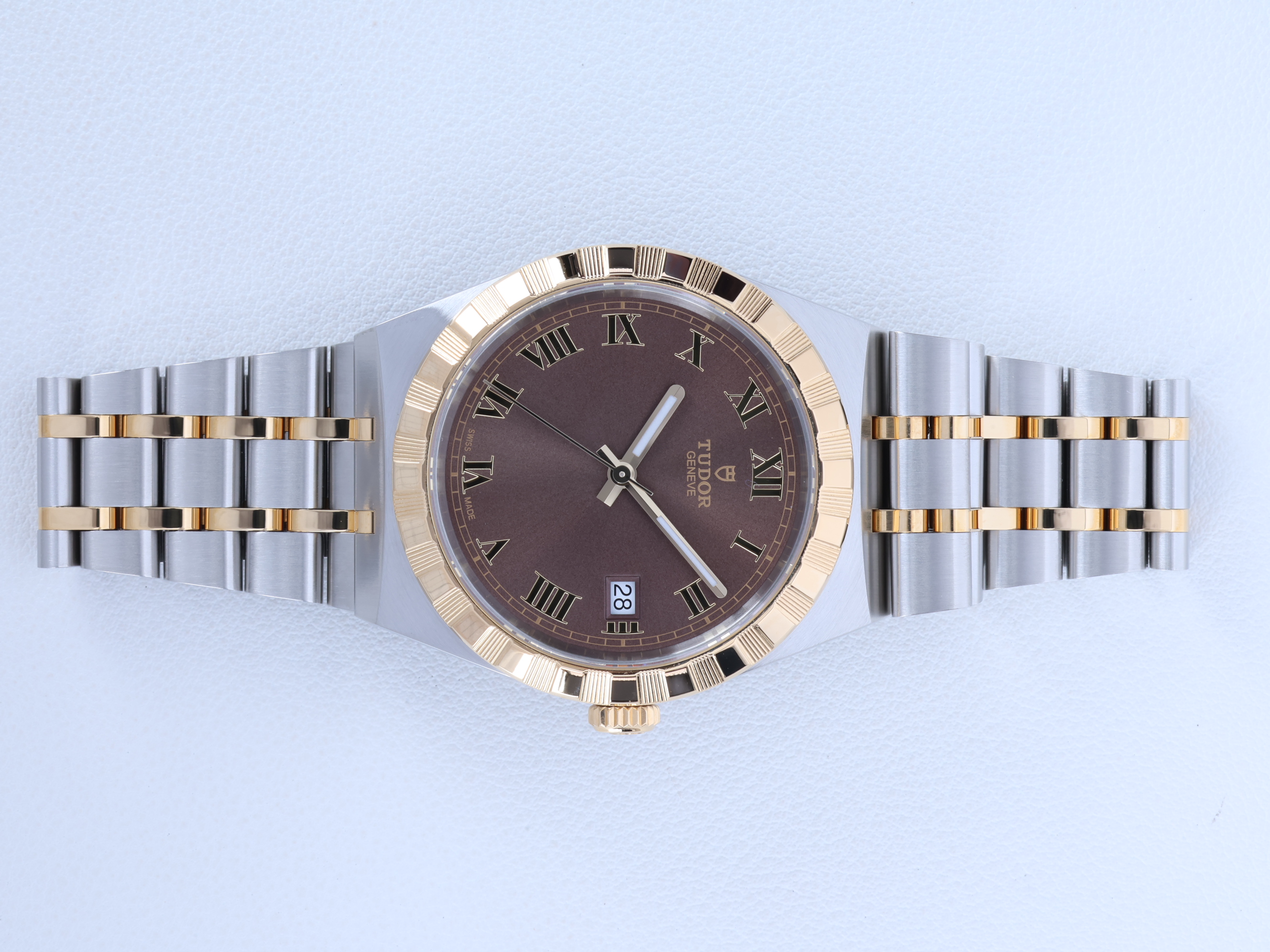 M28503-0007,Tudor Royal 38mm 28503 steel yellow gold steel two tone chocolate brown dial 38mm 28503,튜더 로열 로얄 38mm 28503 스틸 옐로우골드 옐로우 골드 스틸 투톤 초콜릿 초콜렛 브라운 다이얼 38mm 28503,초콜렛 브라운,스테인리스 스틸,브레이슬릿,38mm,셀프 와인딩,Yellow gold,Folding clasp,Date / roman numeral indices,Tudor Royal,튜더 로열,TUDOR Royal,Tudor,튜더,.브라운,로만,폴딩 클라스프,데이트,10mm,원형,클래식,남녀공용