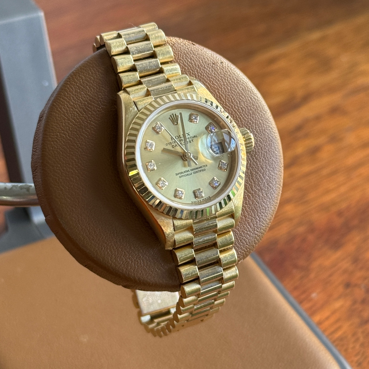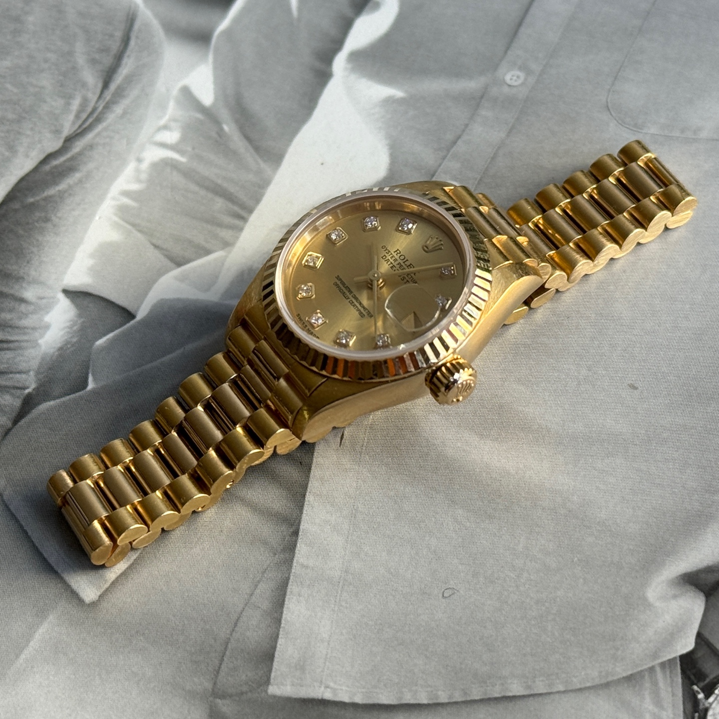 79178,10p,텐포,다이아,샴페인,다이아몬드,26mm,Lady-Datejust 26,레이디 데이트저스트 26,Lady-Datejust,Rolex,롤렉스,프레지던트 브레이슬릿,금,금통,골드,gold,옐골,여성 시계,여자 시계,레이디,woman,women,ladies,lady,셀프와인딩,셀프 와인딩,Switzerland,Yellow gold,Hidden folding clasp,Date / diamond-set indices,Hour + minute + seconds,다이아몬드 세팅,옐로우 골드