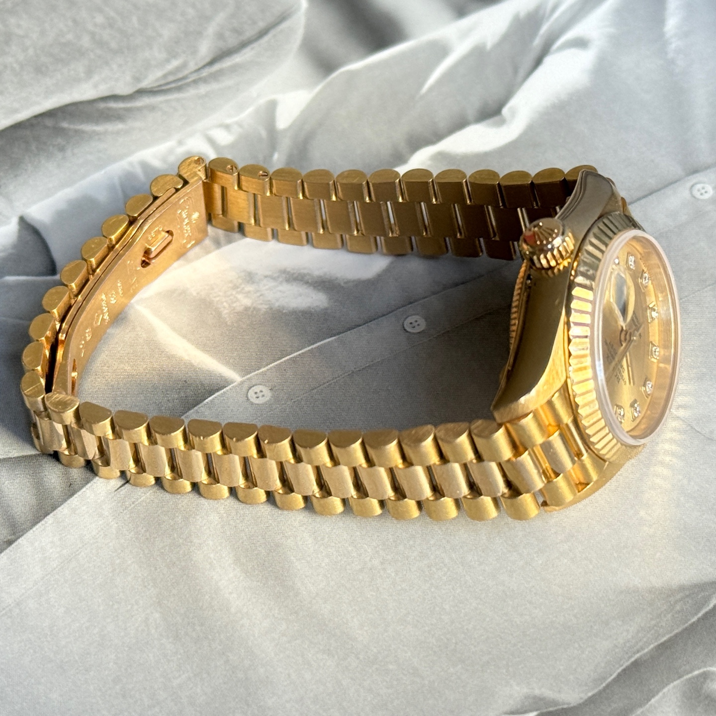 다이얼에 대해서도 잠시 설명드리자면 롤렉스 금통 시계의 경우에는 다이아몬드 부분도 옵션이나 다이얼 재도색 다이얼일 경우가 많은데, 이 제품은 그런 부분 없이 롤렉스 오리지날 다이아몬드 다이얼 입니다. 아주 좋네요.