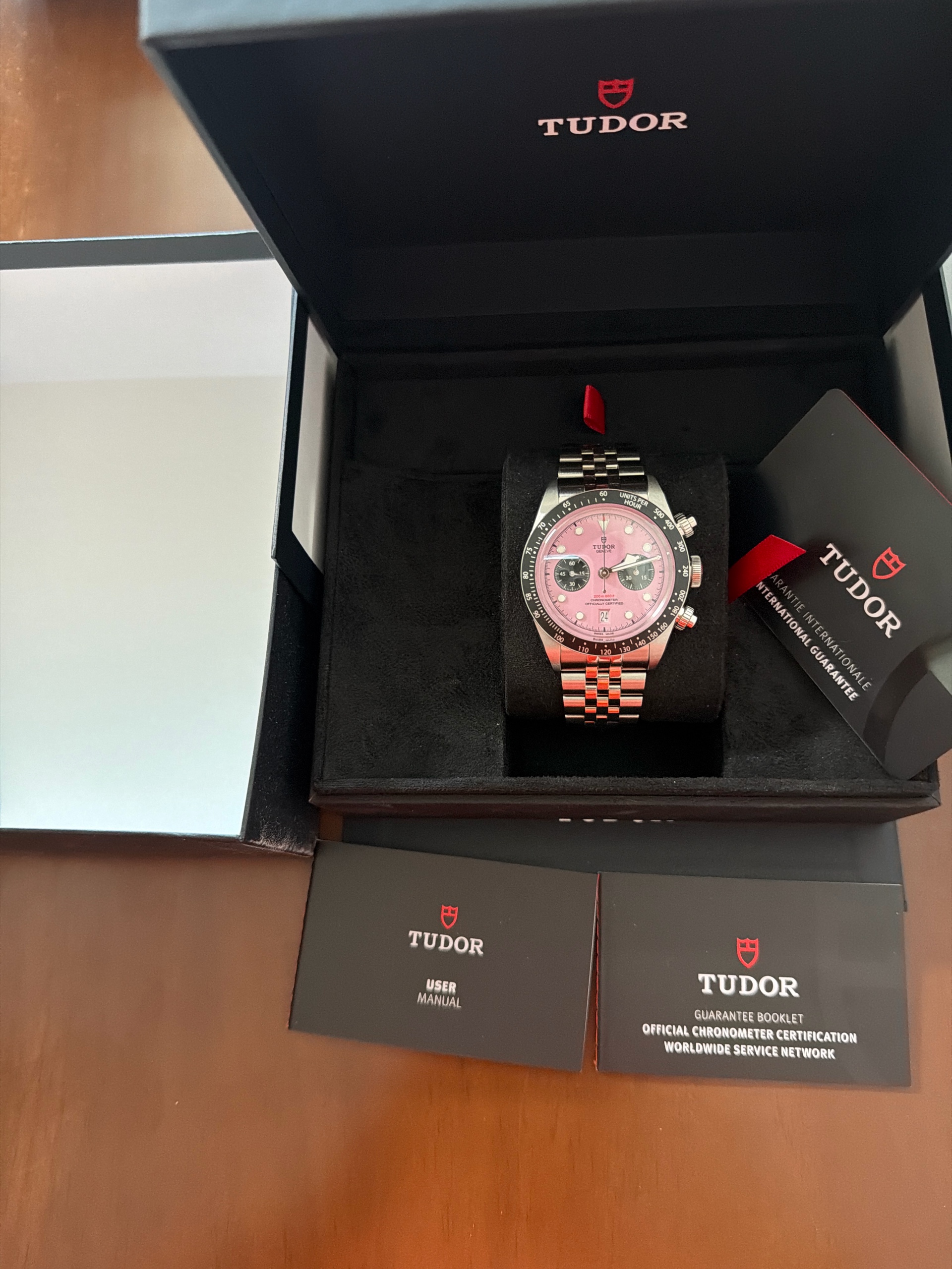M79360N-0019,Black Bay Chrono 79360N,Tudor Black Bay Chrono Chronograph Pink Steel,튜더 블랙 베이 핑크 크로노 크로노그래프 핑크 스틸 핑크 79360N,핑크,사파이어 크리스탈,41mm,셀프와인딩,Stainless steel,Folding clasp,Date,chronograph subdial,small seconds / applied hour markers,Black Bay Chrono,블랙 베이 크로노,Tudor,튜더,셀프 와인딩,스테인리스 스틸,Date, chronograph subdial, small seconds / applied hour markers