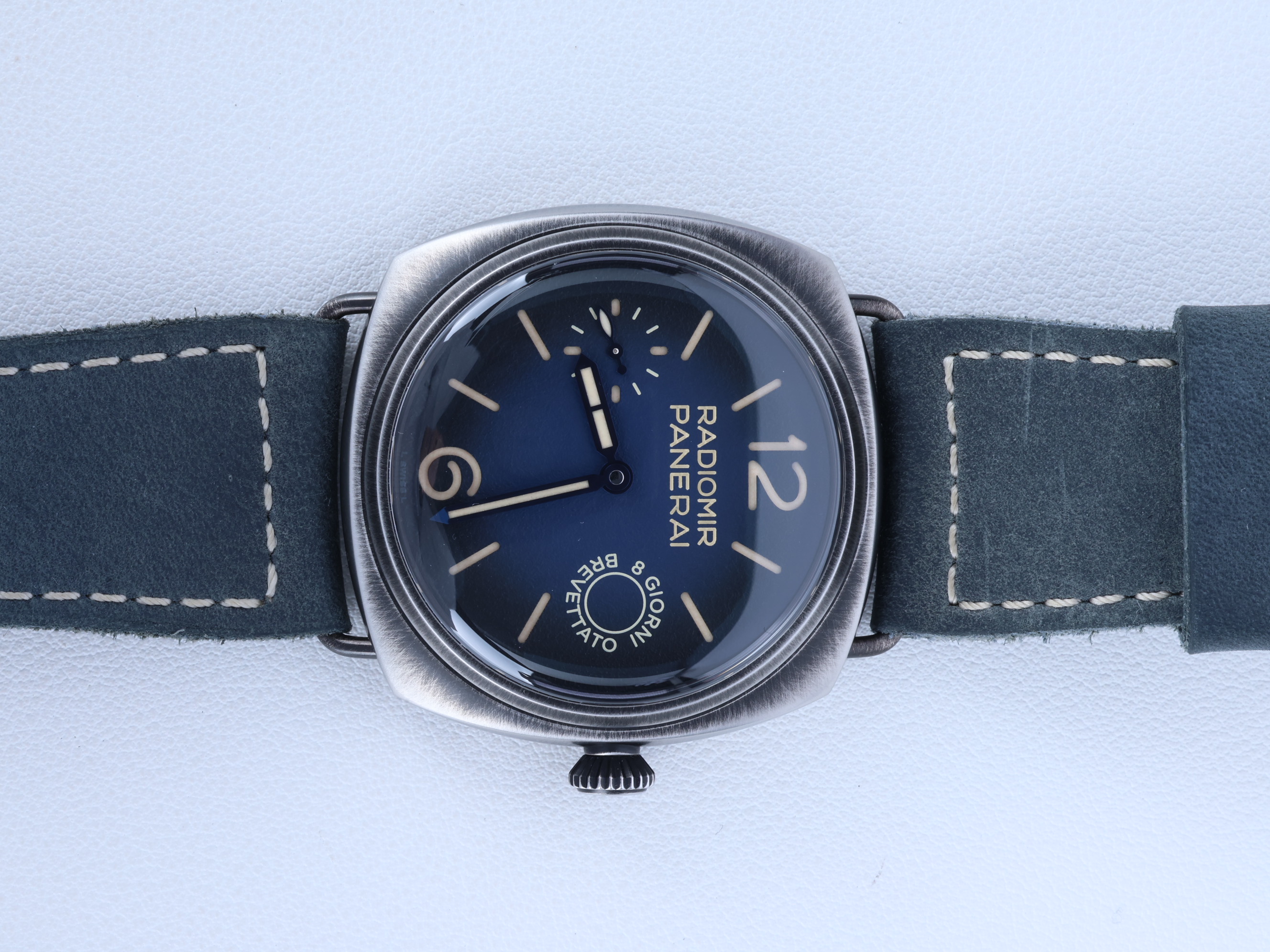 PAM01348,파네라이 라디오미르 오또 지오르니 PAM01348 블루 브루니토 esteel e스틸 시스루 씨스루 백 시스루백 투명 케이스백 블루 청판 스테인리스 스틸 PAM1348 PAM01348,블루,스테인리스 스틸,가죽,스트랩,45mm,핸드 와인딩,P.5000 칼리버,Switzerland,Stainless steel,Pin buckle,Small seconds / engraved arabic numerals & baton indices,Radiomir Otto Giorni,라디오미르 오또 지오르니,Radiomir,Panerai,파네라이