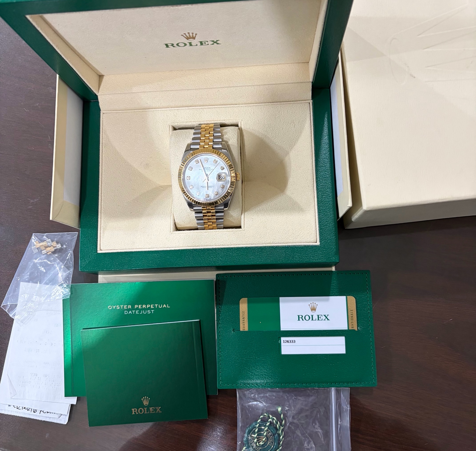 datejust41,126333,m126333-0018,화이트,진주자개 다이아몬드,스테인레스 스틸 + 옐로우 골드,쥬빌리 브레이슬릿,사파이어 크리스탈,41mm,데이트저스트,데이저스트,데이트,옐로우골드,옐골,롤레조,콤비,데잇저스트,데잇,예물시계 추천,다이아,다이아몬드,다이아몬드 세팅,쥬빌리,어버이날 선물,40대 추천,단종,Rolex,진주자개,스테인리스 스틸,옐로우 골드,스테인리스 스틸 + 옐로우 골드,Switzerland,Yellow gold,Folding clasp,Date / diamond-set indices,Hour + minute + seconds,Datejust 41,데이저스트 41,Datejust,롤렉스,진주자개, 다이아몬드 세팅,스테인리스 스틸, 옐로우 골드,남성,예물,웨딩