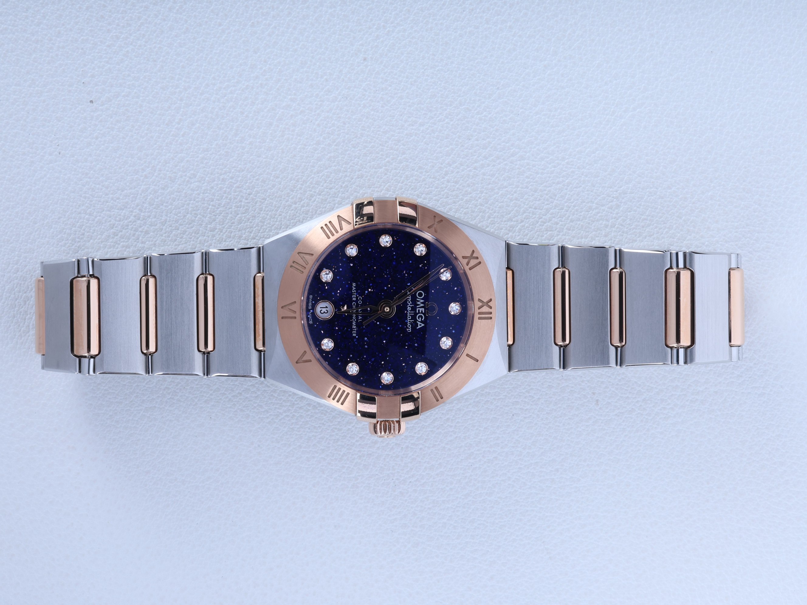 131.20.29.20.53.002,블루,어벤츄린,다이아몬드 세팅,스테인리스 스틸,세드나 골드,29mm,셀프 와인딩,8700,Switzerland,Sedna gold,Folding clasp,Date / diamond-set indices,Constellation,컨스텔레이션,Omega,오메가 컨스텔레이션 컨스틸레이션 131.20.29.20.53.002 블루 어벤추린 어벤츄린,오메가,스테인리스 스틸, 세드나 골드,Omega 8700