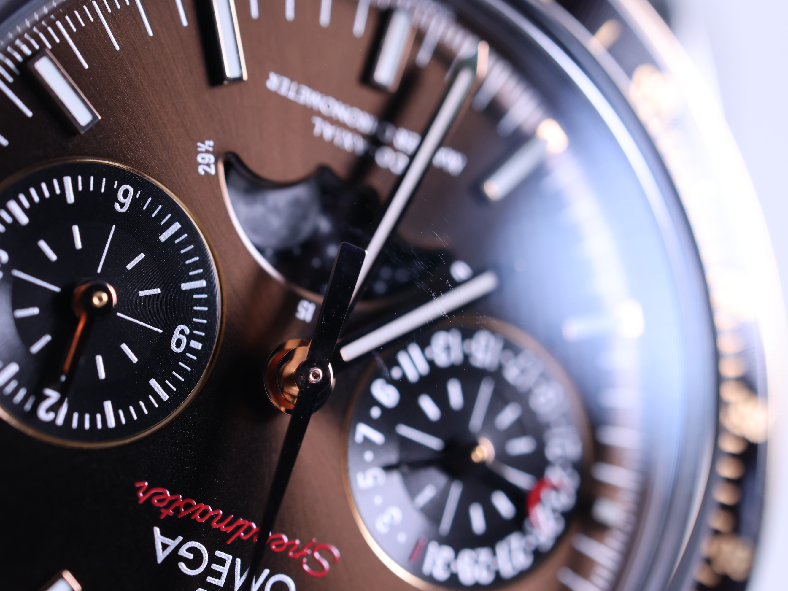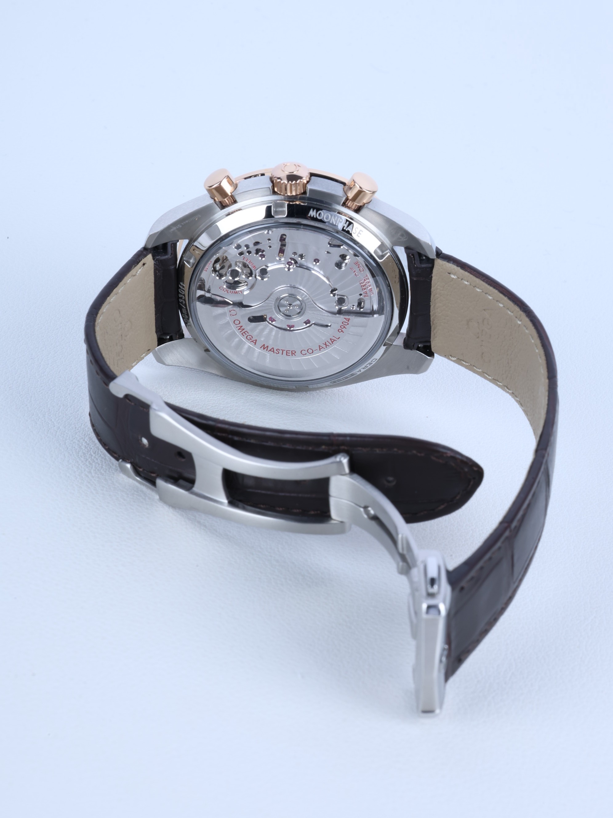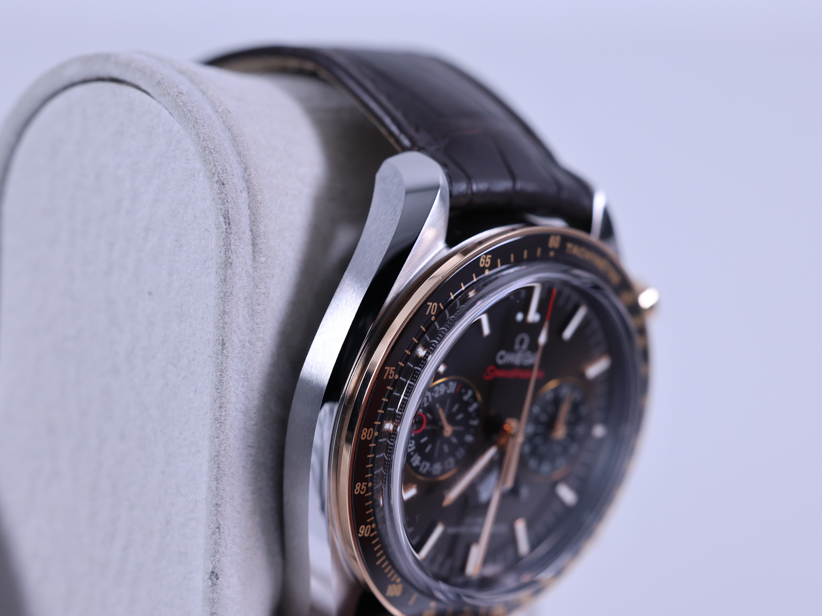 Omega Speedmaster Moonphase 304.23.44.52.13.001,Speedmaster Moonphase Brown,Speedmaster Brown Dial,오메가 스피드마스터 문페이즈 브라운,오메가 스피드마스터 문페이즈 44미리,오메가 스피드마스터 문페이즈 세라믹 베젤,브라운,타키미터,셀프와인딩,Speedmaster Moonphase,스피드마스터 문페이즈,Speedmaster,Omega,오메가,Switzerland,Rose gold,Deployant folding clasp,Date indicator with moonphase,chronograph subdial,small seconds / applied stick indices,Hour + minute + central chronograph + counter (2) + small seconds,스테인리스 스틸,셀프 와인딩,.브라운,바,디플로이언트,데이트,문페이즈,크로노그래프,투명 케이스백,21 mm,원형,레이싱,남성용,Date indicator with moonphase, chronograph subdial, small seconds / applied stick indices