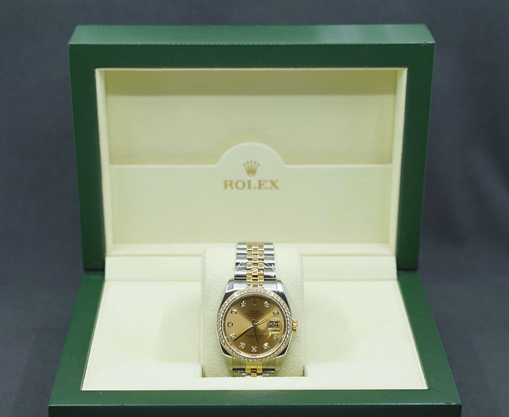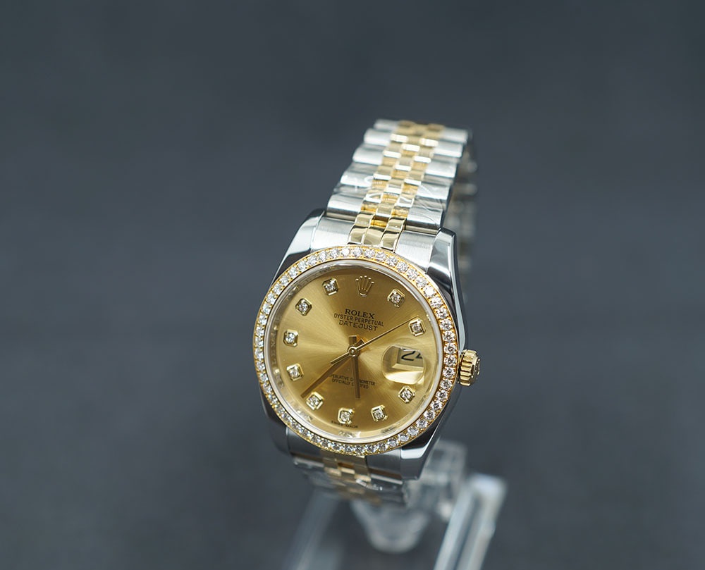 샴페인,다이아몬드 세팅,쥬빌리 브레이슬릿,사파이어 크리스탈,36mm,셀프와인딩,Cal. 3135,Datejust 36,데이트저스트 36,Datejust,Rolex,롤렉스,M116243-0005,Rolex Datejust 36 Yellow Gold Rolesor Two Tone Champagne Diamonds,Rolex Datejust Yellow Gold Champagne Diamonds,Rolex Datejust 36 Champagne Diamonds Jubilee,롤렉스 데이트저스트 36 옐로우 골드 투톤 롤레조 샴페인 다이아몬드,롤렉스 데이트저스트 36 샴페인 다이아몬드 옐로우 골드 쥬빌리,셀프 와인딩,Switzerland,Yellow gold,Hidden folding clasp,Date / diamond-set indices,Hour + minute + seconds