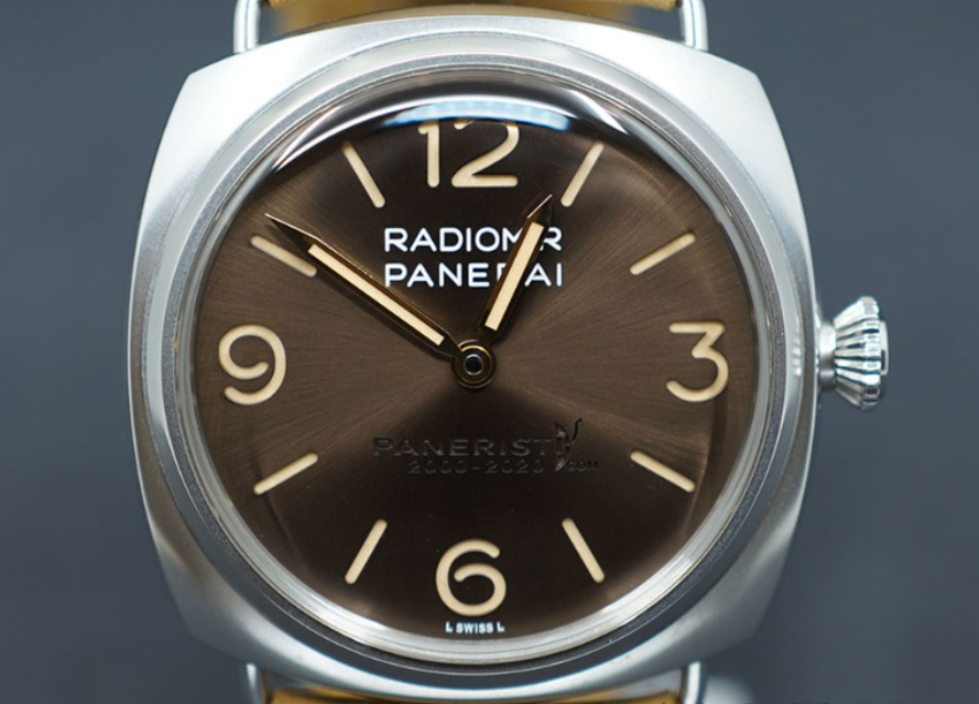 파네라이 라디오미르 벤티 파네리스티 20주년 리미티드 한정판 에디션 PAM02020 PAM2020 PAM 2020 45 스틸 브라운 스틸 수동 매뉴얼 핸드 와인딩,Panerai radimoir venti paneristi 20th anniversary PAM02020 PAM2020 PAM 2020 45 45mm steel brown steel 45 45mm manual hand wound winding,PAM02020,브라운,스테인리스 스틸,가죽,스트랩,45mm,핸드 와인딩,Cal. P.6000,Switzerland,Stainless steel,Pin buckle,Engraved arabic numerals & baton indices,Radiomir Venti,라디오미르 벤티,Radiomir,Panerai,파네라이