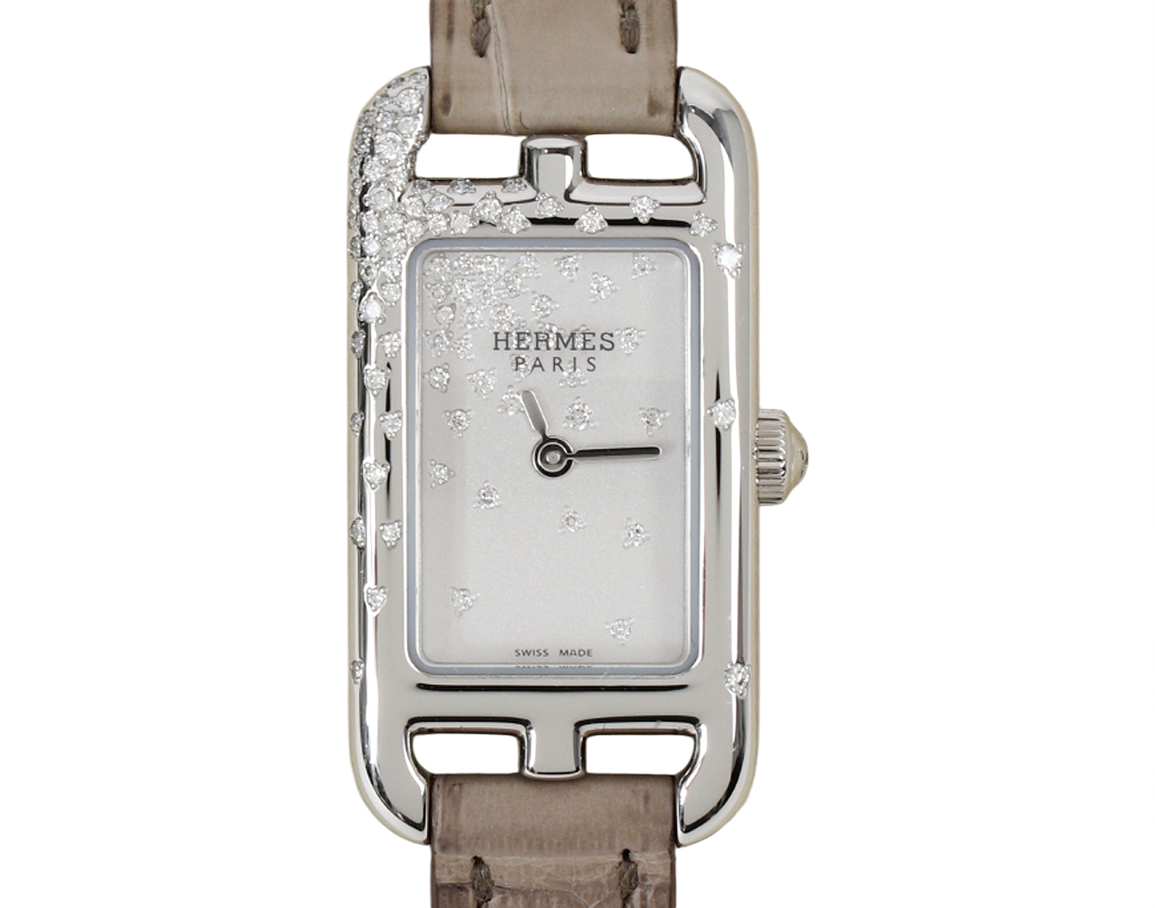 W045244WW00,엘메 에르메스 난투켓 난터켓 다이아 다이아몬드 스프링클링 세팅 도금 및 샌드 블라스팅 다이얼 W045244WW00,스테인리스 스틸,가죽,스트랩,다이아몬드 세팅,쿼츠,Switzerland,Stainless steel,Pin buckle,No indices,Nantucket,난투켓,Hermes,에르메스