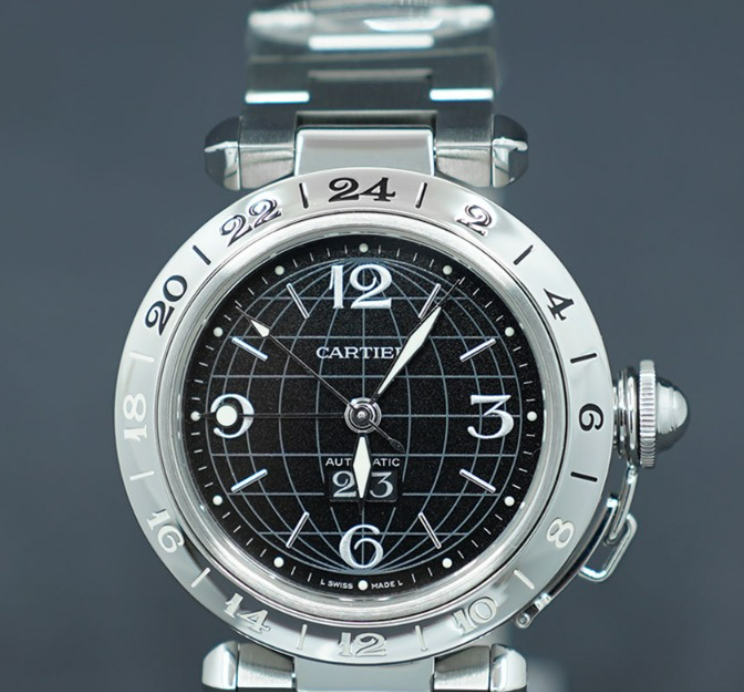 까르띠에 카르티에 파샤 C GMT 메리디안 GMT 35mm 35 스틸 블랙 스틸 오토매틱 셀프와인딩,Cartier pasha c gmt meridian gmt steel black steel automatic selfwinding,W31049M7,블랙,스테인리스 스틸,35mm,Cal. 048,Switzerland,Stainless steel,Folding clasp,Date,GMT / arabic numerals & baton indices,Pasha C GMT,파샤 C GMT,Pasha de Cartier,Cartier,까르띠에,셀프 와인딩,Date, GMT / arabic numerals & baton indices