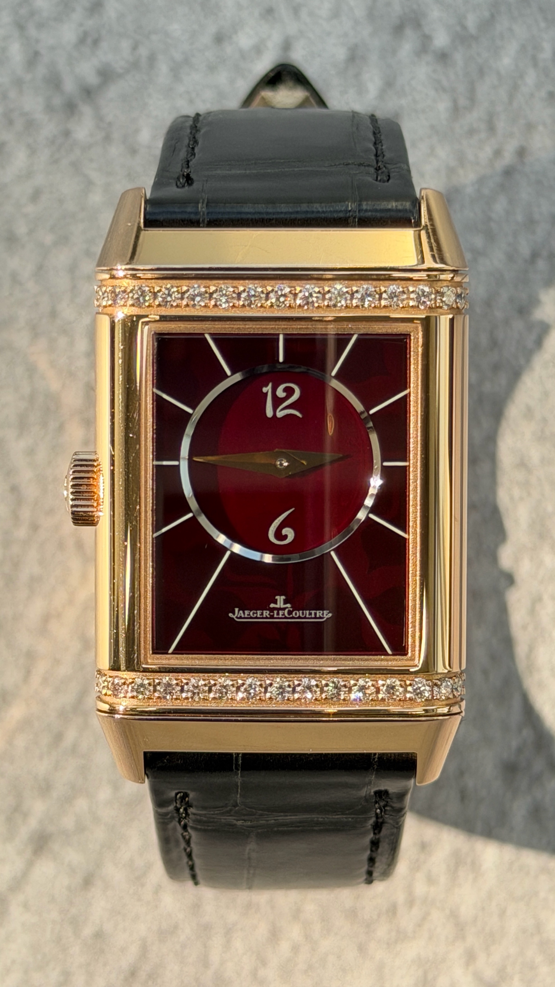 Q25824AA,로즈 골드,가죽,스트랩,핸드 와인딩,JLC Cal. 854b/2,Switzerland,Rose gold,Deployant folding buckle,Front: arabic numeral indices / Back: arabic numerals,Reverso Classic Duetto Christian Louboutin Ivy Red Edition,리베르소 클래식 듀에토 크리스찬 루부탱 아이비 레드 에디션,Reverso Classic,Jaeger-LeCoultre,예거 르쿨트르