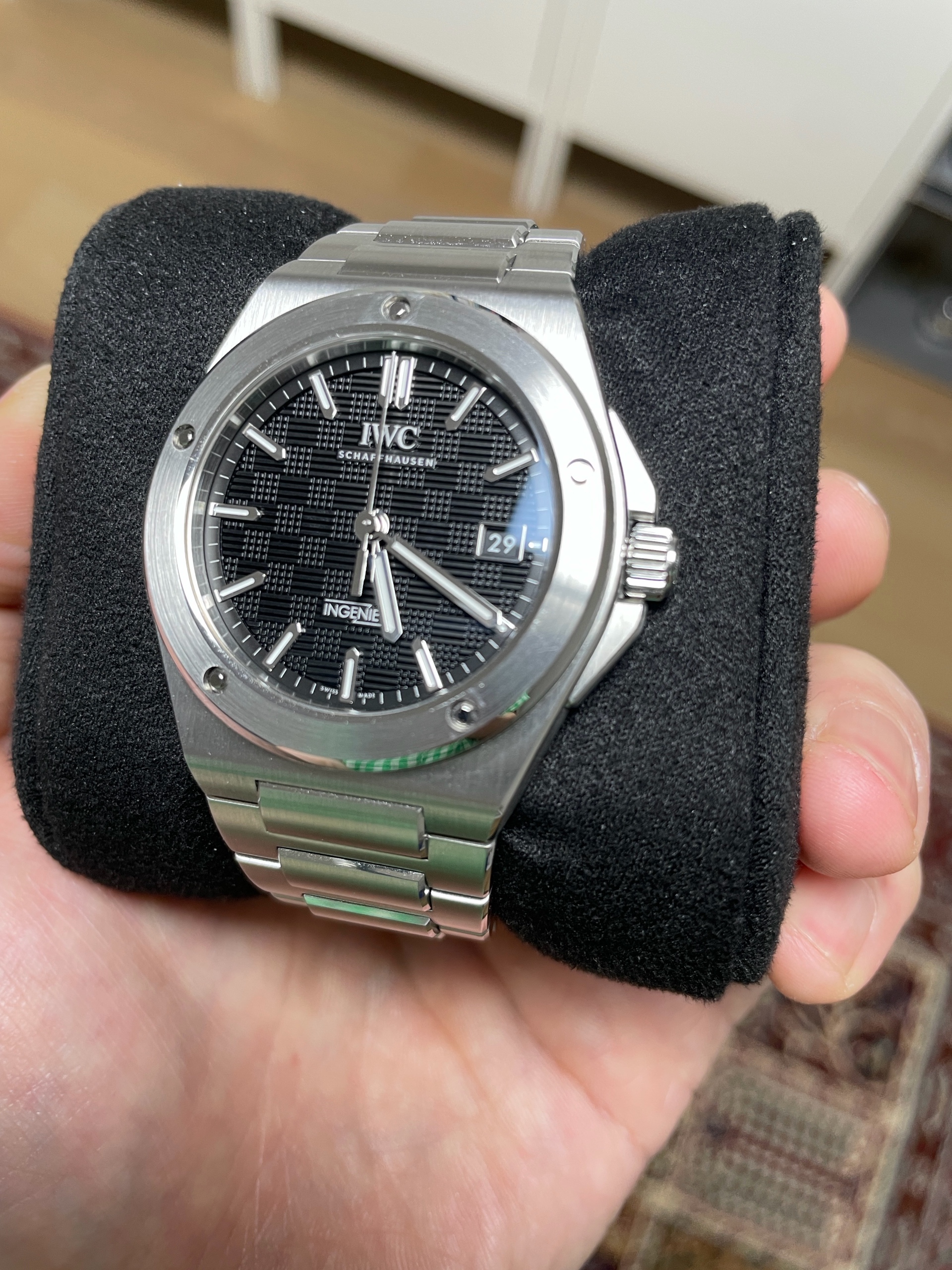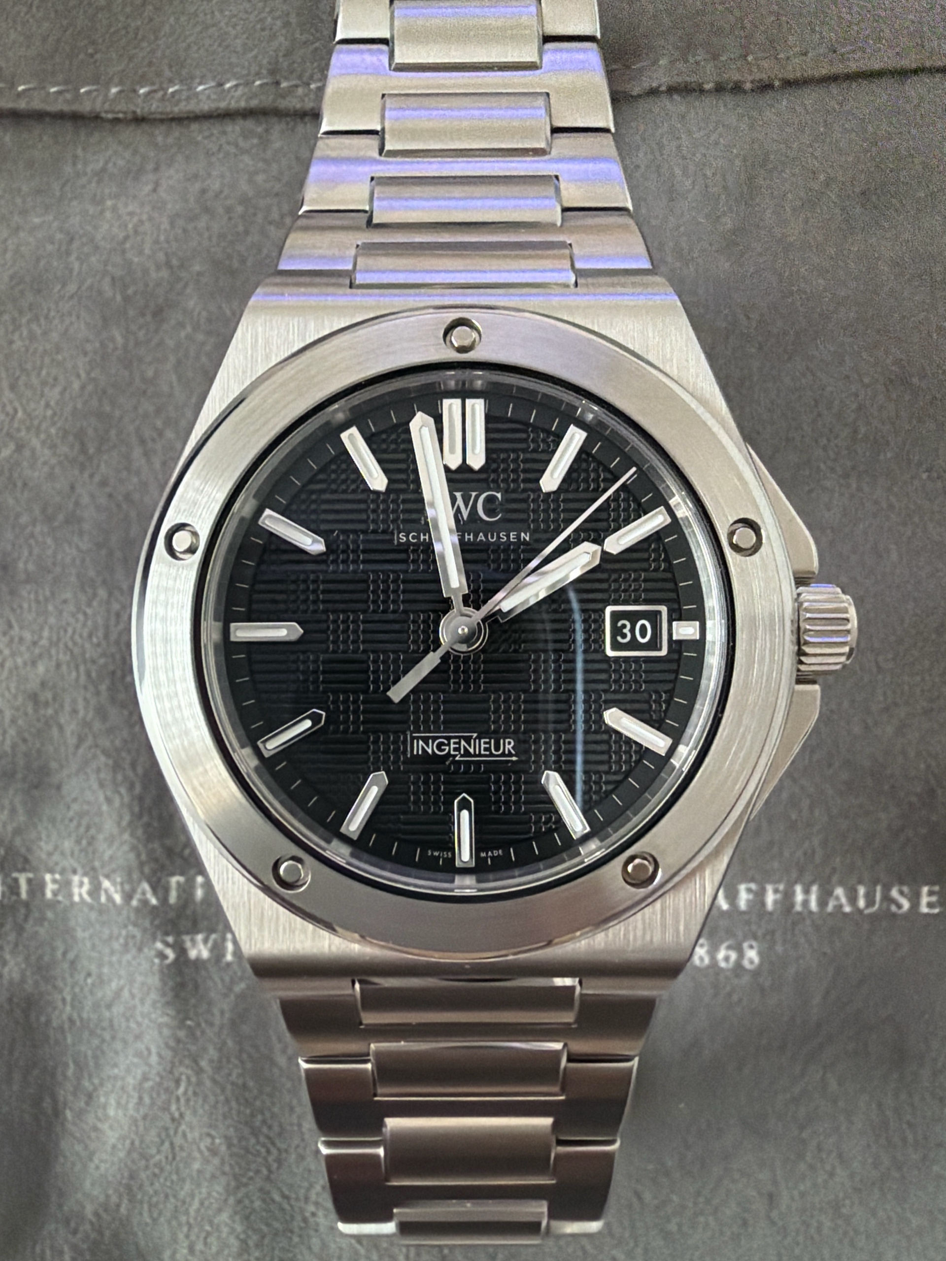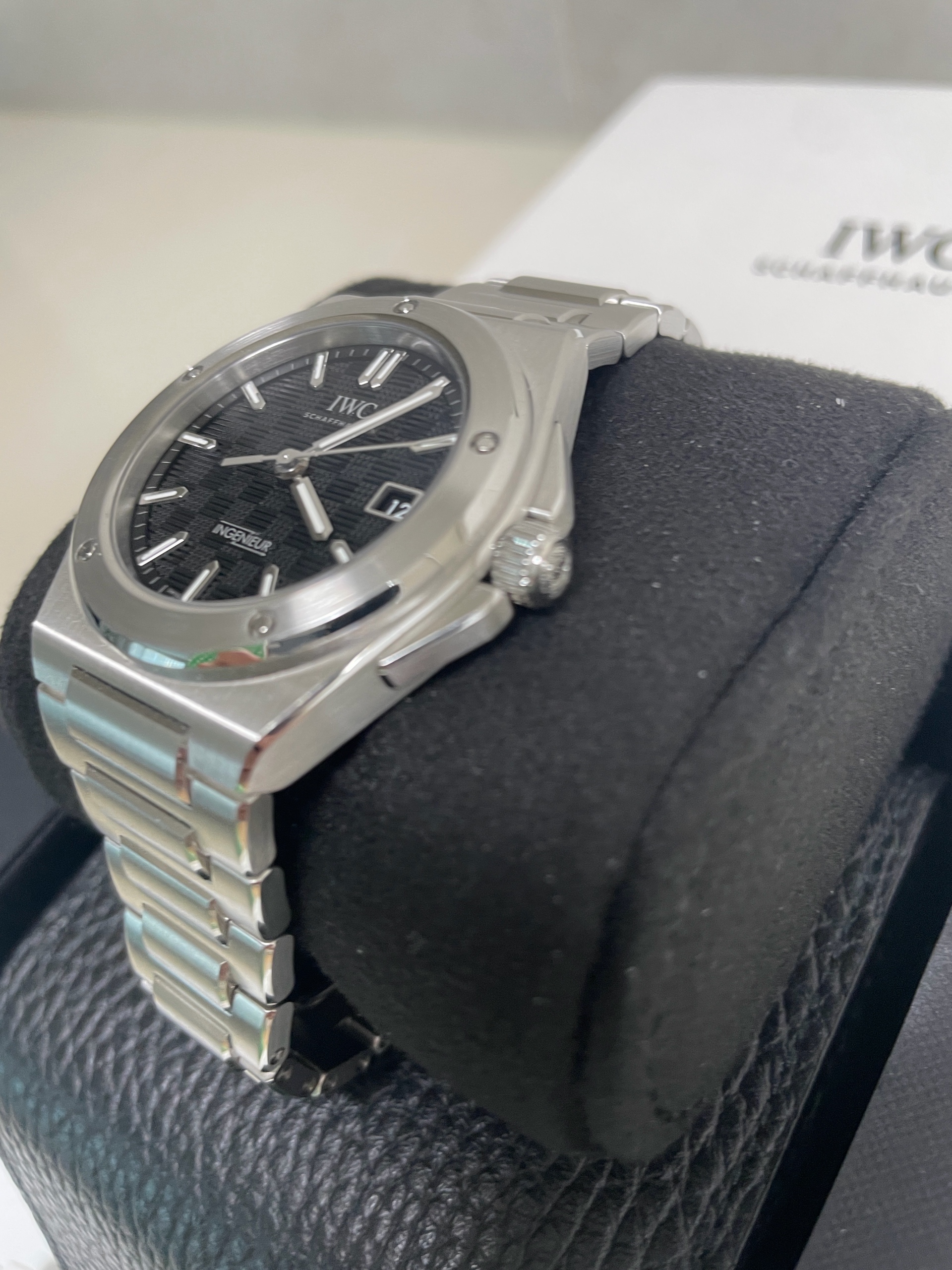 IWC Ingenieur IW328901,IWC IW328901,IWC 인제니어 IW328901,인제니어,IWC,아이더블유씨,아이 더블유 씨,IWC Ingenieur,IWC 인제니어,IWC 엔지니어,IWC 인지니어,젠타 디자인,젠타디자인,제랄드 젠타 디자인,일체형 브레이슬릿,일체형 시계,Integrated Bracelet,IWC 인제니어 블랙 다이얼,IWC 인제니어 검판,IWC 검판,IWC 블랙 다이얼,IWC 검정색 다이얼,IWC 인제니어 검정색 다이얼,블랙,체커보드 패턴 스탬핑,40mm,스테인리스 스틸,셀프와인딩,Ingenieur Automatic 40,인제니어 오토매틱 40,Ingenieur,100m,Switzerland,Stainless steel,Butterfly clasp,Date / applied obelisk indices,Hour + minute + seconds,셀프 와인딩,.블랙,바,패턴,폴딩 클라스프,데이트,14mm,원형,스포츠,남성용