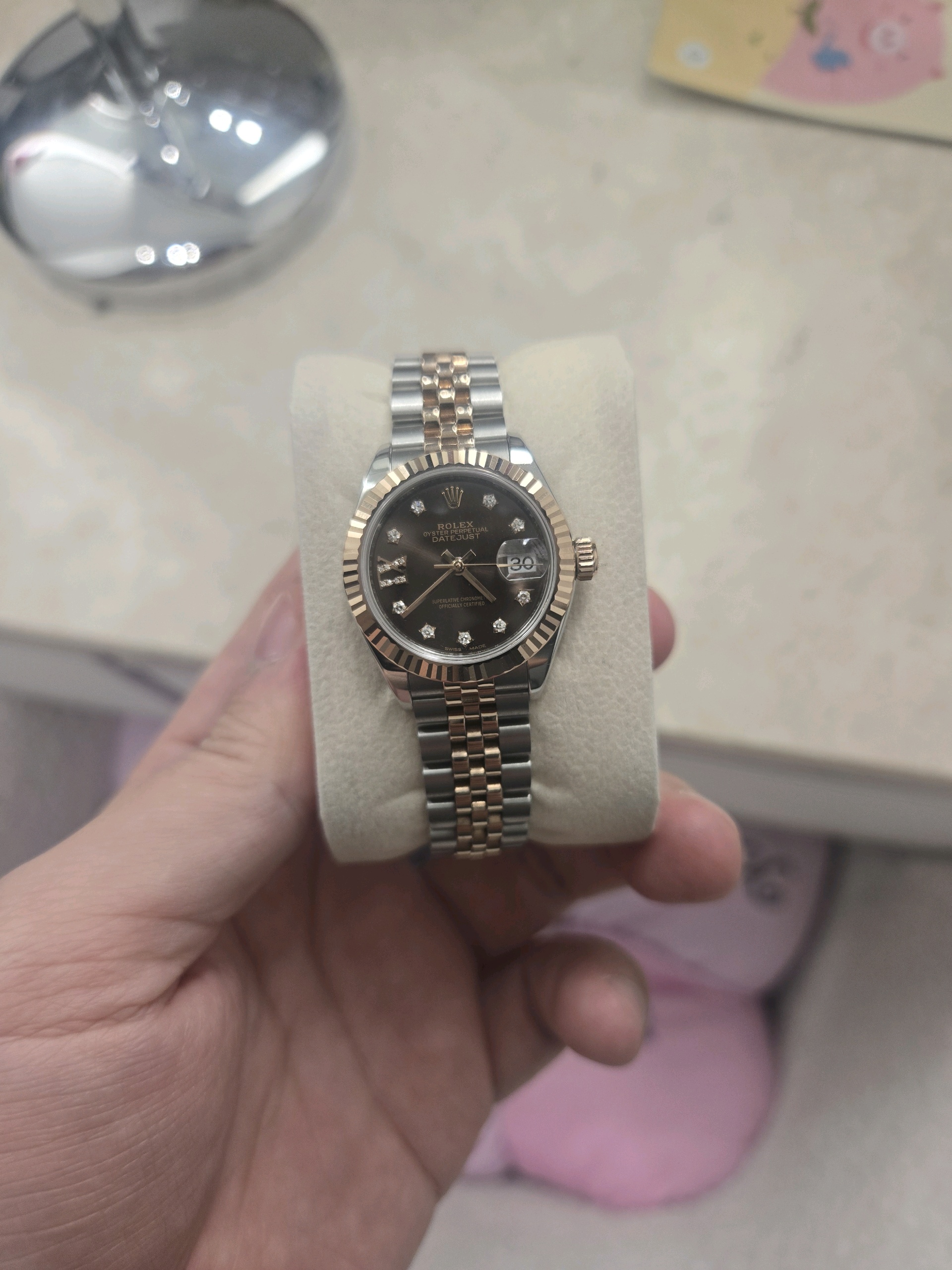 lady-datejust28,279171,m279171-0003,초콜렛,다이아몬드,스테인레스 스틸 + 에버로즈 골드,롤렉스 로렉스 레이디 데이트저스트 데이저스트 28 279171 별다이아,쥬빌리 브레이슬릿,사파이어 크리스탈,28mm,데이트저스트,데이저스트,레이디,데이트,에버로즈골드,로즈골드,로골,롤레조,콤비,데잇저스트,데잇,여자시계,여자시계추천,예물시계추천,다이아,다이아몬드 세팅,쥬빌리,어버이날 선물,로즈데이,Rolex,스테인리스 스틸,에버로즈 골드,스테인리스 스틸 + 에버로즈 골드,Switzerland,Rose gold,Hidden folding clasp,Date / diamond-set indices,Hour + minute + seconds,Lady-Datejust 28,레이디 데이저스트 28,Lady-Datejust,롤렉스,Everose gold,여성,예물,기념일,웨딩,.브라운,보석 세팅,폴딩 클라스프,약 13mm,원형,클래식,여성용,스테인리스 스틸, 에버로즈 골드