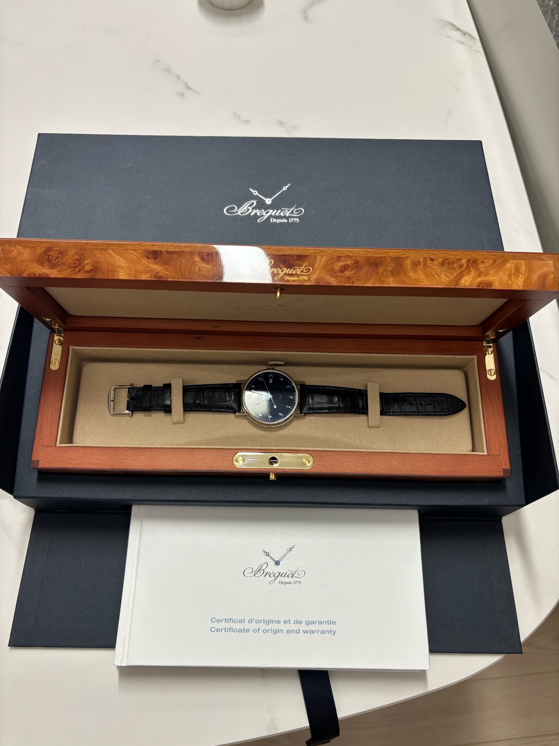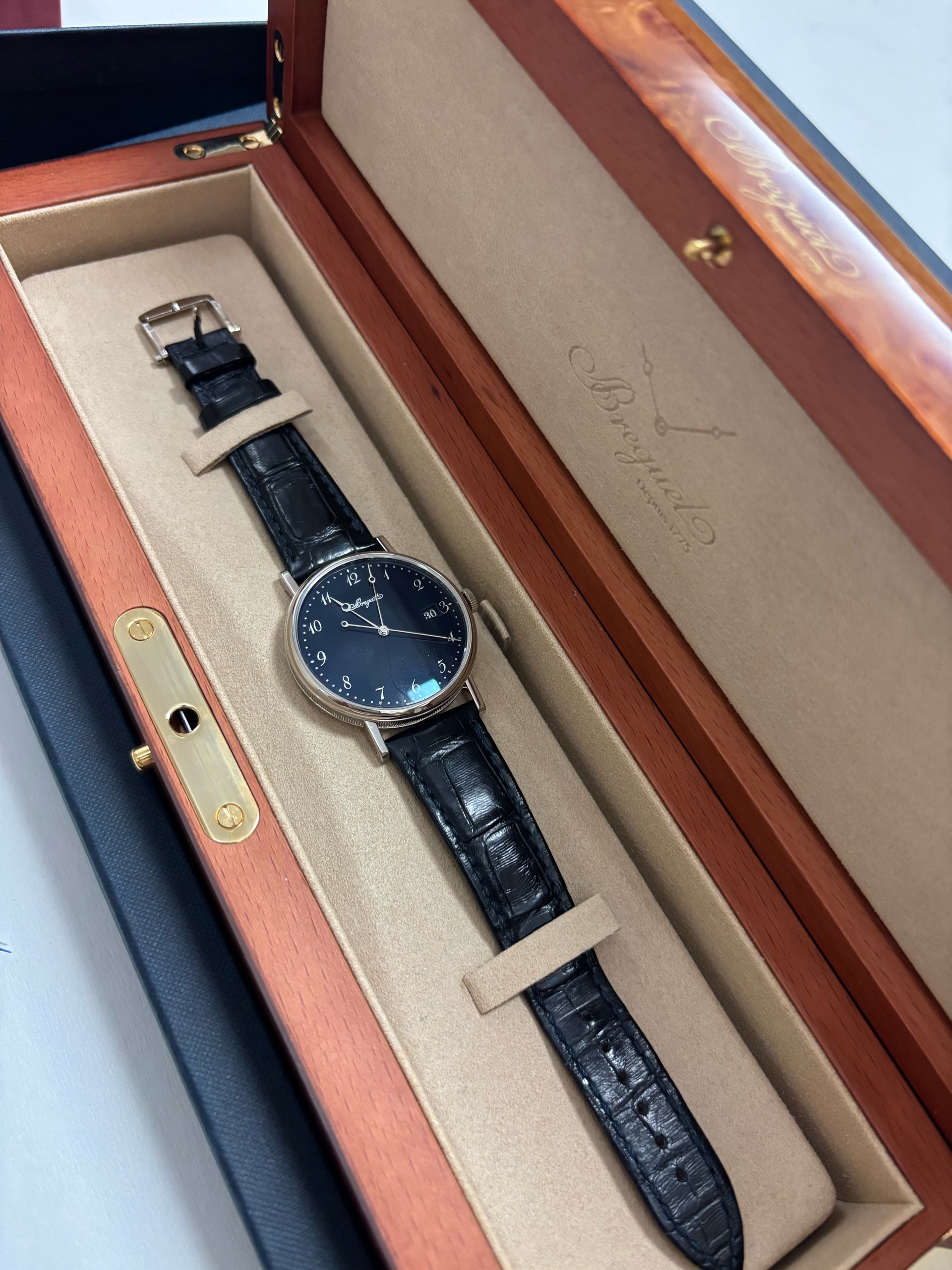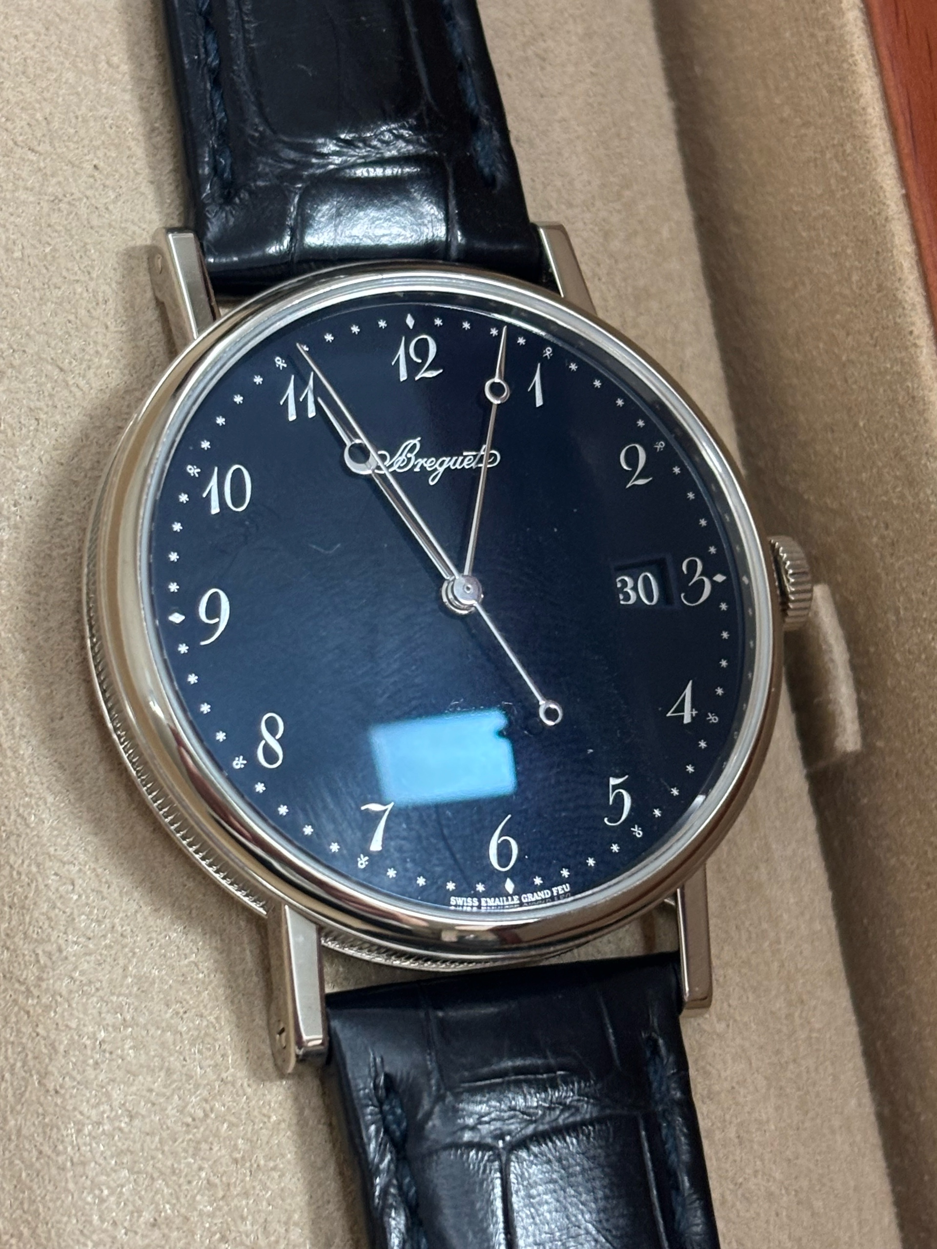 5177BB/2Y/9V6,Breguet Classique,Breguet Classic,브레게 클래식,브레게 클래식 5177,브래게 클래식 검판,브레게 클래식 화이트골드,브레게 클래식 화이트 골드,브레게 클래식 화골,블루,가죽 스트랩,38mm,셀프와인딩,Classique 5177,클래식 5177,Classique,Breguet,브레게,Switzerland,White gold,Pin buckle,Date / Breguet numeral indices,Hour + minute + seconds,셀프 와인딩,클래식