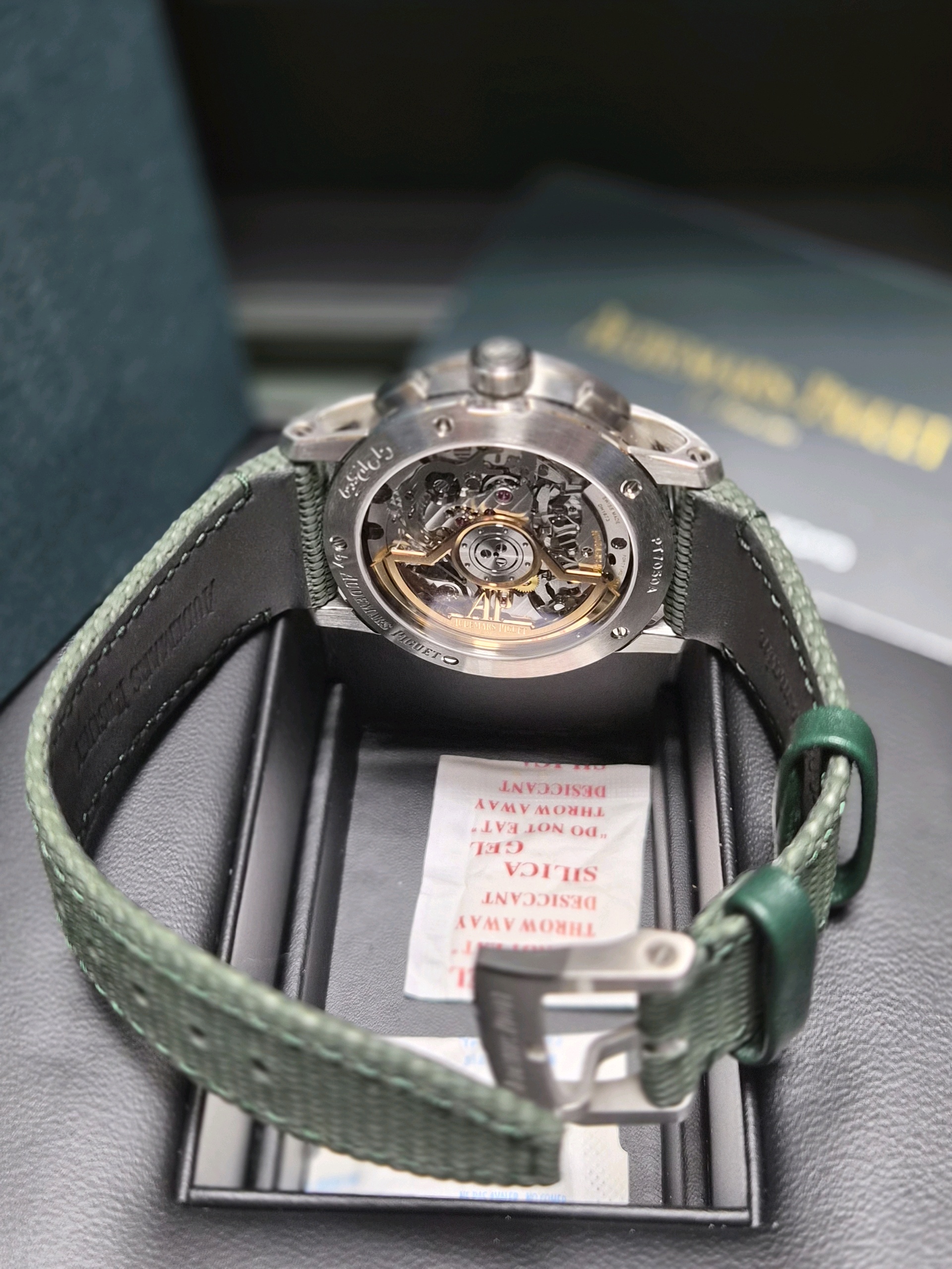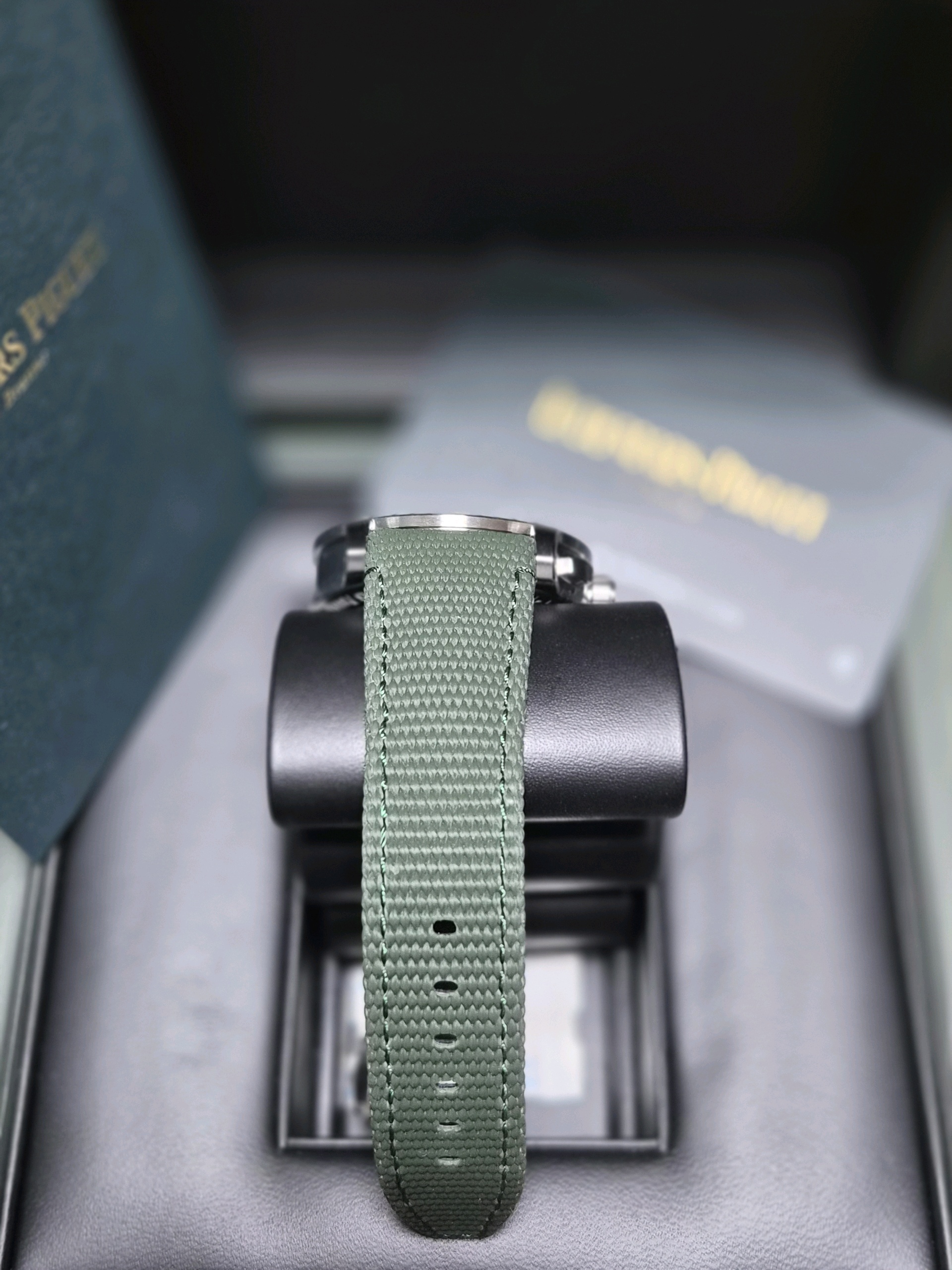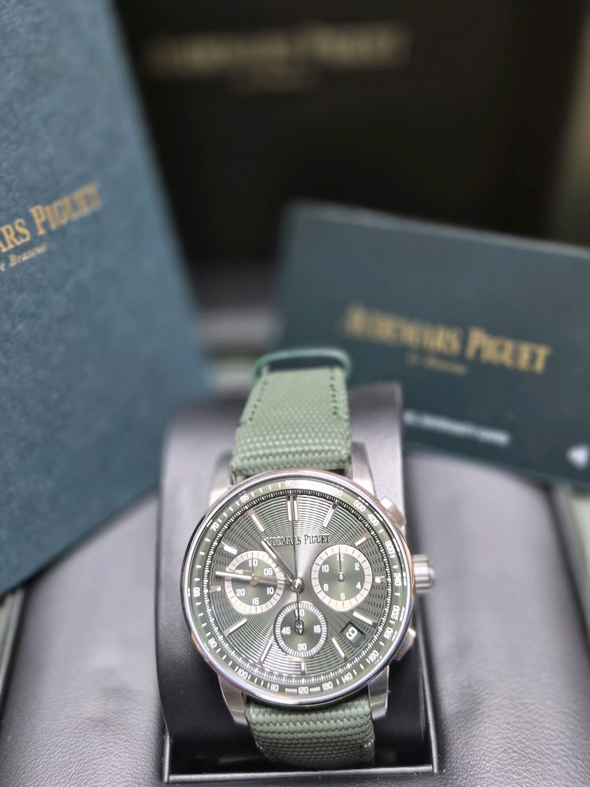 AP Audemars Piguet Code 11.59 Chronograph 26393ST.OO.A056KB.01 Green Steel 26393ST,AP 오데마 피게 오데마피게 코드 11.59 코드11.59 스틸 크로노그래프 그린 스틸 크로노그래프 26393ST,Code 11.59 Chronograph,코드 11.59 크로노그래프,Code 11.59,Audemars Piguet,오데마 피게,그린,러버 코팅 패브릭 스트랩,사파이어 크리스탈,41mm,스테인리스 스틸,이너 타키미터,셀프와인딩,Stainless steel,Pin buckle,Date,chronograph subdials,small seconds / applied indices,셀프 와인딩,small seconds / applied hour markers,러버 코팅 스트랩,Date, chronograph subdials, small seconds / applied hour markers,.그린,바,핀 버클,크로노그래프, 데이트, 투명 케이스백,원형,드레스, 클래식