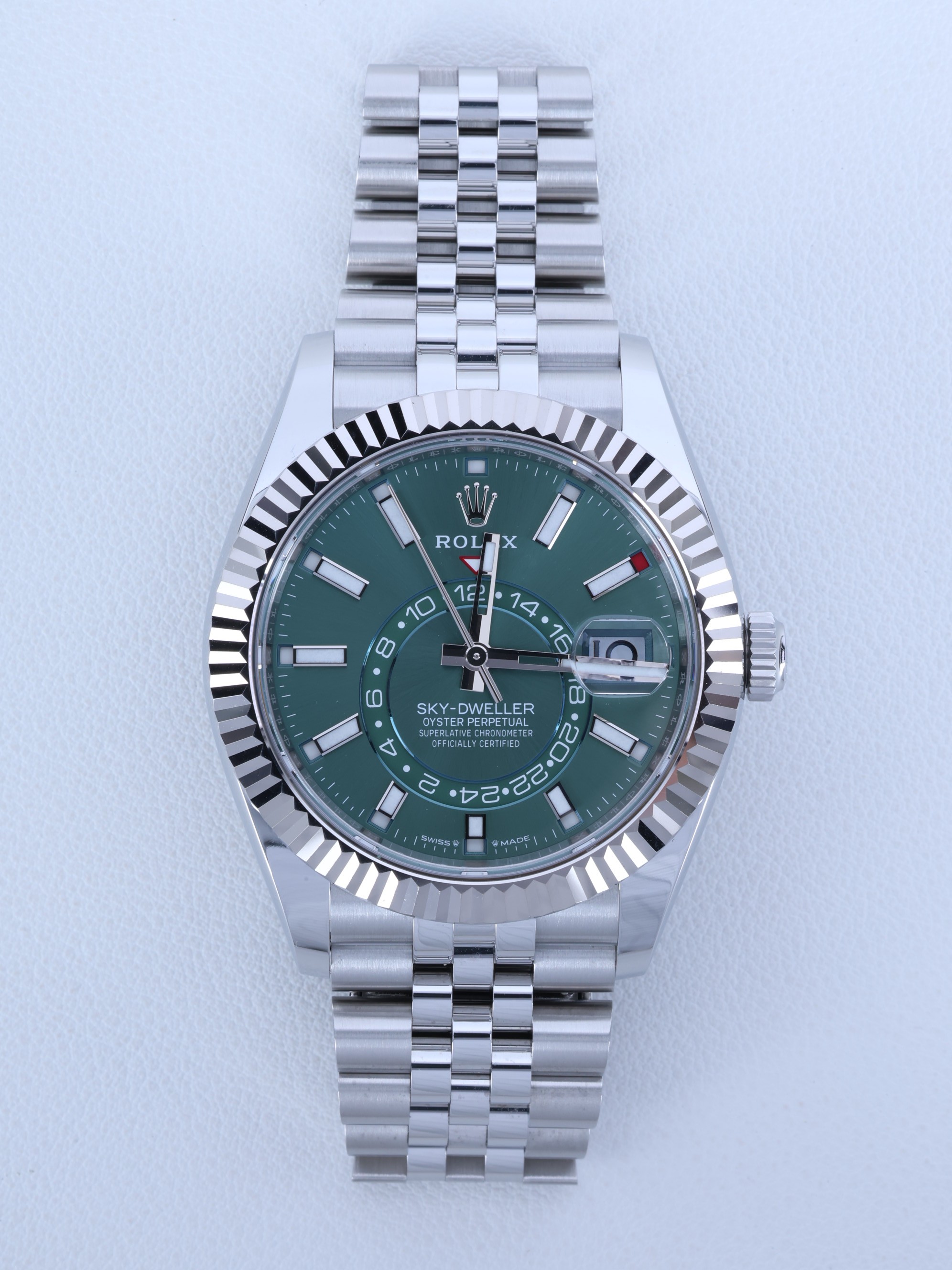 Sky-Dweller,M336934-0002,336934,민트그린,스테인레스스틸+화이트골드,쥬빌리브레이슬릿,사파이어크리스탈,42mm,Rolex,스카이 드웰러,롤렉스 스카이드웰러,롤렉스 스카이 드웰러,스드,롤렉스 스드,민트 그린,스테인레스 스틸,화이트 골드,쥬빌리 브레이슬릿,사파이어 크리스탈,스카이드웰러,롤렉스,스테인리스 스틸,Switzerland,Stainless steel,Folding clasp,Date,24-Hour subdial,calendar / baton indices,Hour + minute + seconds,남성,예물,웨딩,.그린,바,폴딩 클라스프,데이트,GMT,애뉴얼 캘린더,약 21mm,원형,파일럿,남성용,Date, 24-Hour subdial, calendar / baton indices