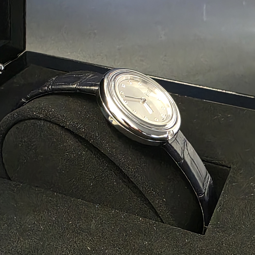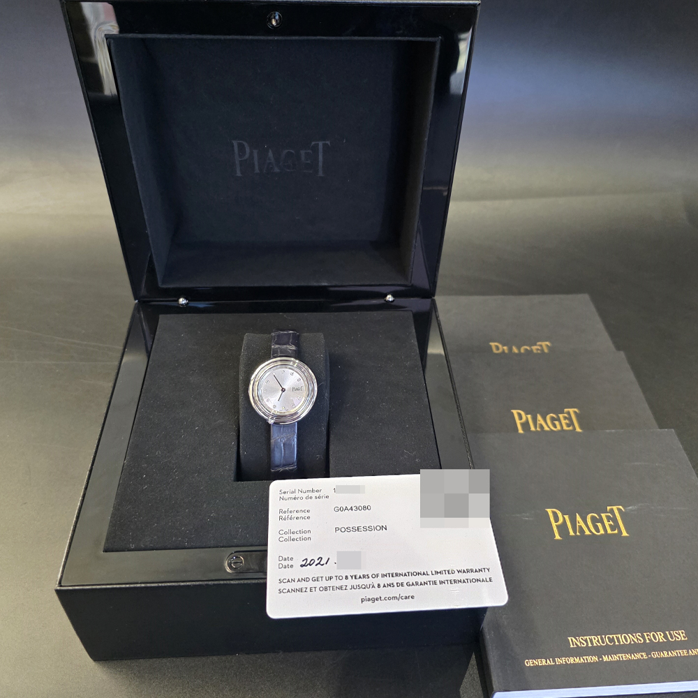 Posession,포제션,Piaget,피아제,Piaget Posession G0A43080,피아제 포제션 화이트 골드 29미리,피아제 포제션 화골 29미리,피아제 포제션 블루 스트랩,피아제 포제션 29미리 블루 스트랩,피아제 포제션 화이트 골드 블루 스트랩,피아제 포제션 화골 블루 스트랩,실버,가죽 스트랩,29mm,회전형 베젤,쿼츠,회전 베젤,Pin buckle,Diamond-set indices,Hour + minute,Possession,다이아몬드 세팅,화이트 골드,스트랩,다이아몬드 세팅, 회전 베젤