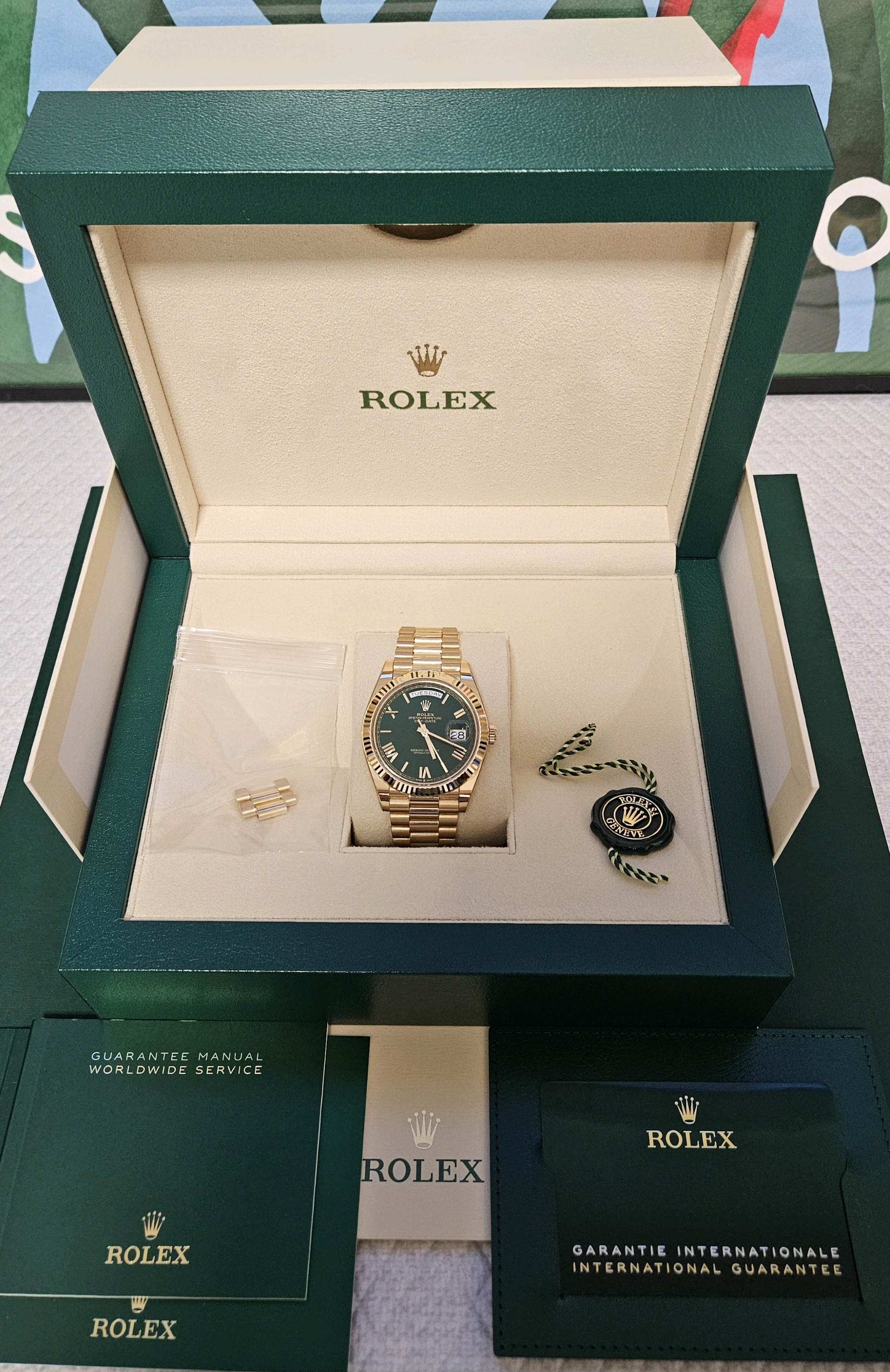 day-date40,228238,m228238-0061,그린,로만,옐로우 골드,프레지던트 브레이슬릿,사파이어 크리스탈,40mm,데이데이트,데데,데이트,옐로우골드,옐골,금통,금장,어버이날 선물,50대 추천,단종,green,Rolex,Yellow gold,Hidden folding clasp,Day,date / roman numeral indices,Day-Date 40,데이데이트 40,Day-Date,롤렉스,Day, date / roman numeral indices,.그린,로만,폴딩 클라스프,데이-데이트,약 20mm,원형,클래식,남성용