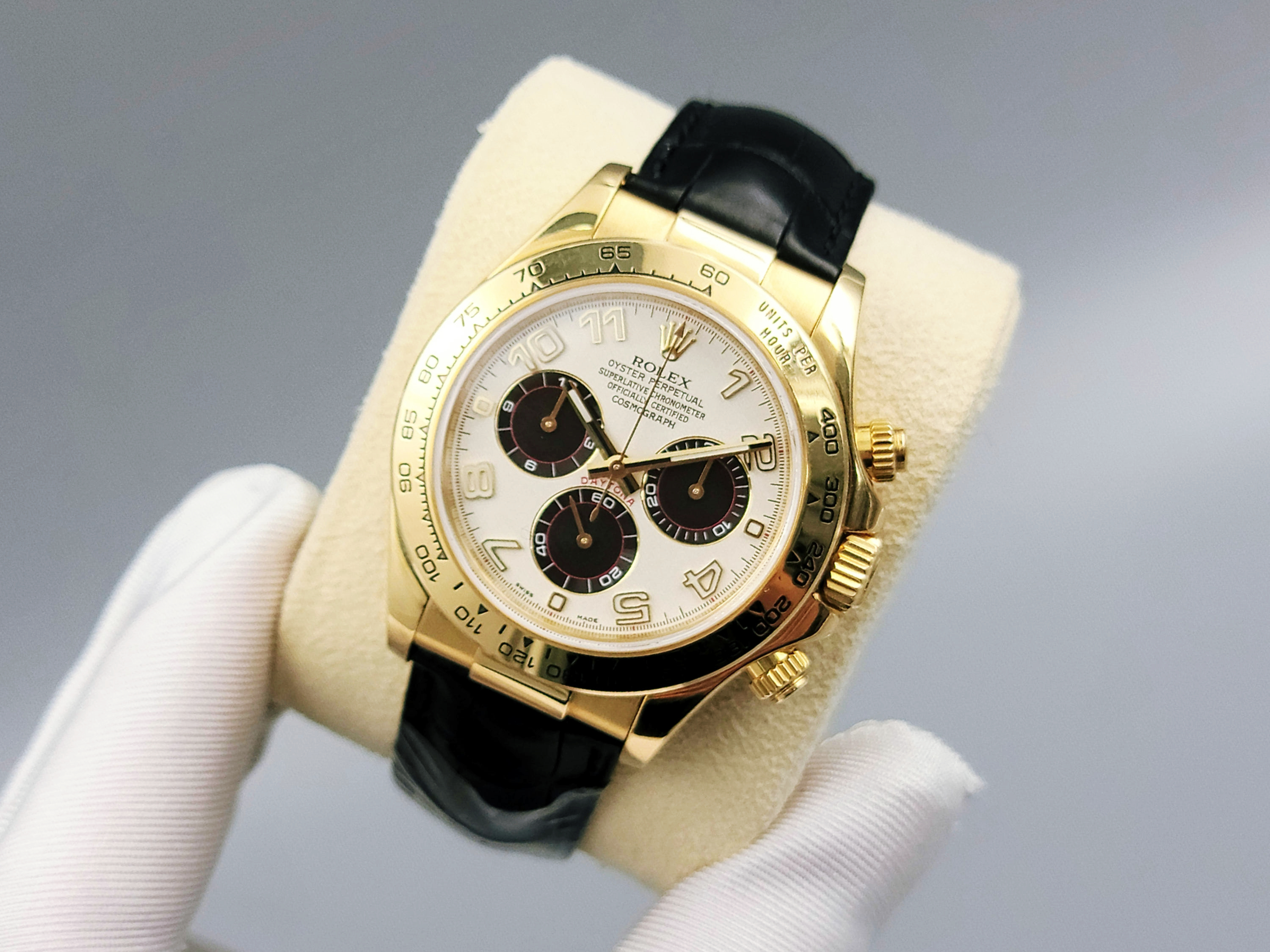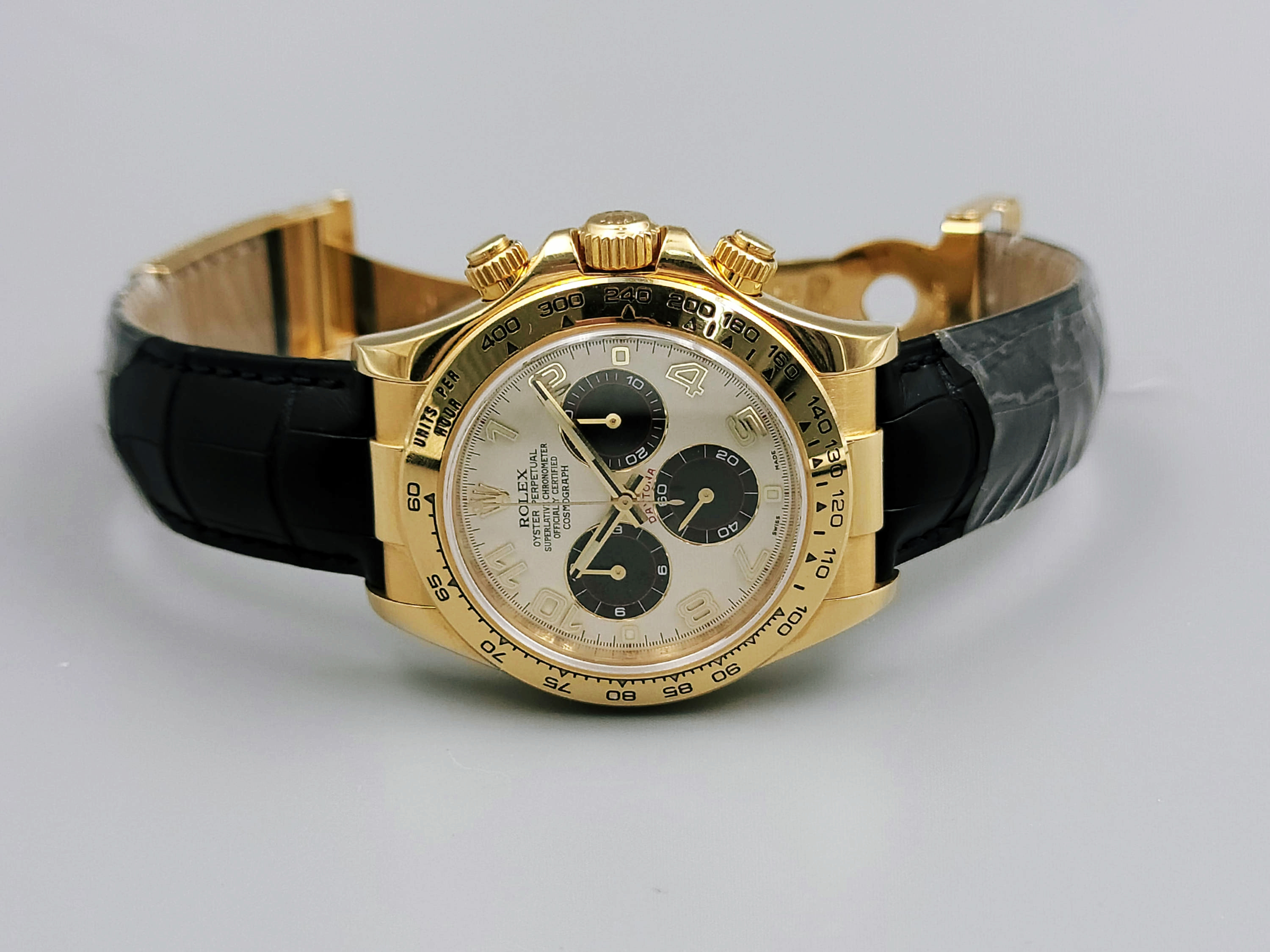 [중고] 롤렉스 데이토나 옐로우골드 가죽 스트랩 금장 116518