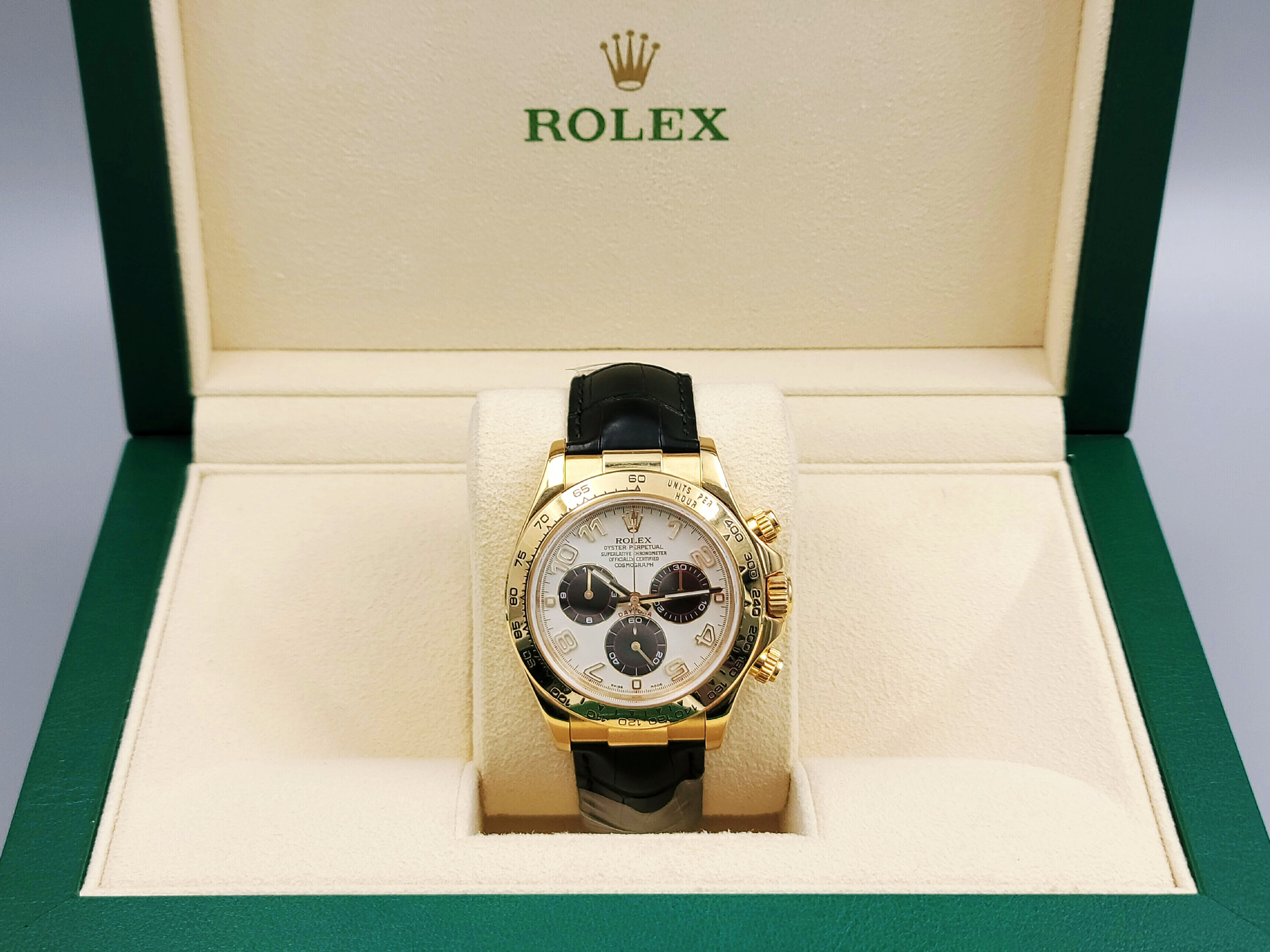 116518-WHARABLEATH2,롤렉스 로렉스 데이토나 116518 옐로우 골드 옐골 가죽 스트랩 화이트 흰판 아랍 아라빅,Daytoan,데이토나,Cosmograph Daytona,Rolex,롤렉스 크로노 크로노그래프,가죽,스트랩,타키미터,롤렉스,셀프 와인딩,Cal. 4130,Yellow gold,Folding clasp,Chronograph subdials,small seconds / applied hour markers,Daytona,Chronograph subdials, small seconds / applied hour markers