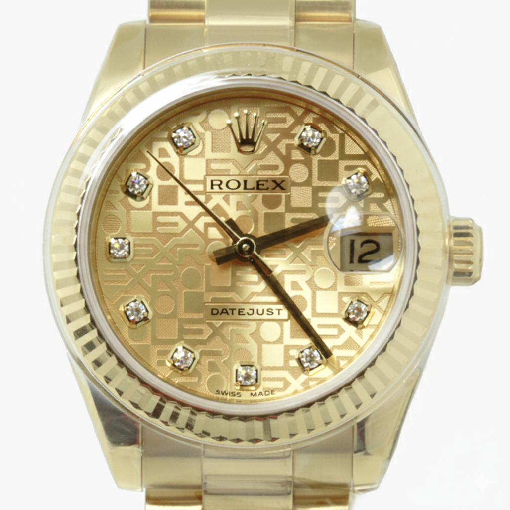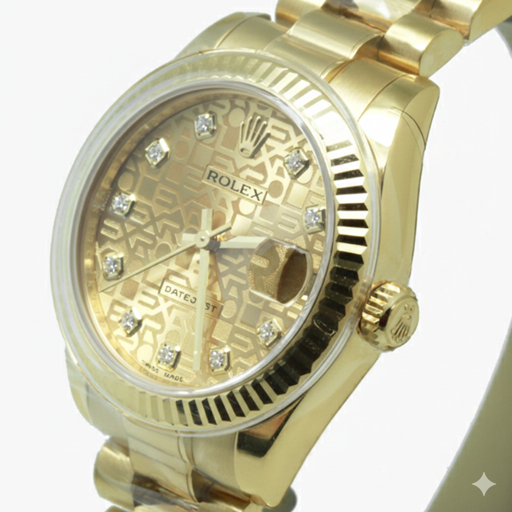 M178278-0021,Rolex Datejust 31 yellow gold presidential 178278 yellow gold champagne anniversary jubilee motif diamonds,롤렉스 로렉스 데이저스트 데이트저스트 31 178278 옐로우 골드 금통 통금 프레지던트 178278 샴페인 컴퓨터판 쥬빌리 모티프 다이아 다이아몬드 프레지던트,Datejust,Rolex,롤렉스,다이아몬드 세팅,셀프 와인딩,프레지던트 브레이슬릿,31mm,쥬빌리 모티프,Yellow gold,Hidden folding clasp,Date / diamond-set indices,Datejust 31,데이트저스트 31