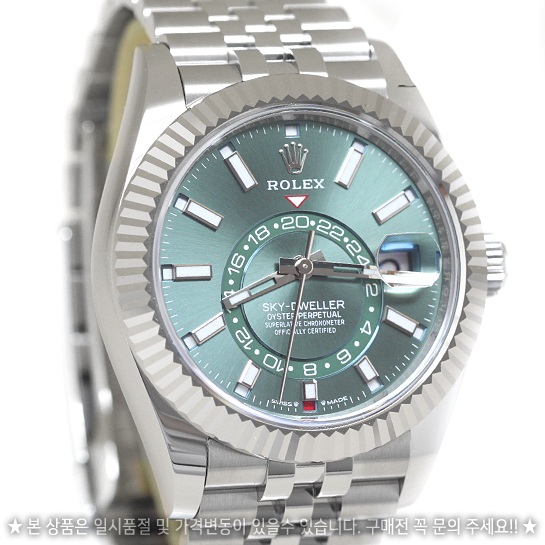 Sky-Dweller,M336934-0002,336934,민트그린,스테인레스스틸+화이트골드,쥬빌리브레이슬릿,사파이어크리스탈,42mm,Rolex,스카이 드웰러,롤렉스 스카이드웰러,롤렉스 스카이 드웰러,스드,롤렉스 스드,민트 그린,스테인레스 스틸,화이트 골드,쥬빌리 브레이슬릿,사파이어 크리스탈,스카이드웰러,롤렉스,스테인리스 스틸,Switzerland,Stainless steel,Folding clasp,Date,24-Hour subdial,calendar / baton indices,Hour + minute + seconds,남성,예물,웨딩,.그린,바,폴딩 클라스프,데이트,GMT,애뉴얼 캘린더,약 21mm,원형,파일럿,남성용,Date, 24-Hour subdial, calendar / baton indices