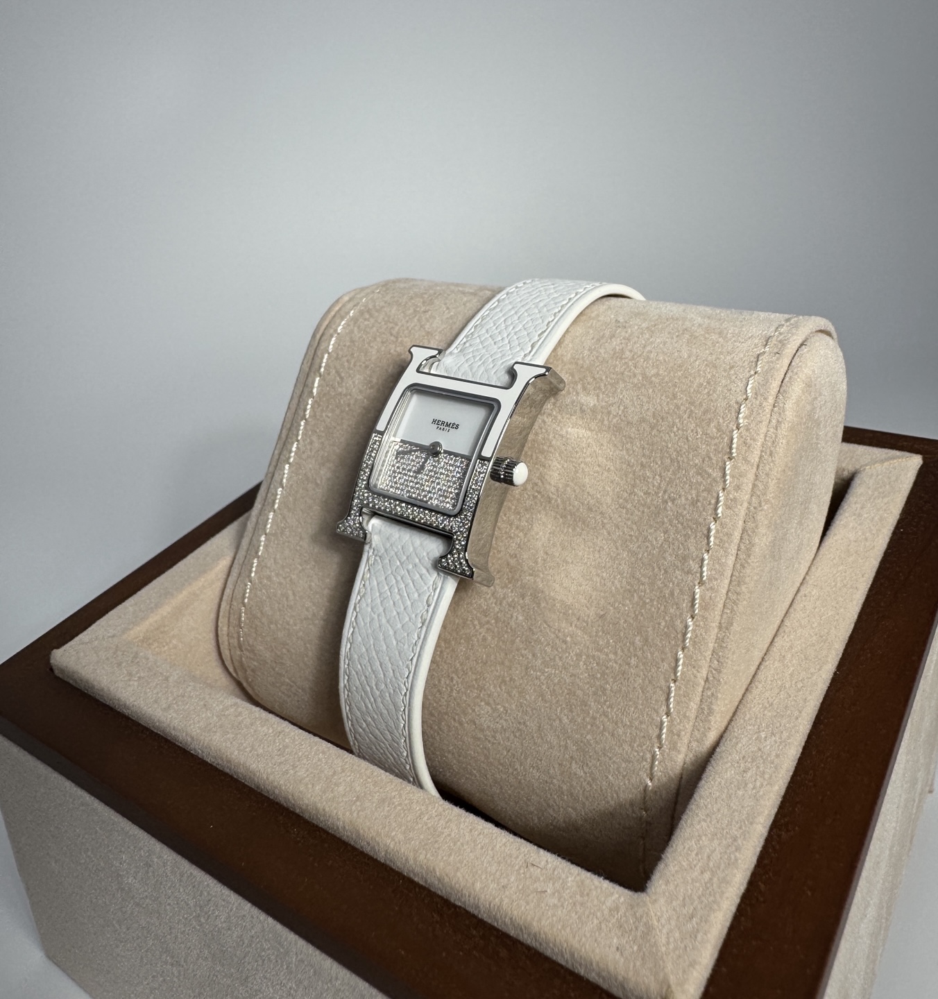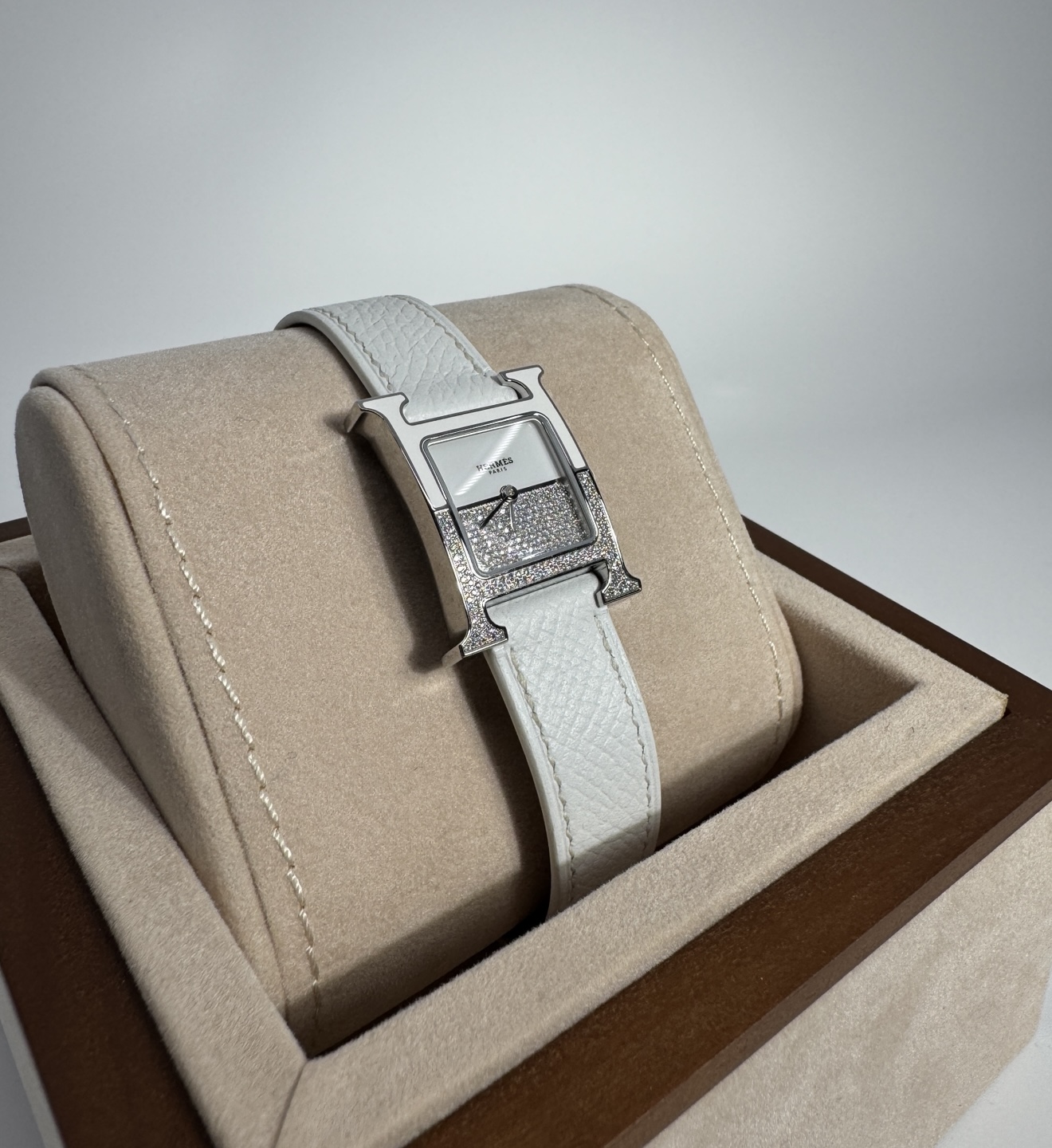 W046502WW00,046502WW00,엘메 에르메스 H아워 H 아워 여성 더블 플레이 double jeu 파베 다이아 다이아몬드 파베 쿼츠,화이트,스테인리스 스틸,가죽,스트랩,다이아몬드 세팅,쿼츠,Switzerland,Stainless steel + ceramic,Pin buckle,No indices,Heure H Double Jeu,H 아워 더블 플레이,Heure H,Hermes,에르메스,다이아몬드 파베