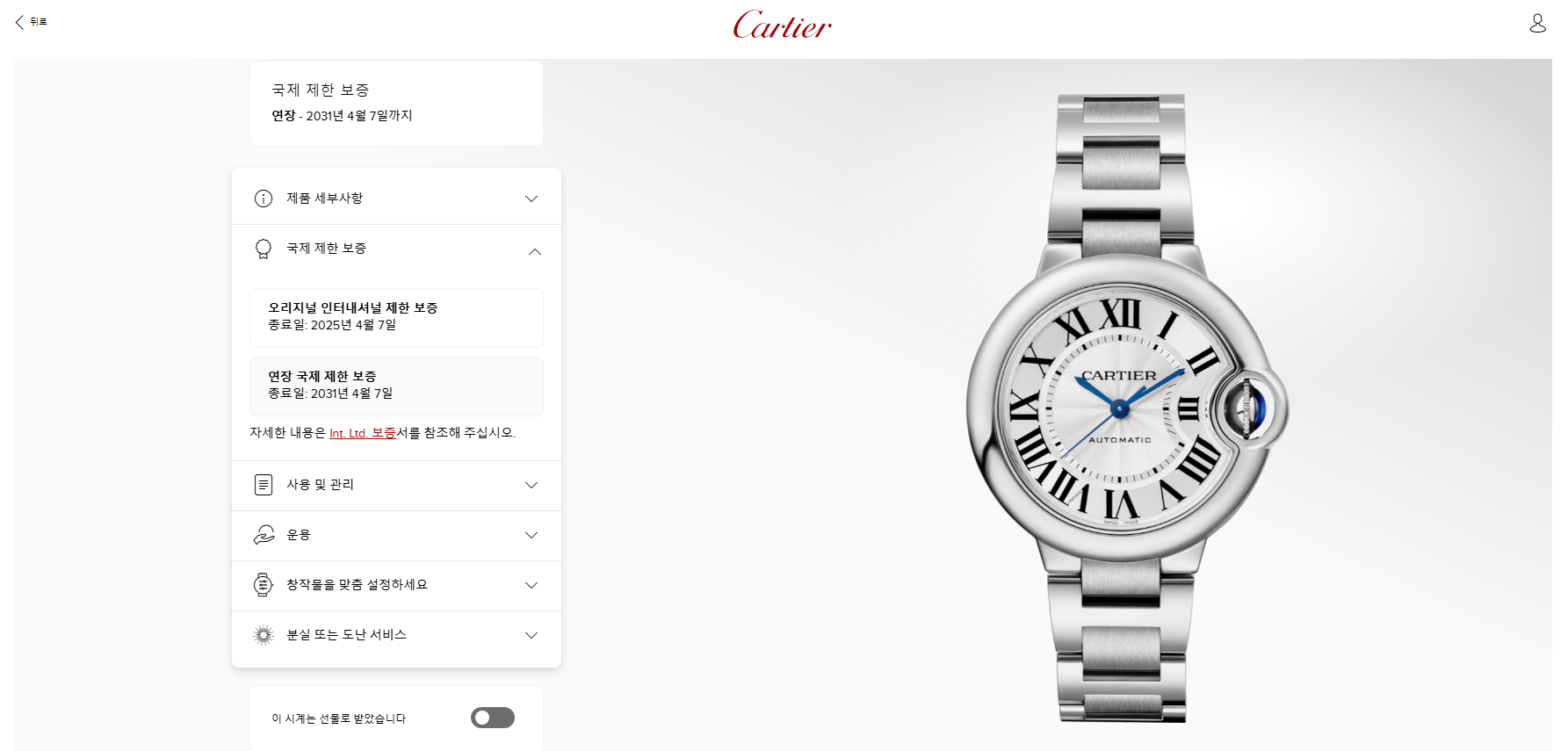 보증기간은 2031년 4월까지 남아있습니다
