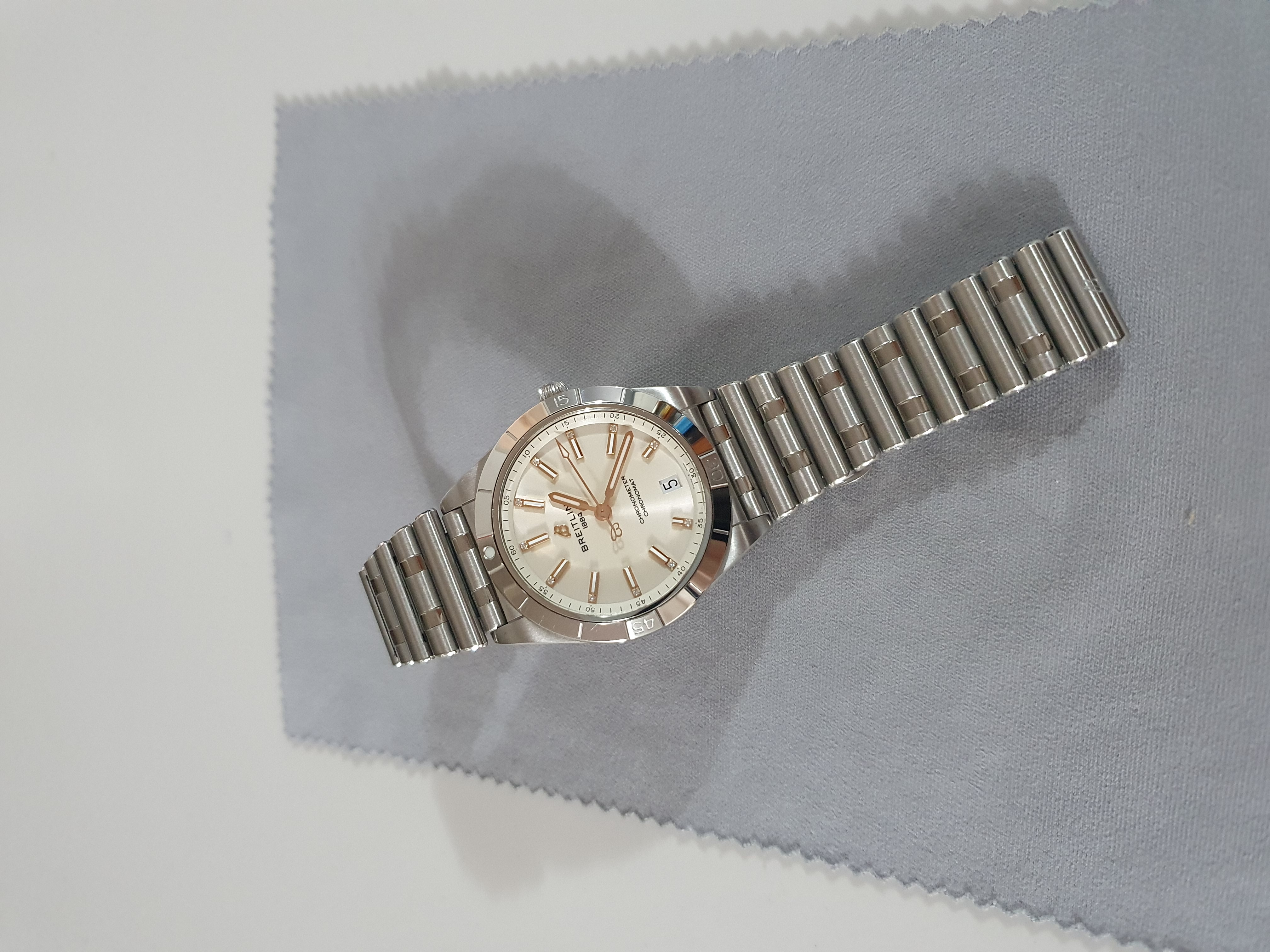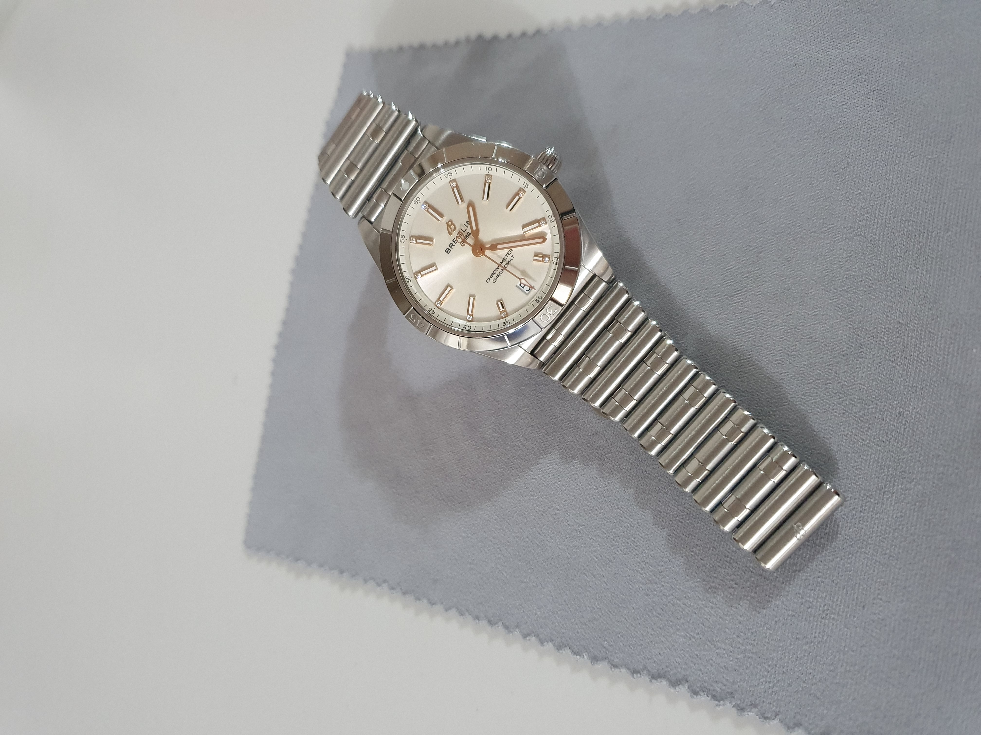 A10380101A2A1,Breitling Chronomat 36 Automatic steel white steel,브라이틀링 크로노맷 오토매틱 36 스틸 화이트 스틸,화이트,스테인리스 스틸,브레이슬릿,36mm,단방향 회전 베젤,셀프와인딩,브라이틀링 10,Switzerland,Stainless steel,Folding clasp,Date / diamond-set baton indices,Chronomat Automatic 36,크로노맷 오토매틱 36,Chronomat,Breitling,브라이틀링,.화이트,보석 세팅,폴딩 클라스프,데이트,18 mm,원형,파일럿,남녀공용