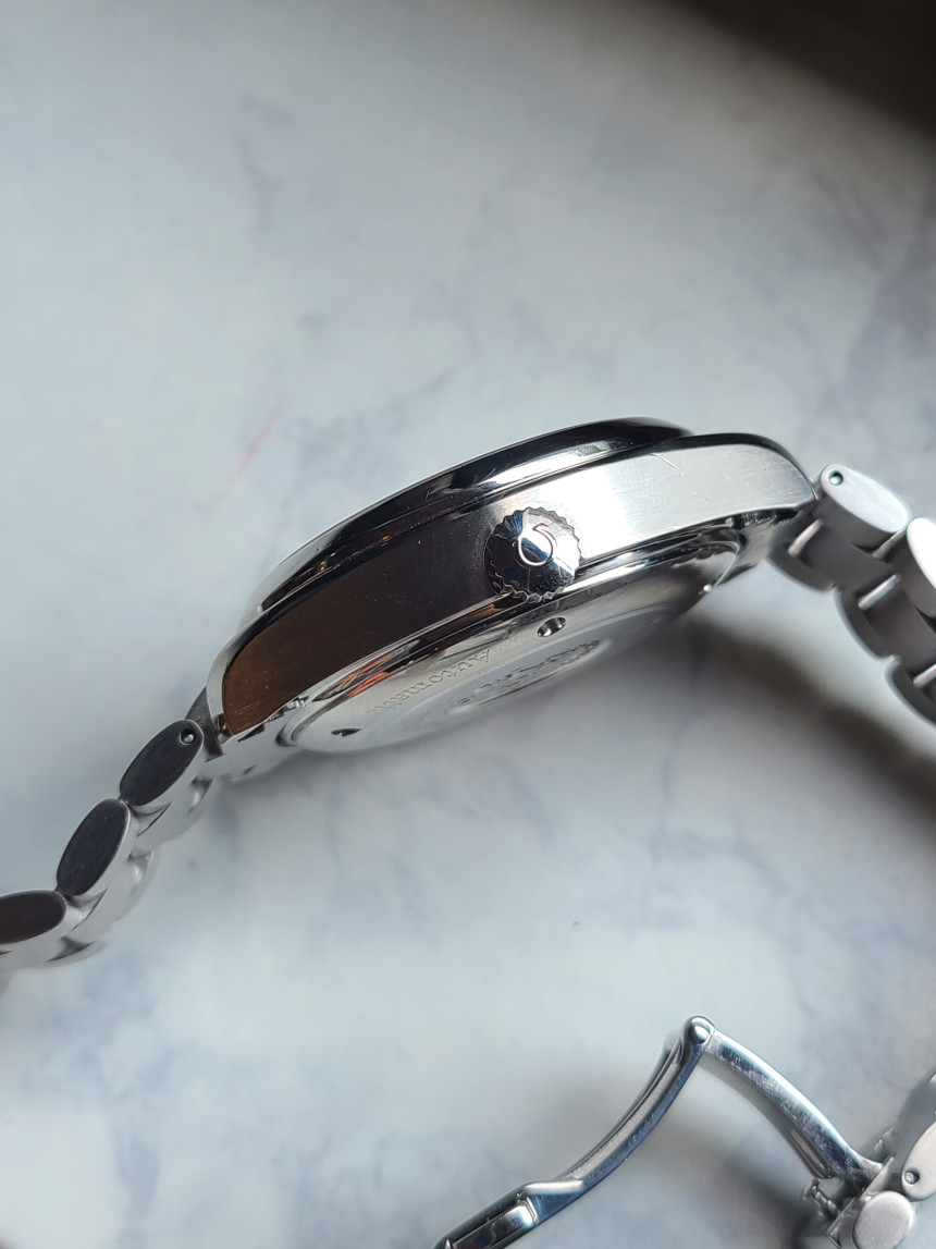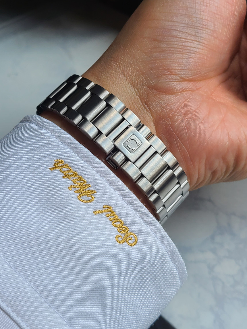 브레이슬릿 역시 스테인리스 스틸로, 일체감 있는 착용감을 제공하고 있습니다. 다이얼 하단에는 “Chronometer” 표기가 확인되며, 이는 COSC 크로노미터 인증을 받은 고정밀 무브먼트가 탑재되었음을 알 수 있습니다.