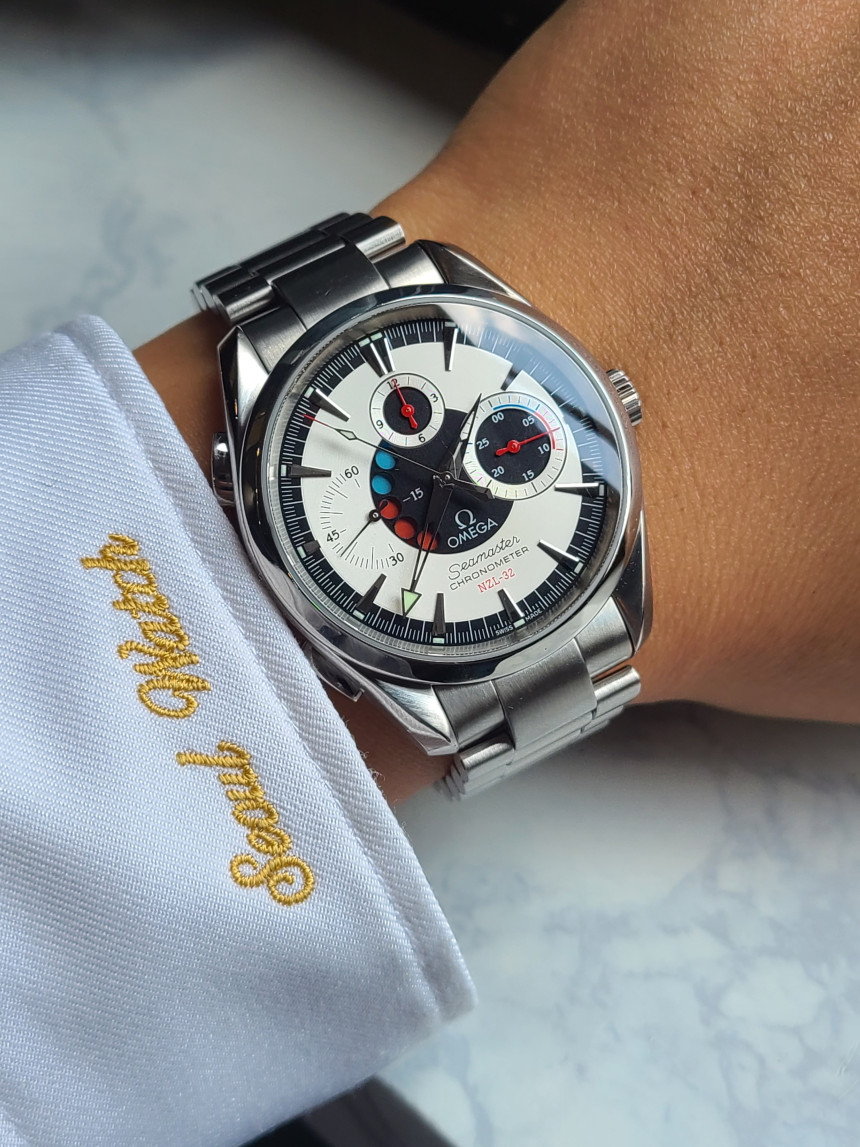 동일한 아쿠아테라 NZL-32 요트 크로노그래프 기능이 탑재된 시계가 약 800~1000만원 전후에 가격 형성을 이루며 판매하고 있습니다.