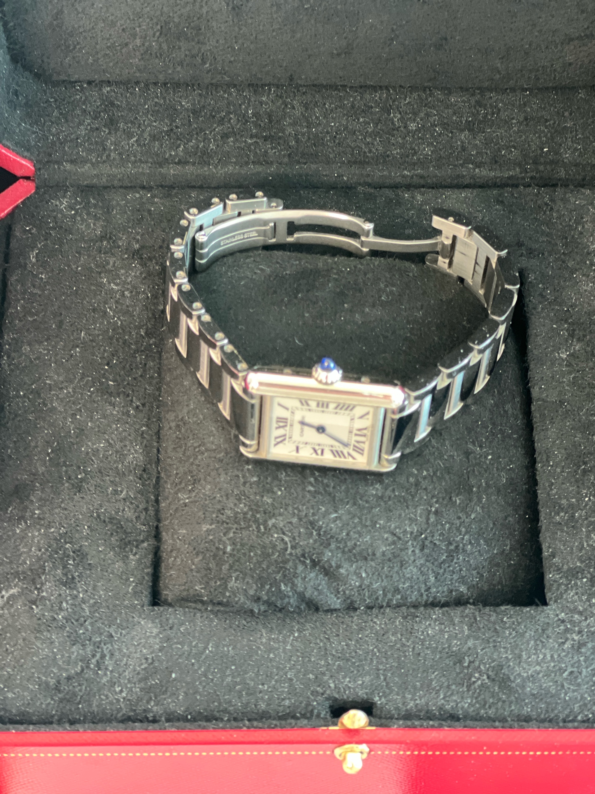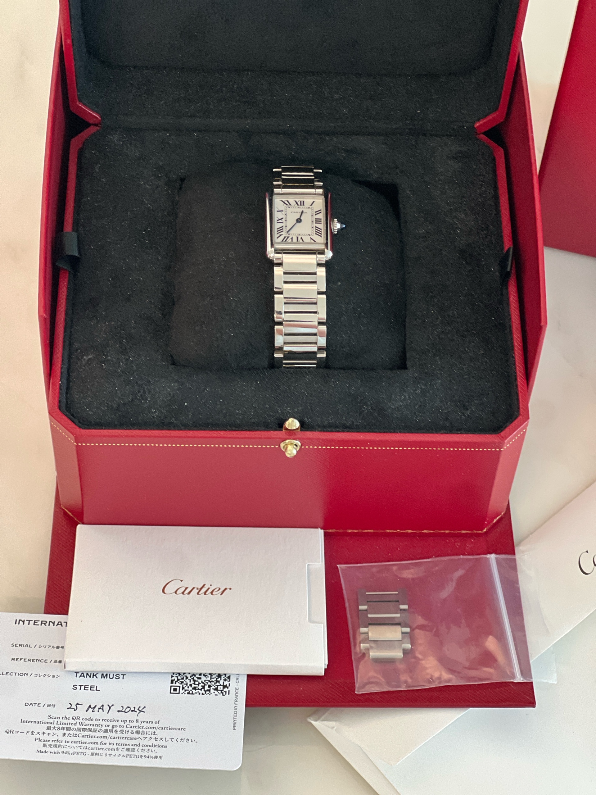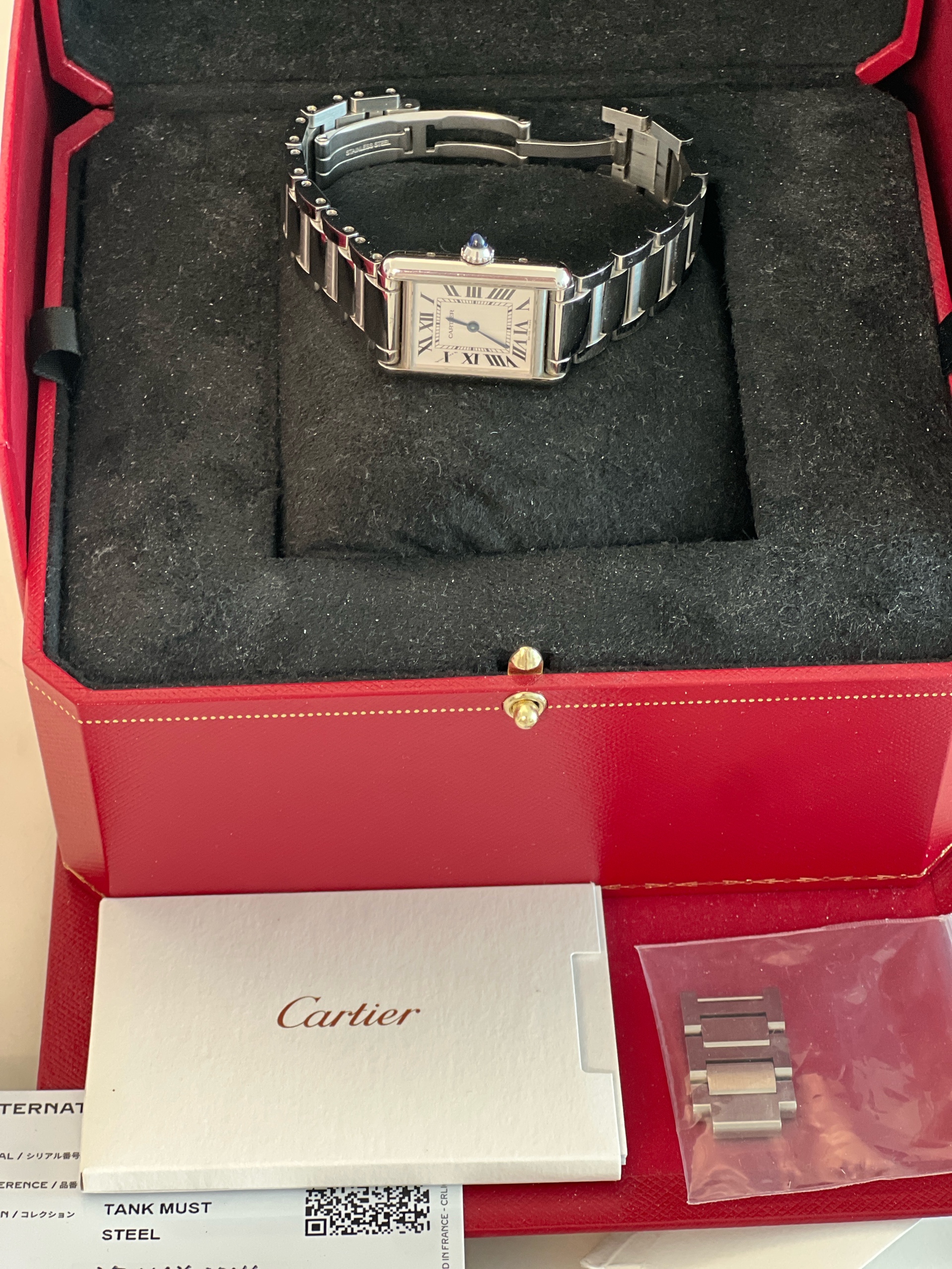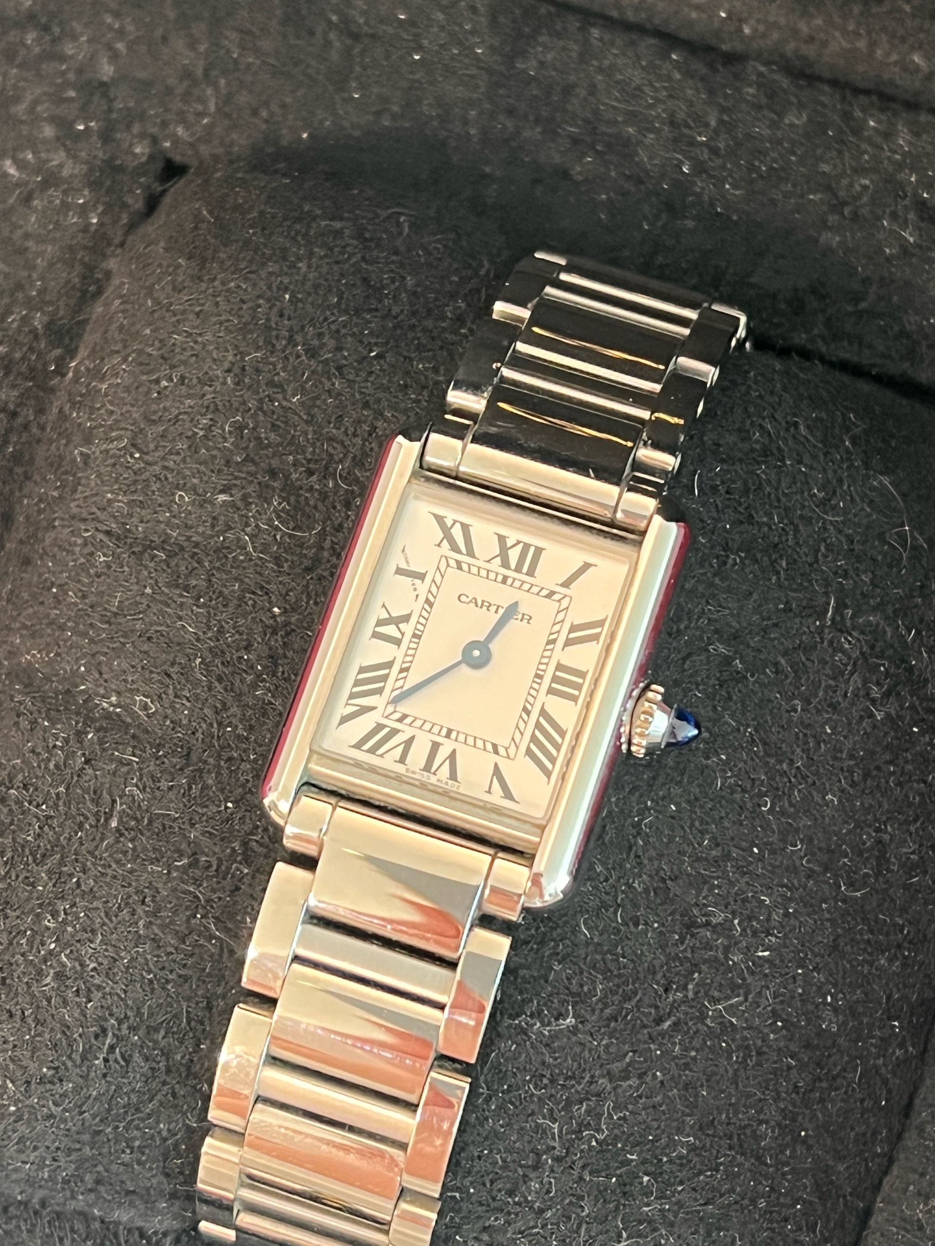 WSTA0107,까르띠에 카르티에 탱크 머스트 SM 스몰 스틸 브레이슬릿 쿼츠 WSTA0107,Cartier Tank Must SM Small steel bracelet quartz WSTA0107,스테인리스 스틸,Stainless steel,Butterfly clasp,Roman numeral indices,Tank Must SM,탱크 머스트 SM,Tank,Cartier,까르띠에,로마자 로마 숫자 로만 인덱스,roman numerals,.실버,로만,폴딩 클라스프,직사각형,클래식,여성용