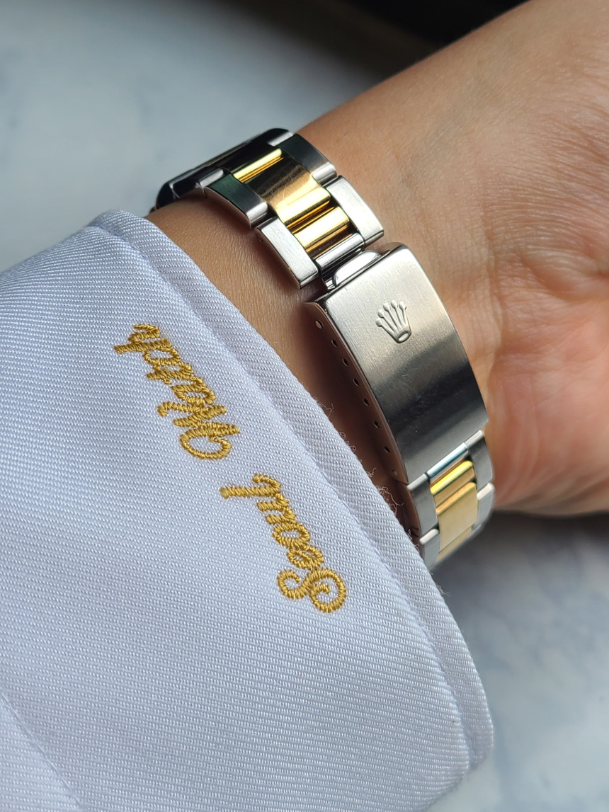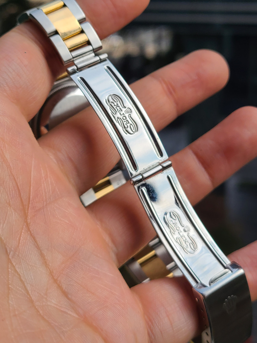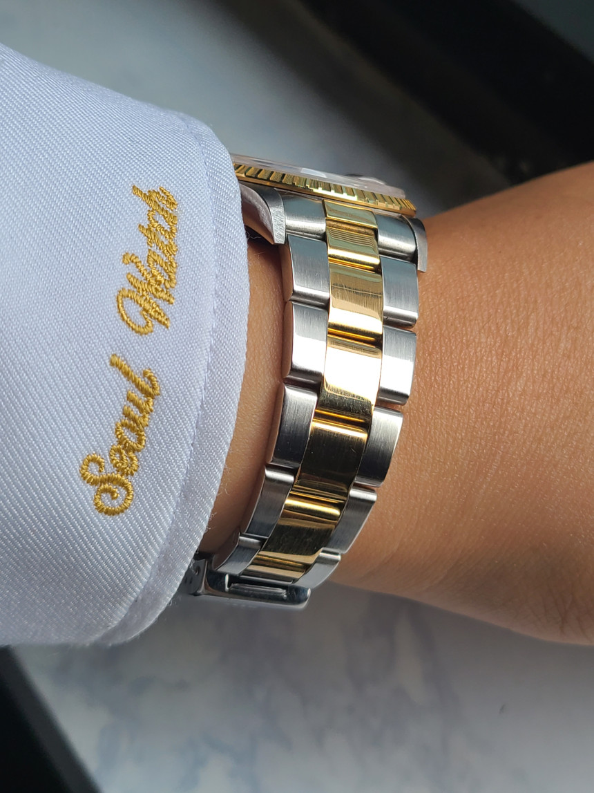 흔한 데이저스트와는 다르게 서브마리너와 데이토나에 동일하게 적용되었던 오이스터 삼선 브레이슬릿이 적용되어 있으며 18K 옐로우골드가 들어간 콤비 모델 입니다.